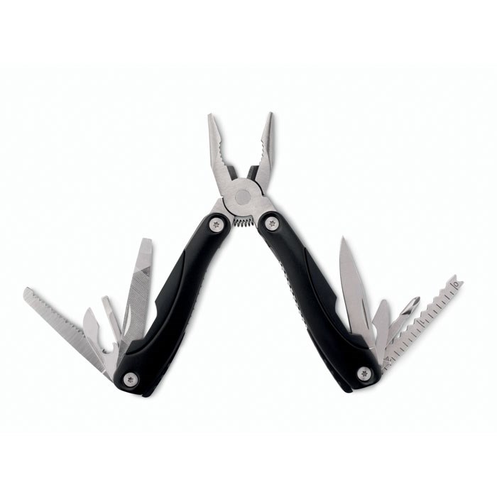 Multifunctioneel metalen tool in zakje van 600D polyester, 9-delig.
