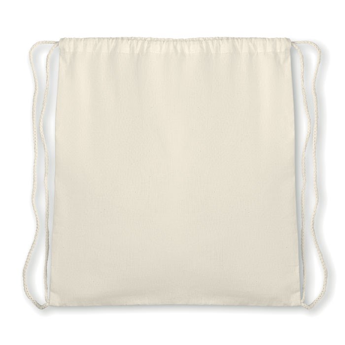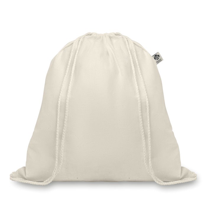 Organisch katoenen rugzakje met koord in 105 gr/m². GOTS-gecertificeerd voor een ecologisch en sociaal verantwoord verkrijgen van grondstoffen, productieproces tot etikettering.