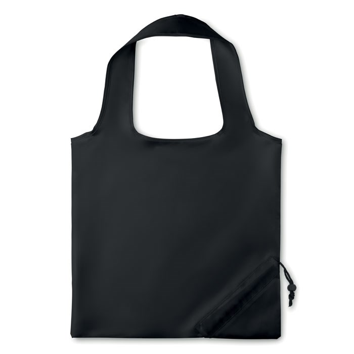 Opvouwbare 210D polyester boodschappentas met trekkoord sluiting op zak. Sublimatie bedrukking alleen geschikt op het witte item.