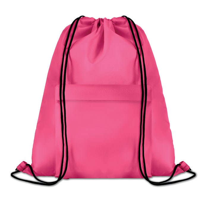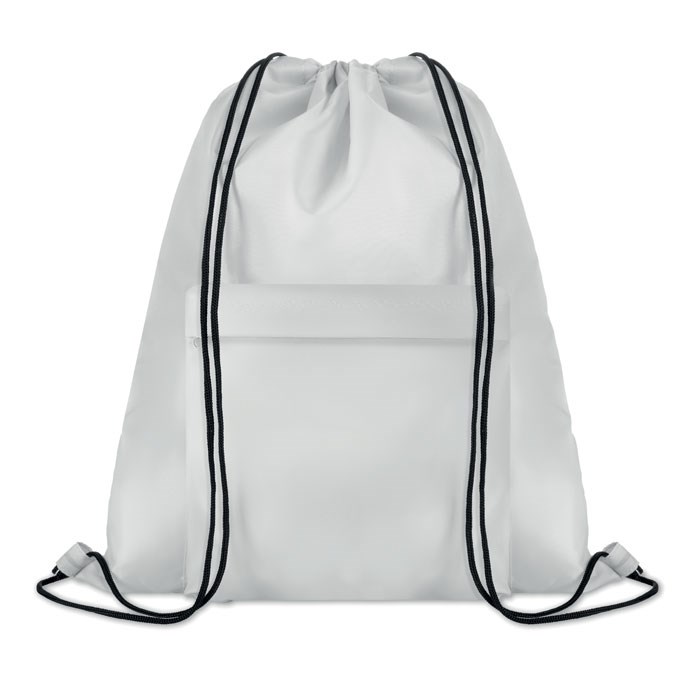 Rugzak met koord van 210D polyester, inclusief voorvak met ritssluiting. Sublimatie bedrukking alleen geschikt op het witte item.