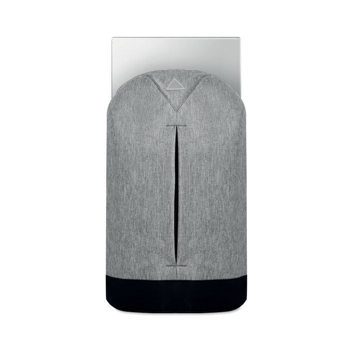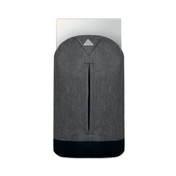 Rugzak in 600D duo-tone polyester met verborgen rits op de rug. Inclusief voorvak met rits, gewatteerd vak voor 13 Inch laptop en gewatteerde schouderbanden.