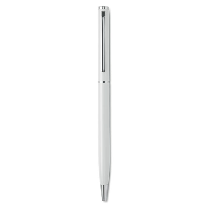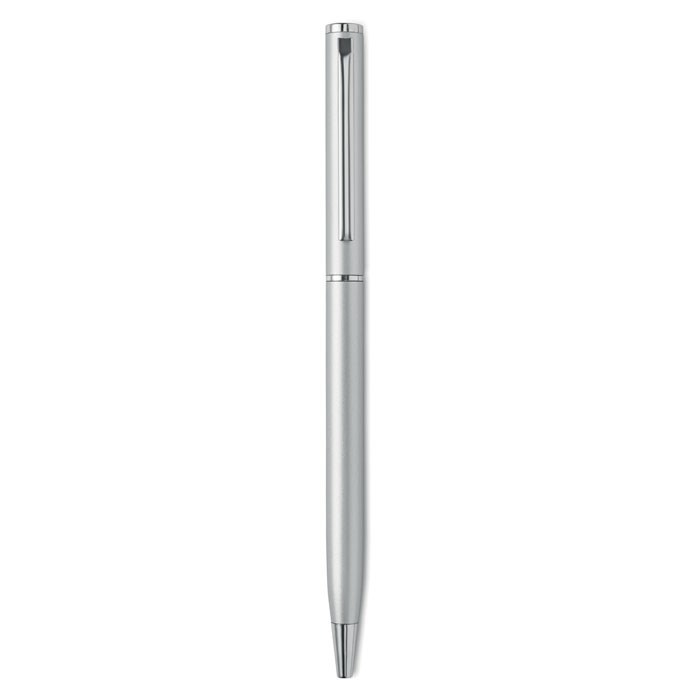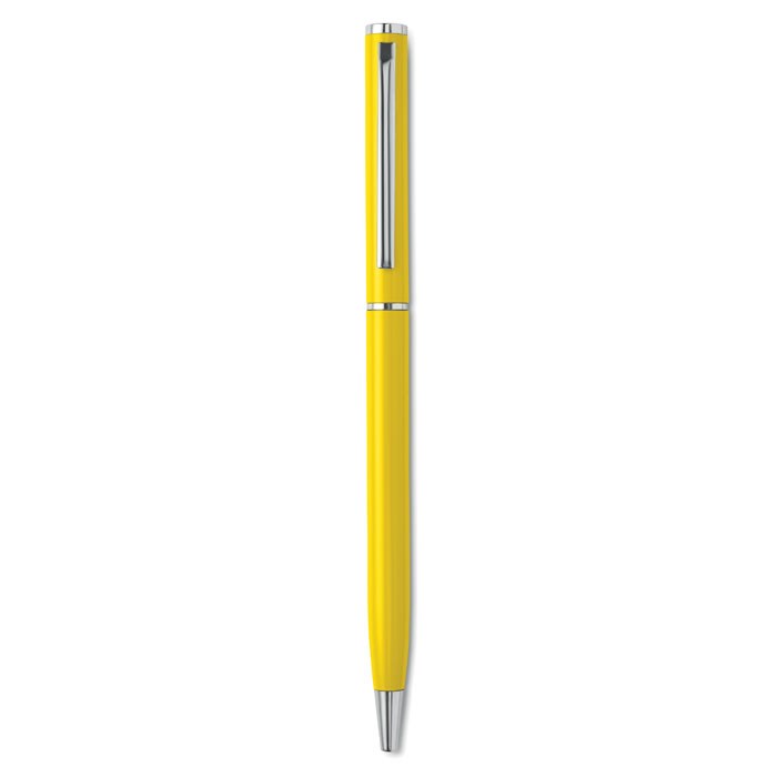 Gekleurd aluminium balpen met twistmechaniek en chroomkleurige details. Blauwe inkt.
