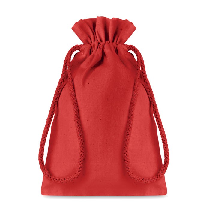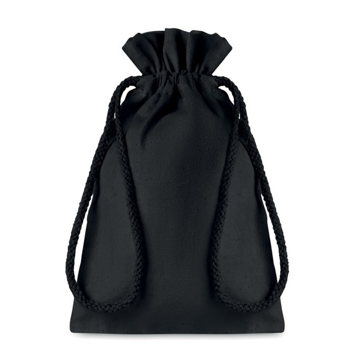 Klein geschenkzakje van katoen met trekkoordsluiting. Afmeting ca. 14 x 22 cm, 105 gr/m².