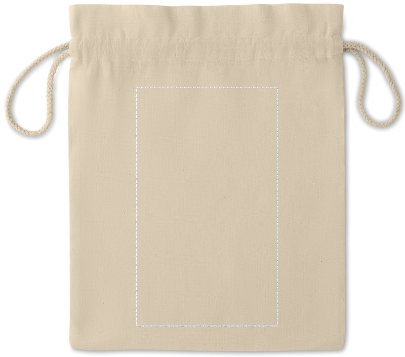 Medium formaat katoenen geschenkzakje met trekkoordsluiting. Afmeting: 25 x 32 cm, 105 gr/m².