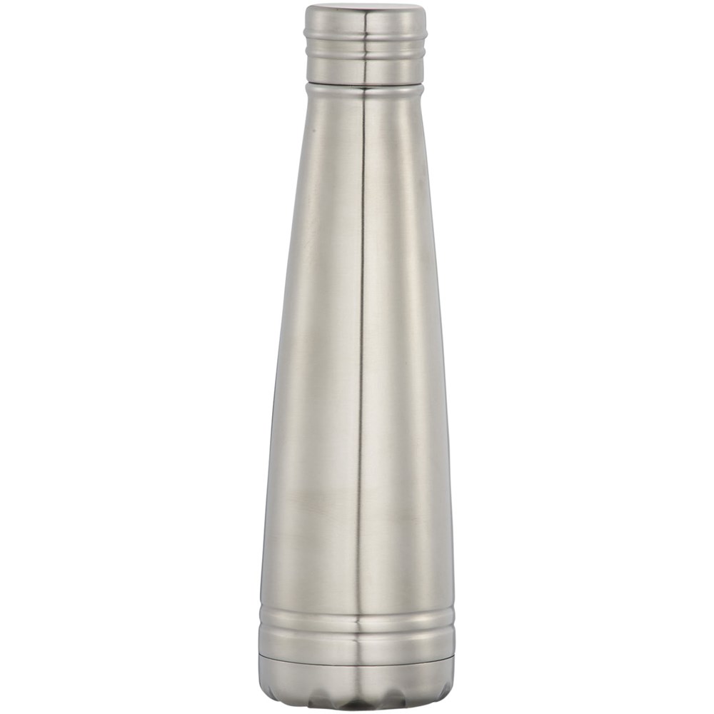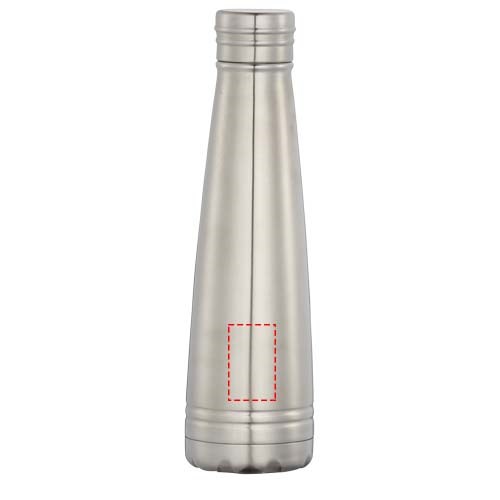 De Duke drinkfles is dubbelwandig. 18/8 roestvrijstaal met vacuüm isolatie. De binnenwand is van koper voor ultieme geleiding om drankjes tot maximaal 12 uur warm te houden en koud tot maximaal 48 uur. Voorkomt condensatie aan de buitenkant van de fles. Inhoud 500 ml. Geleverd in een Avenue geschenkverpakking.