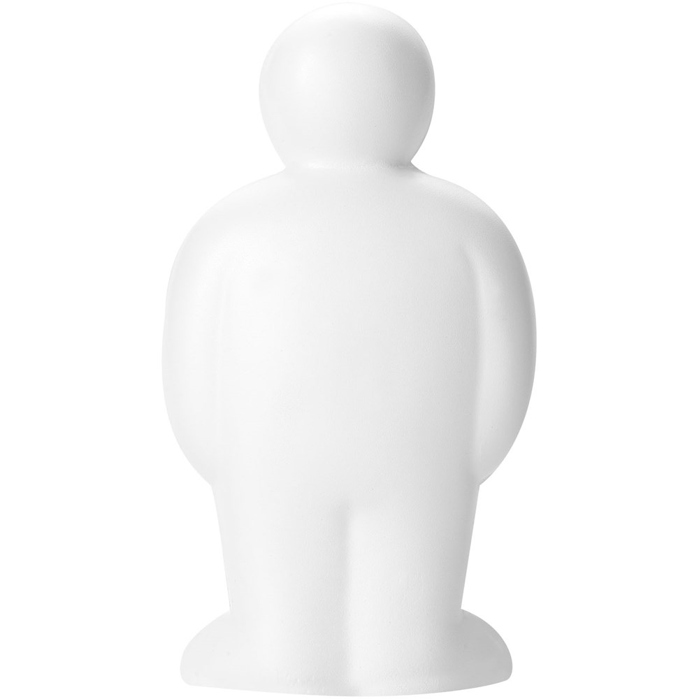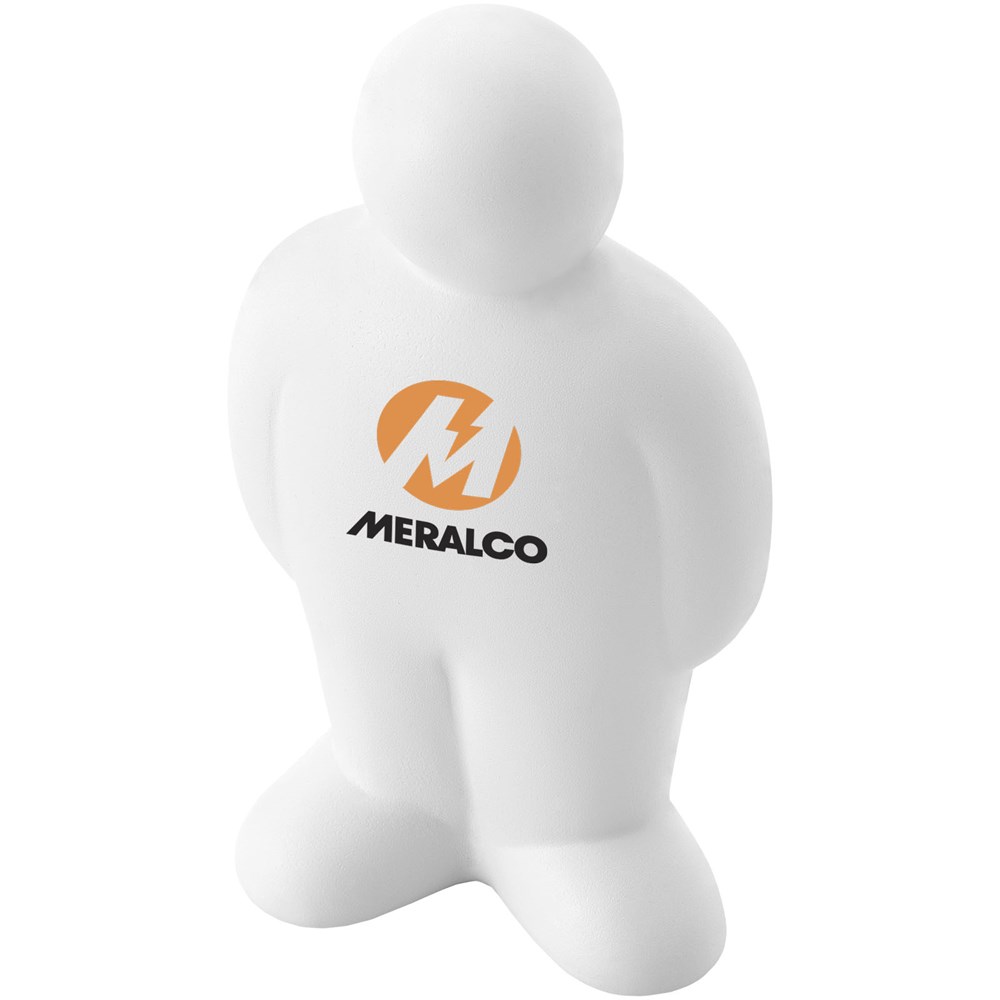 Anti stress mannetje. Bij anti-stress artikelen kunnen kleine variaties voorkomen in dichtheid, kleur, afmetingen en gewicht die effect kunnen hebben op precisie en uniformiteit van de bedrukking, die ook kan breken. Geen half-tinten.