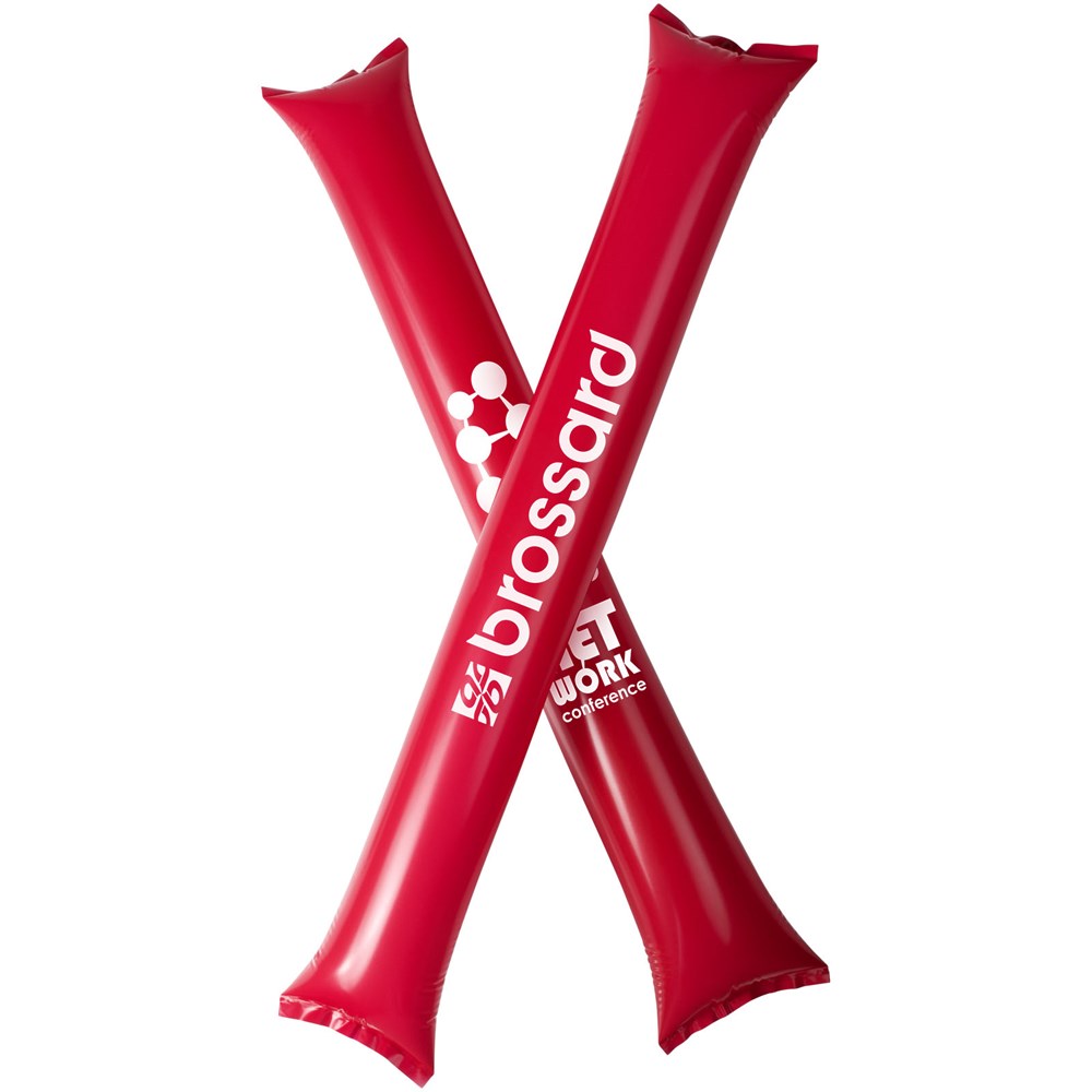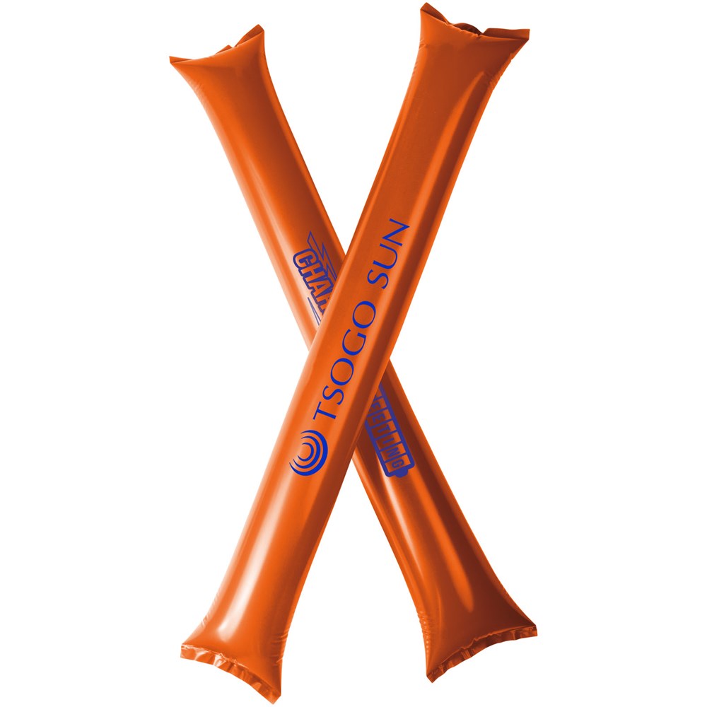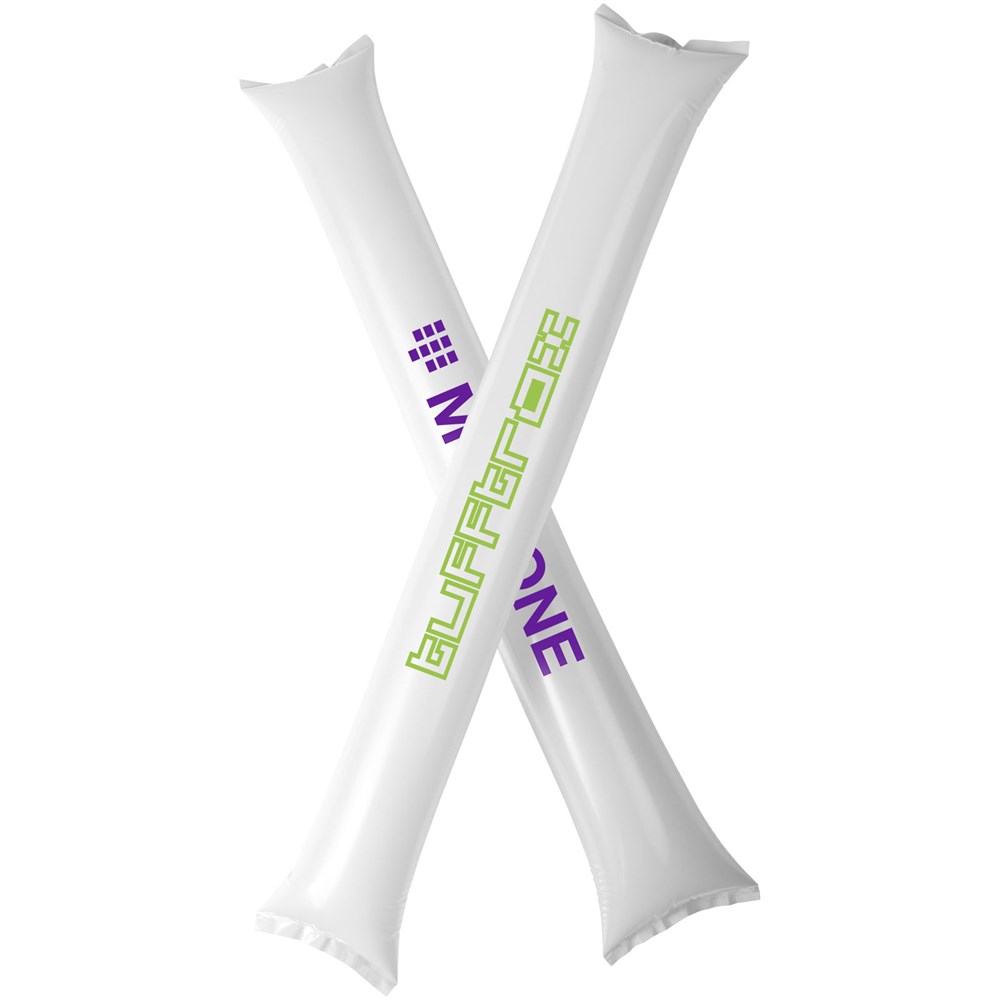 2 delige cheeringset met opblaasbare cheering sticks. Ideaal, herbruikbaar product om je team te steunen. Elke stick heeft een formaat van 60 x 10 cm met een groot decoratiegebied. Opvallend item voor het creëren van een goede sfeer.