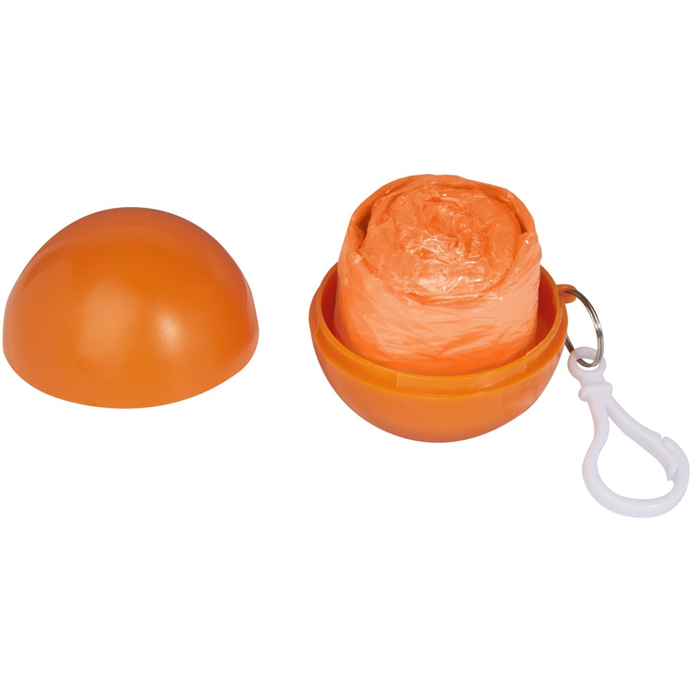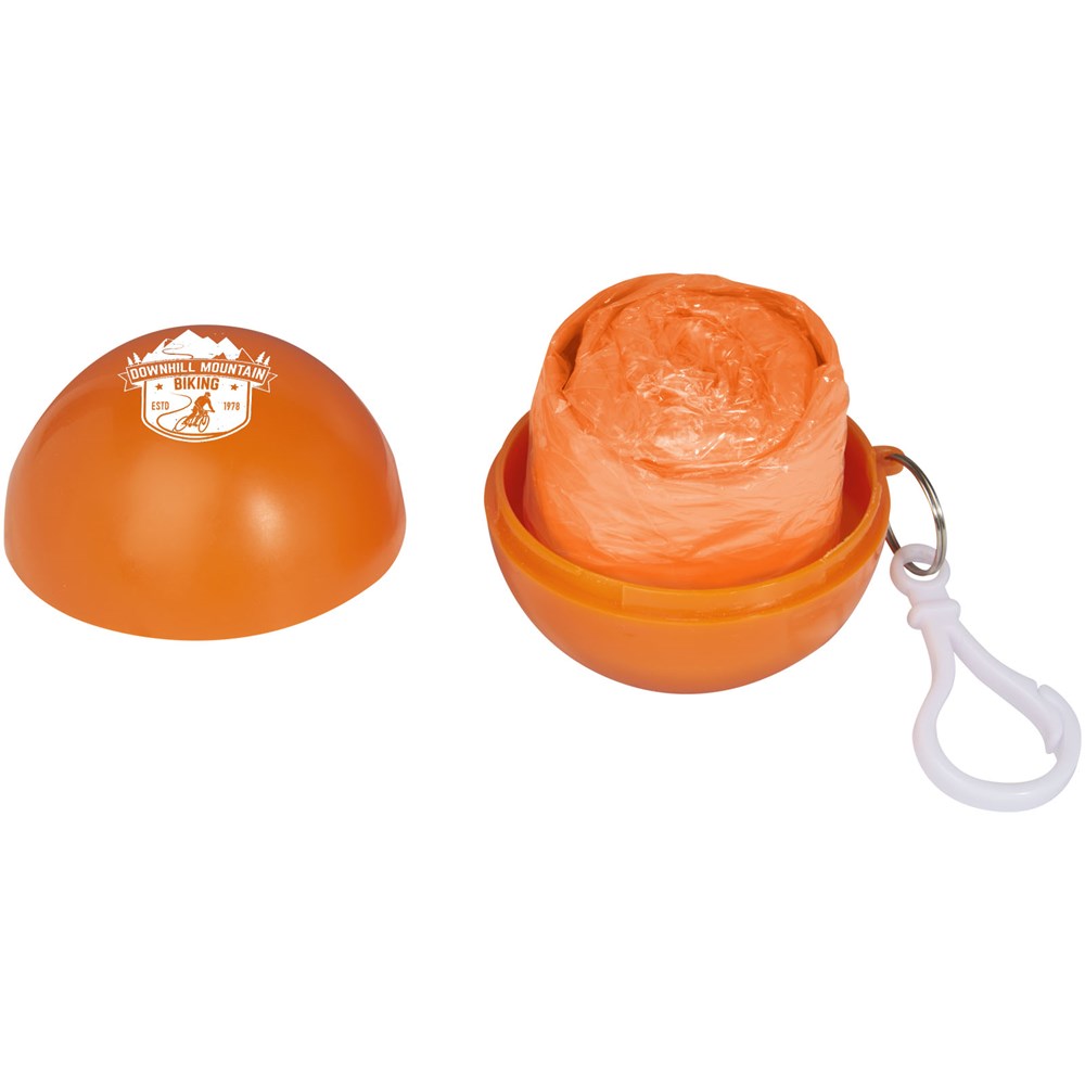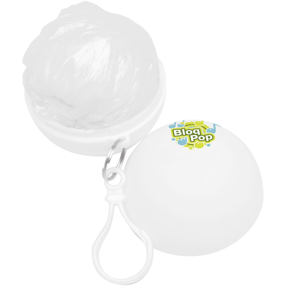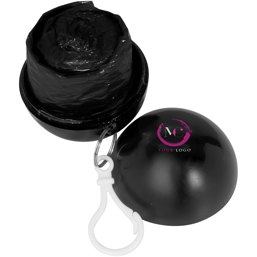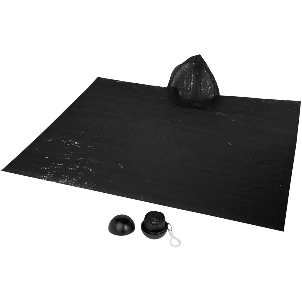 Poncho met capuchon voor de onverwachte stortbui: One-size-fits-all. Verpakt in een handig compact tasje dat in elke zak of tas past en zelfs aan een sleutelring te haken is. Bedrukking is alleen mogelijk op het tasje.