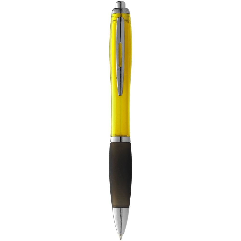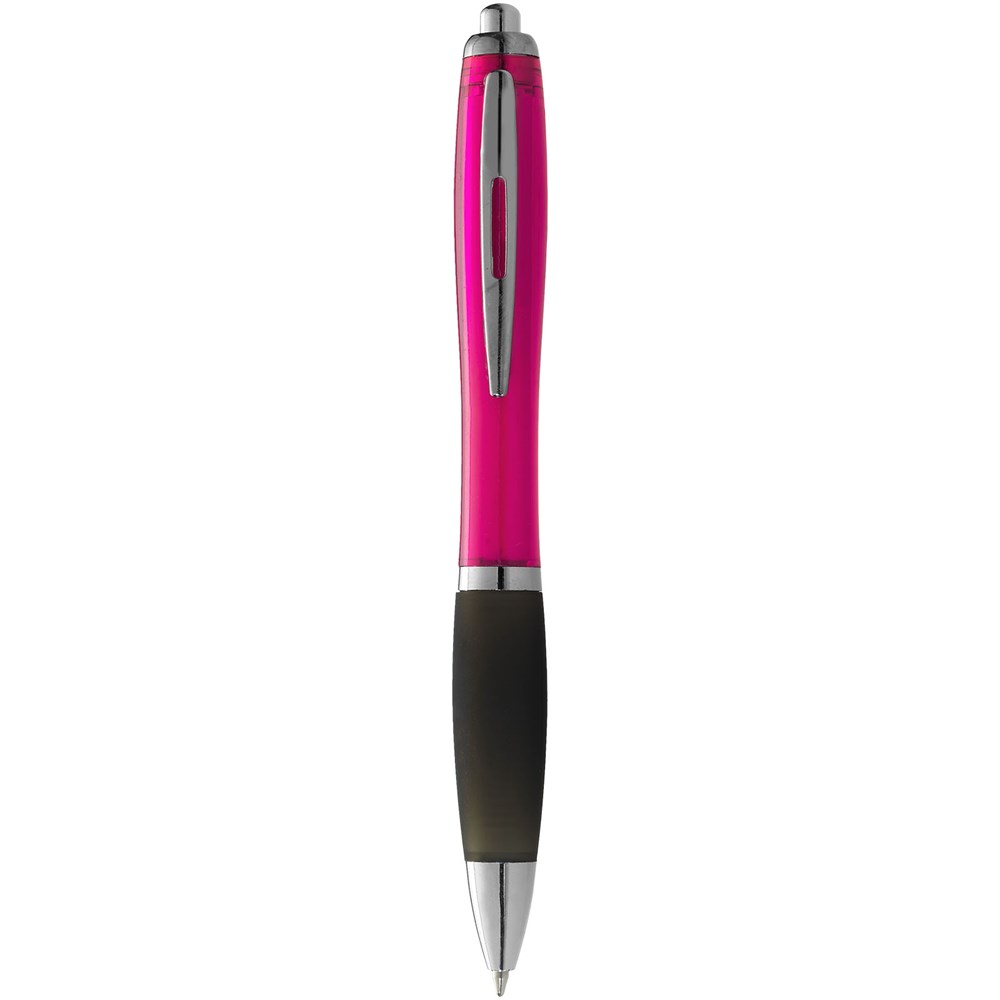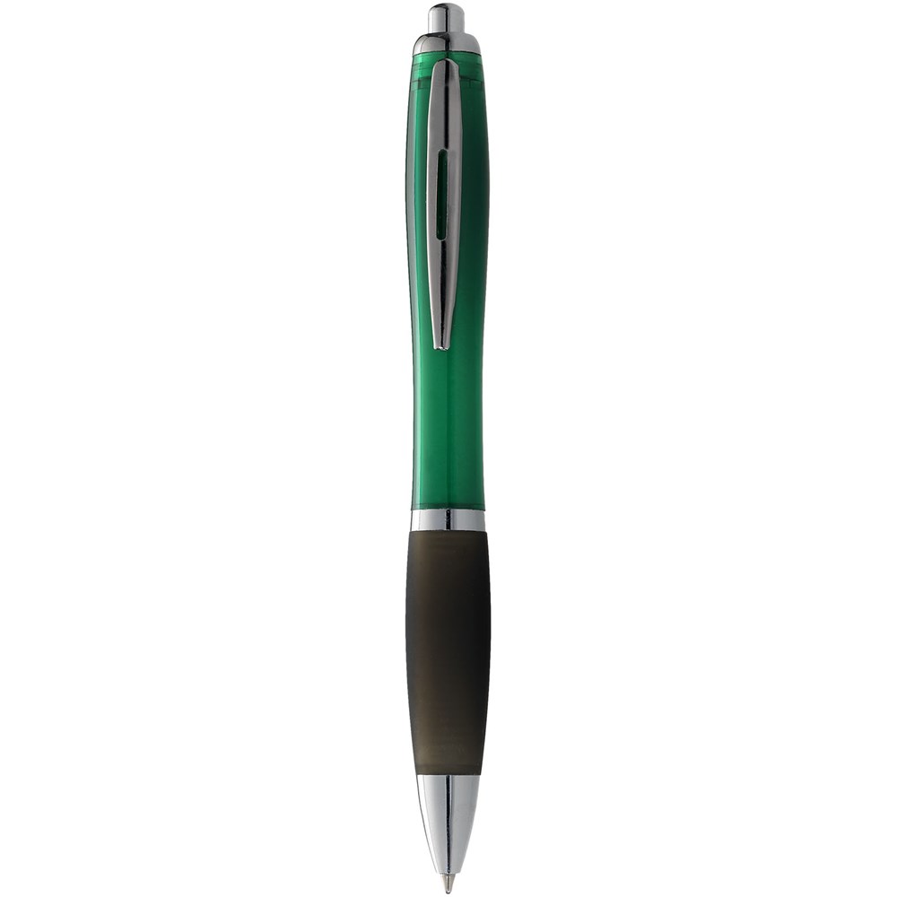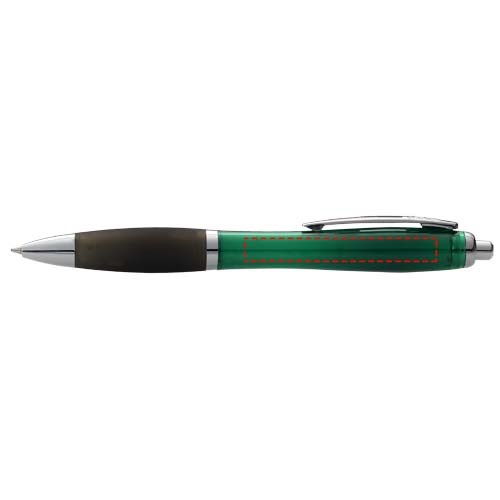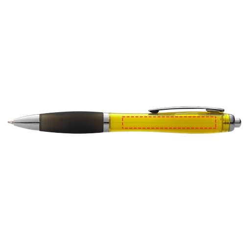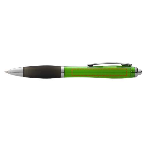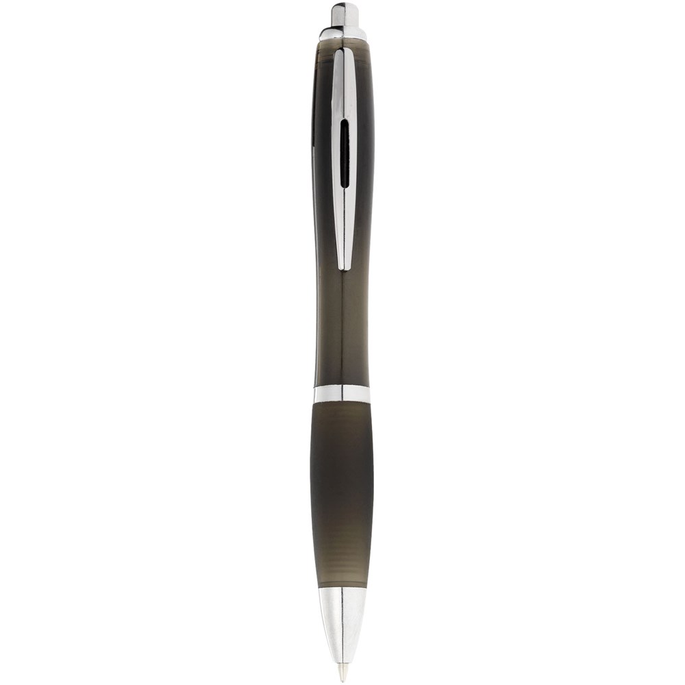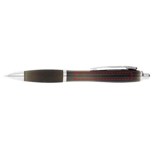 Balpen met klikmechanisme en soft touch greep. Zwart transparant. Zwartschrijvend.