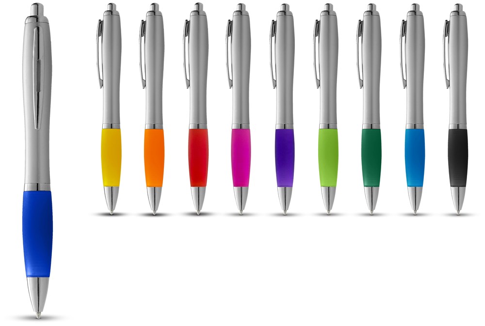 Balpen met klikmechanisme en soft touch greep. Zwartschrijvend.