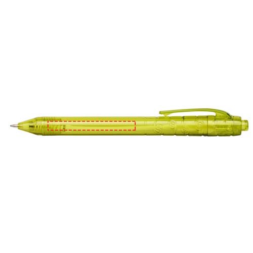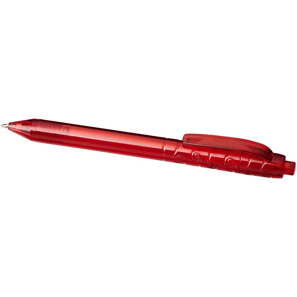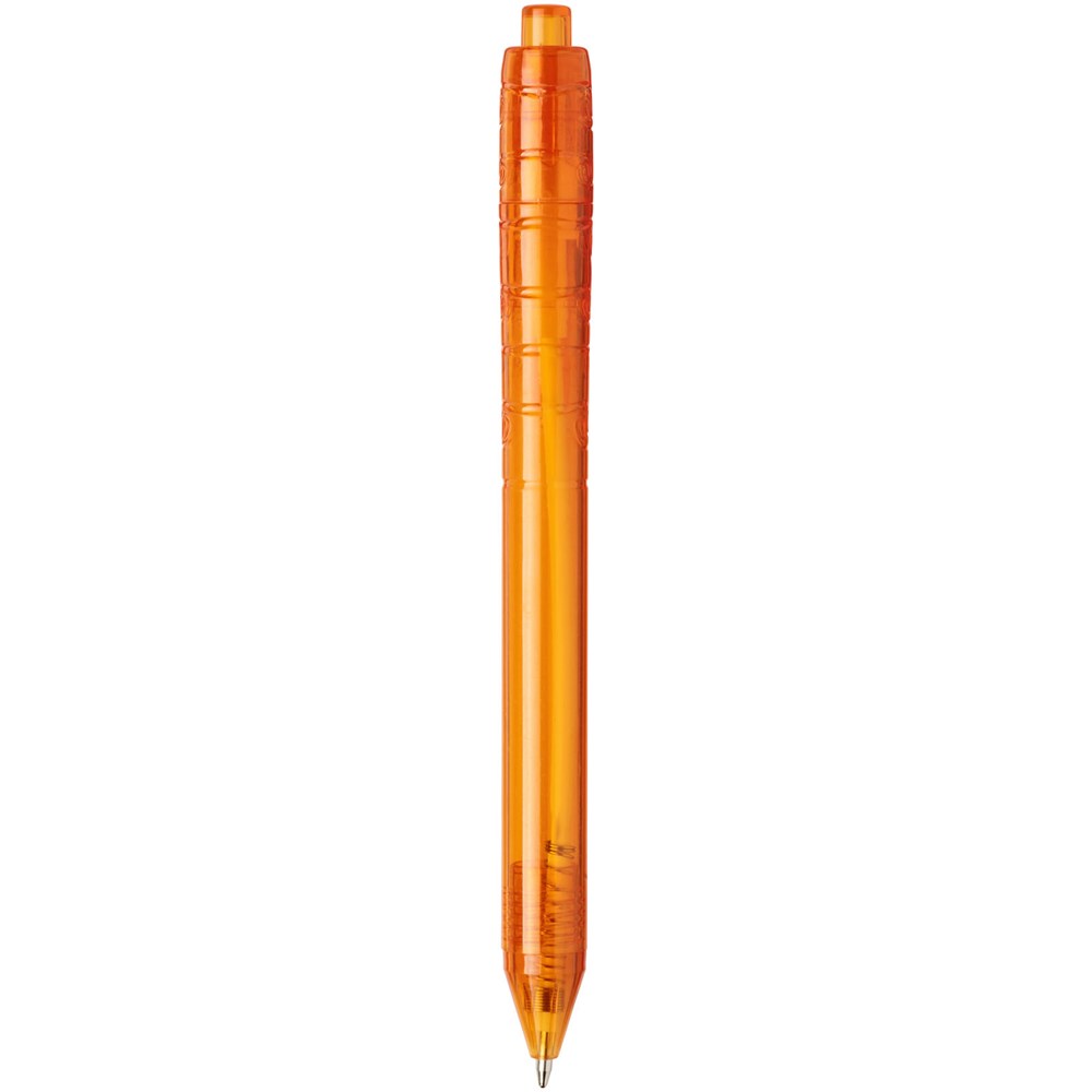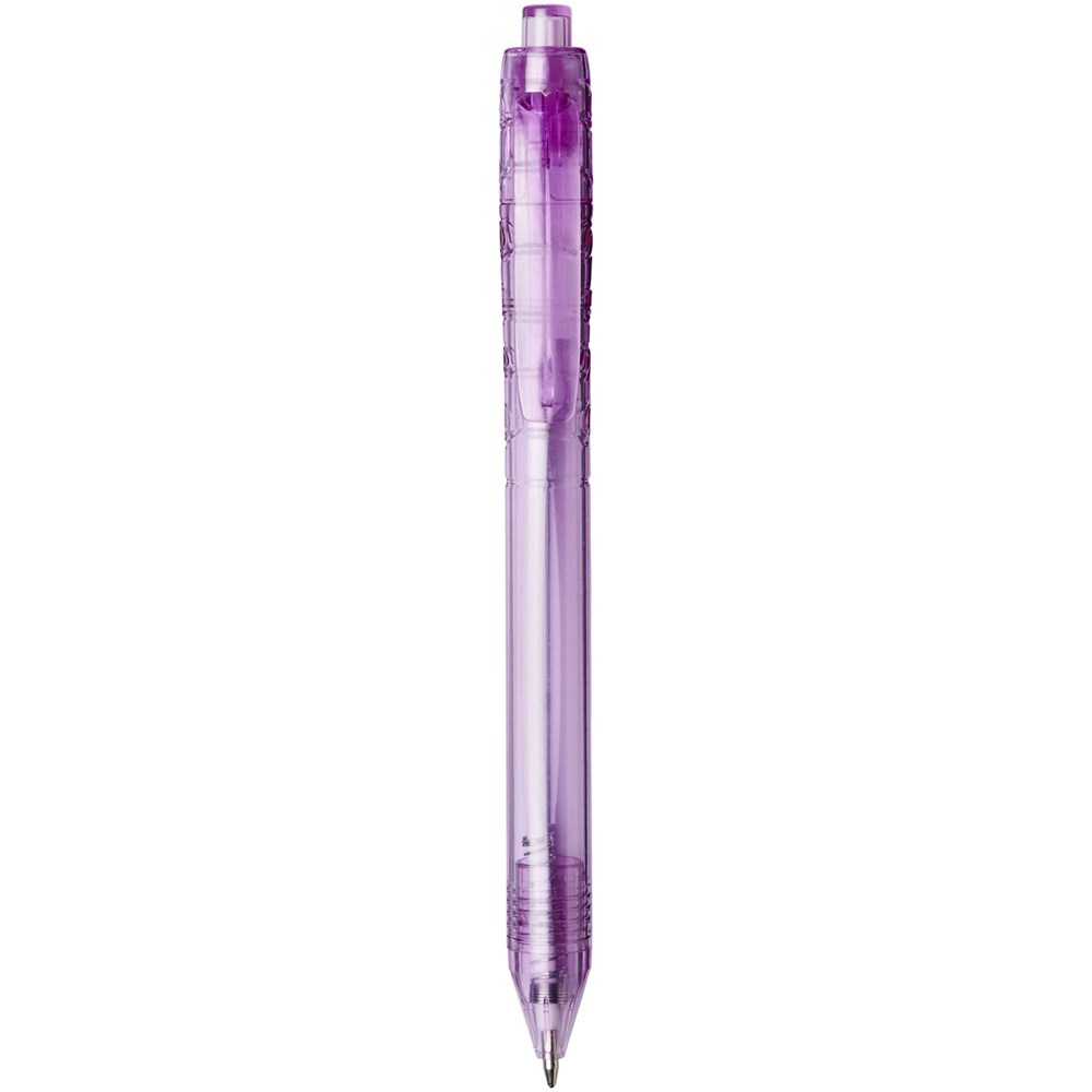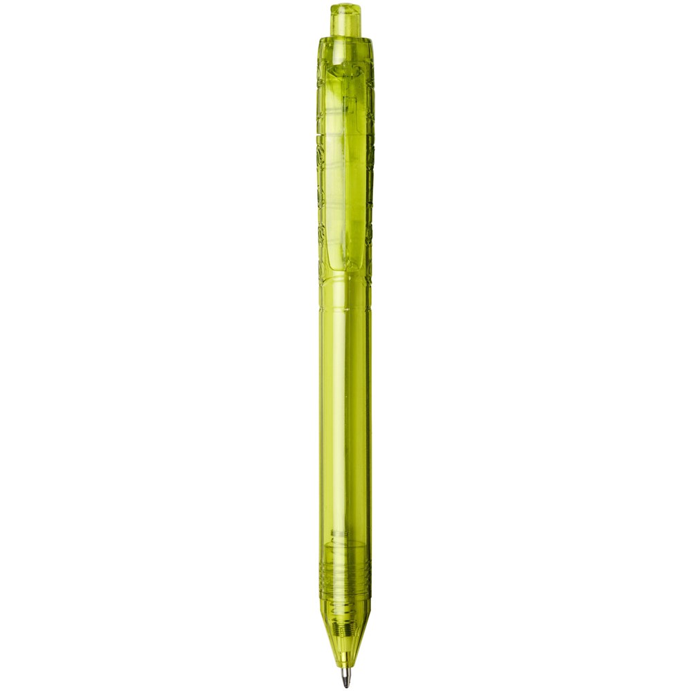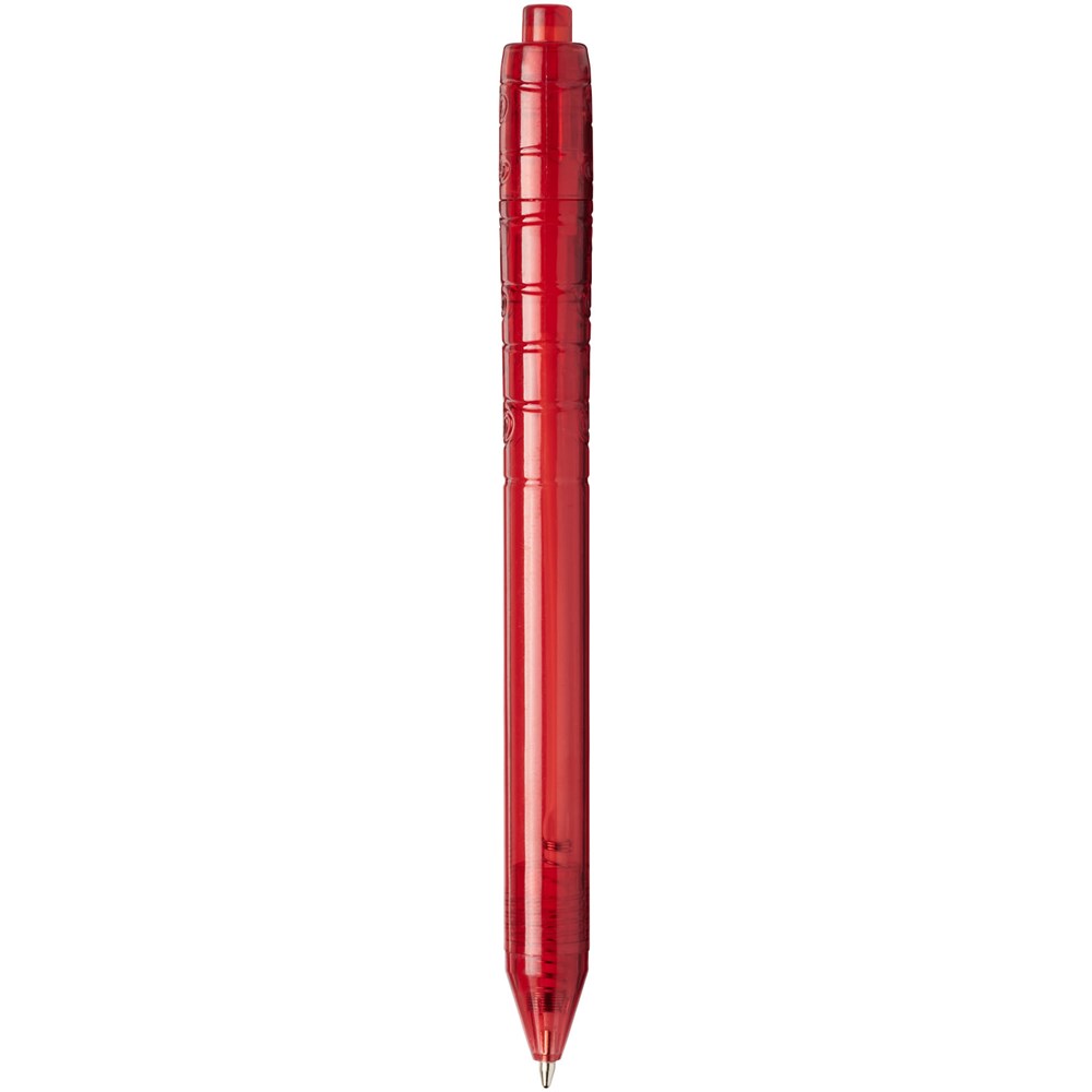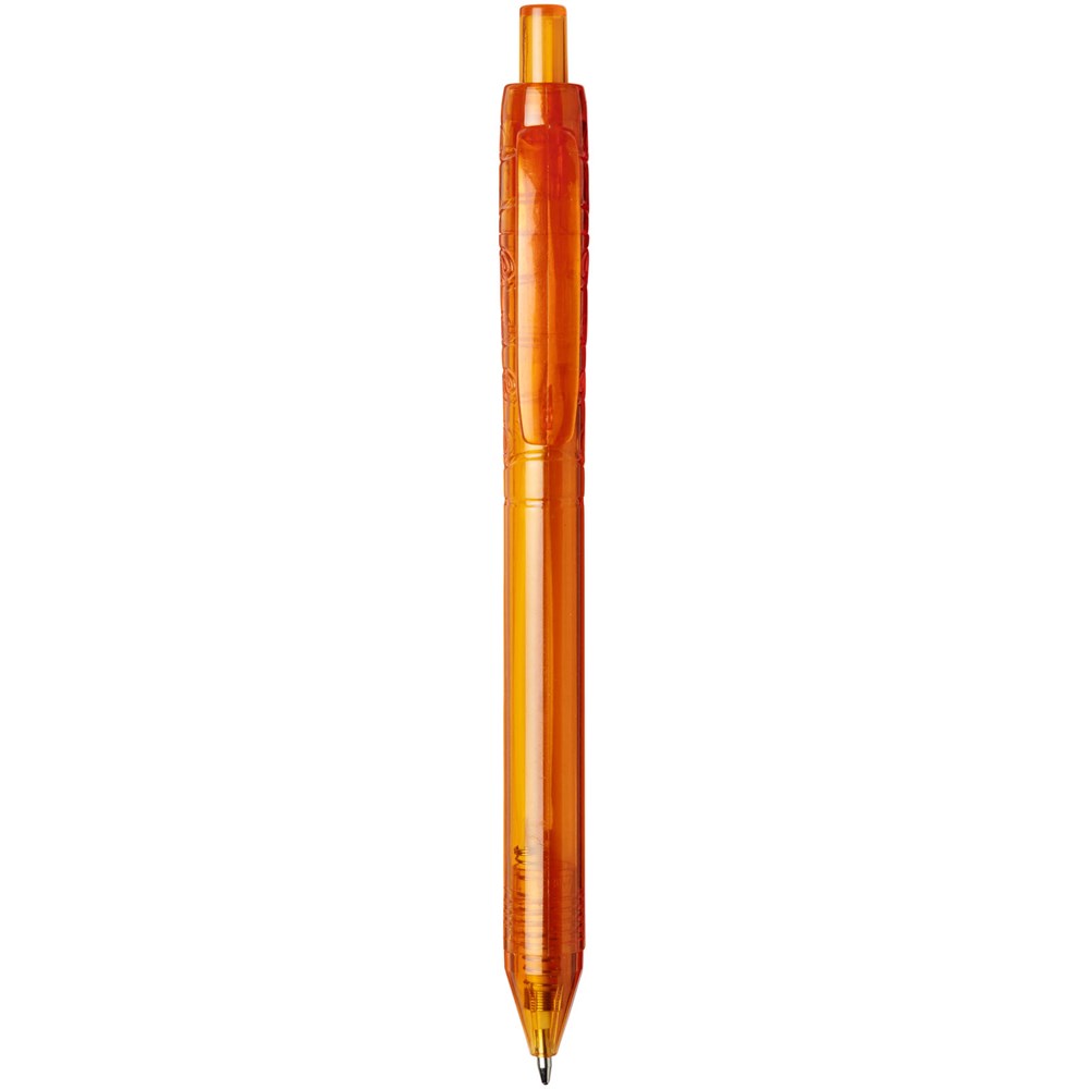 Balpen met klikmechanisme met een transparante huls. Het huls is gemaakt van gerecyclede waterflessen, wat bijdraagt aan het verminderen van de hoeveelheid plastic afval.