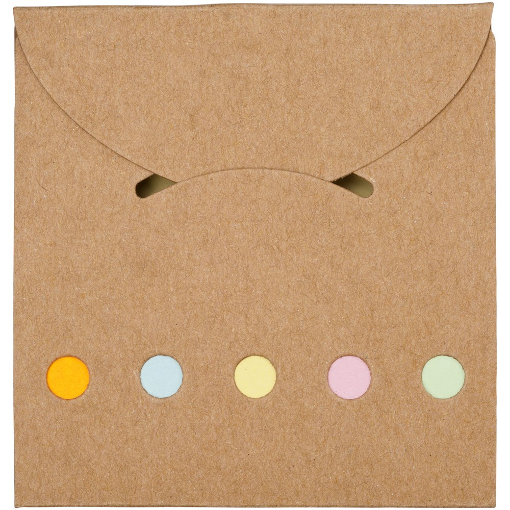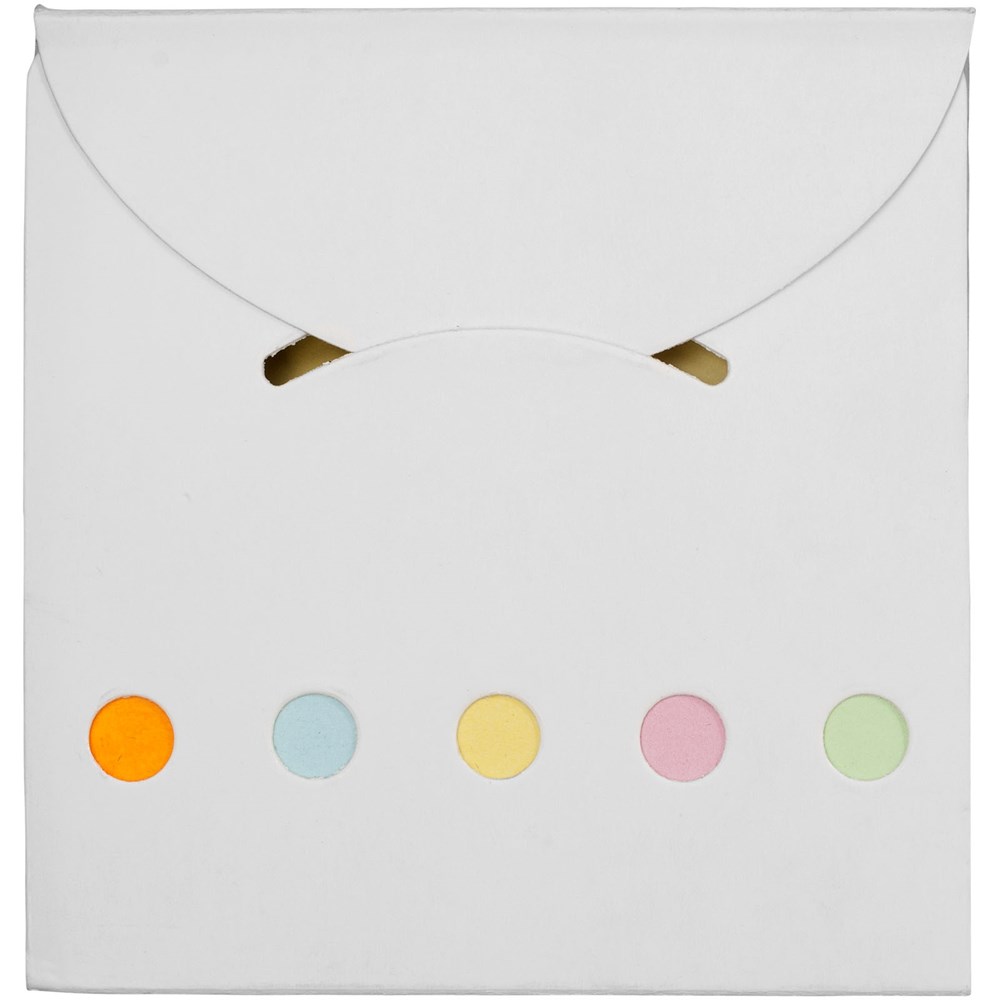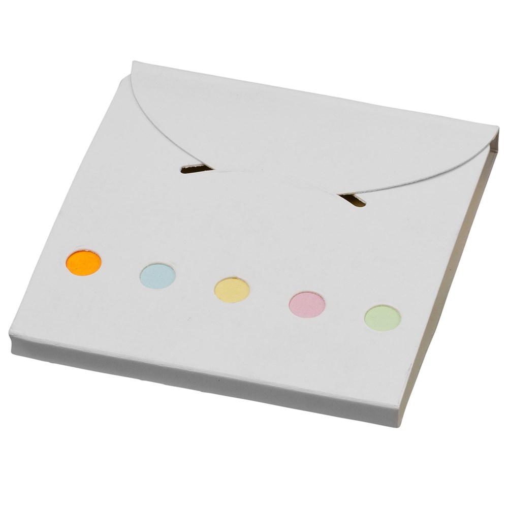Set van grote sticky notes in geel (7,5 x 7,5 cm) en kleine sticky notes in meerdere kleuren (5 x 1,5 cm).