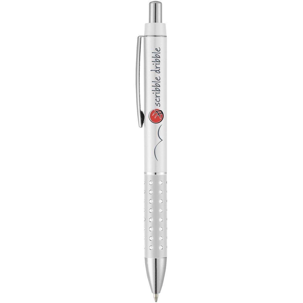 Balpen met klikmechanisme en aluminium greep met glansdetails. Zwartschrijvend.