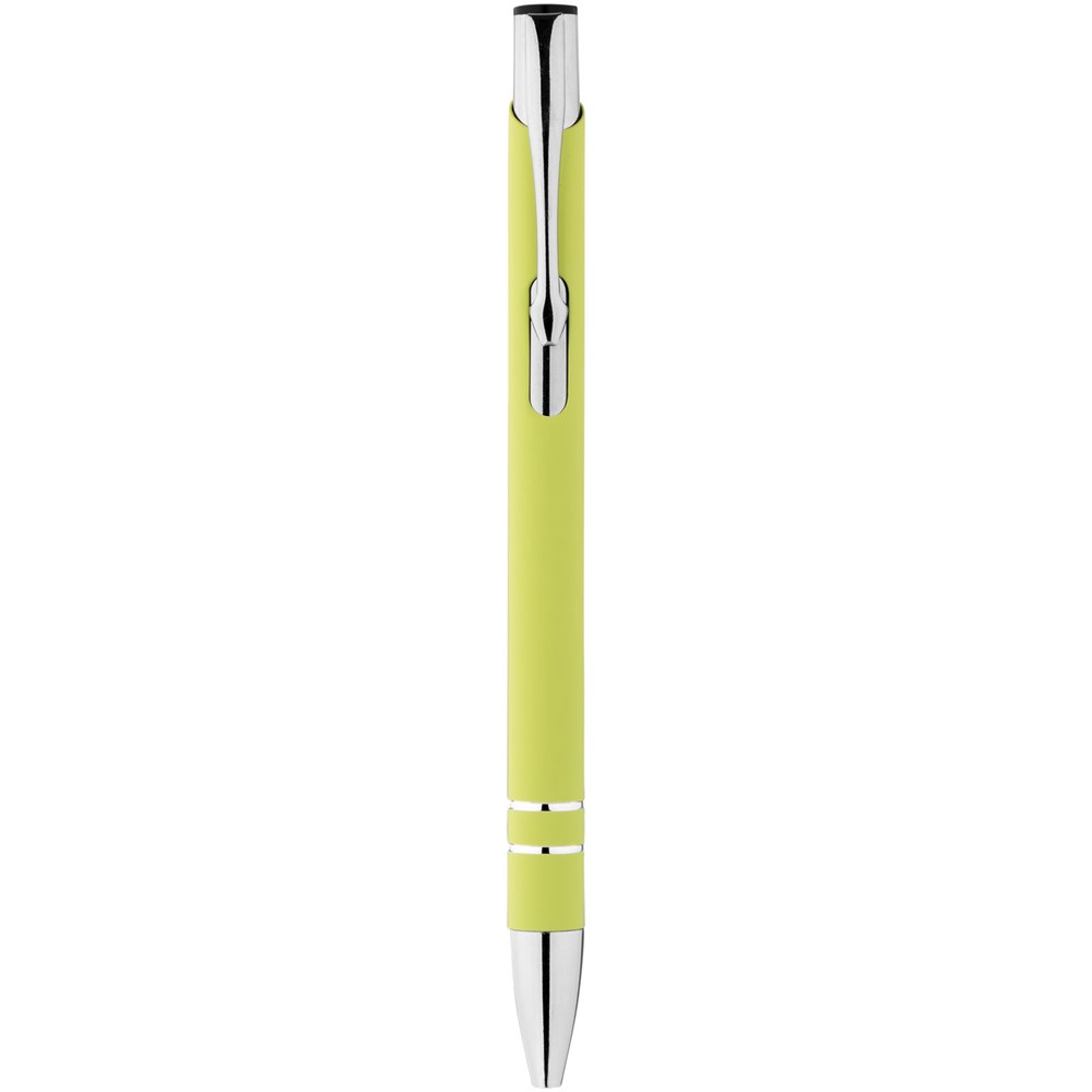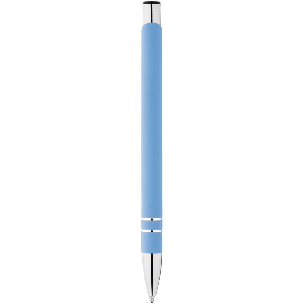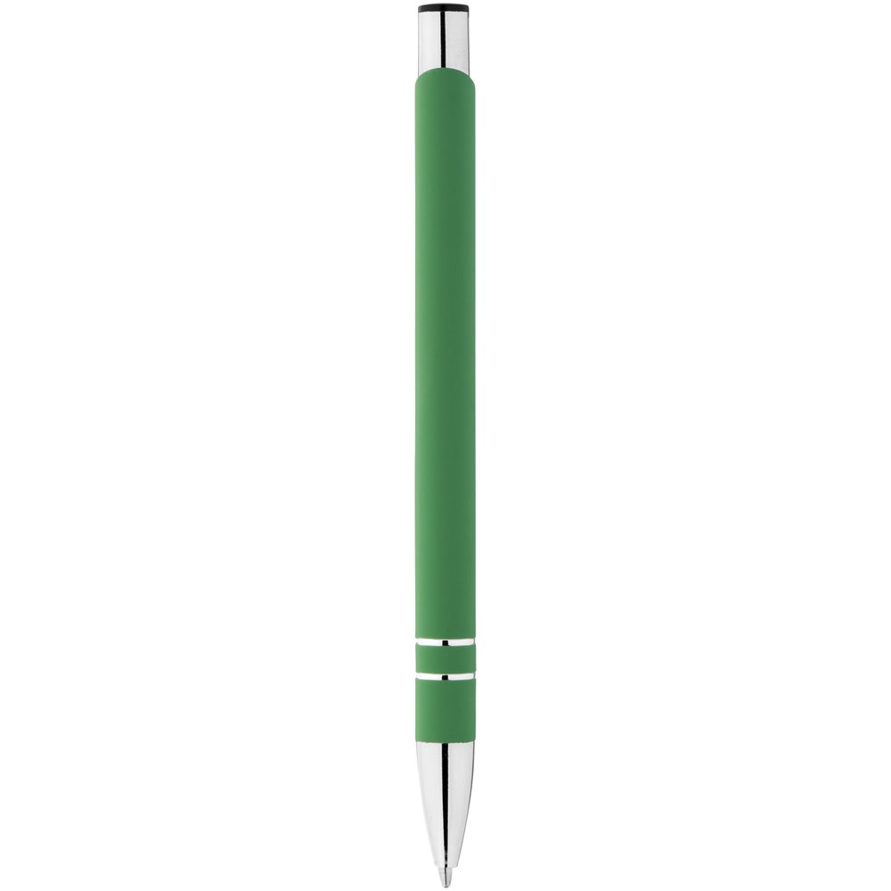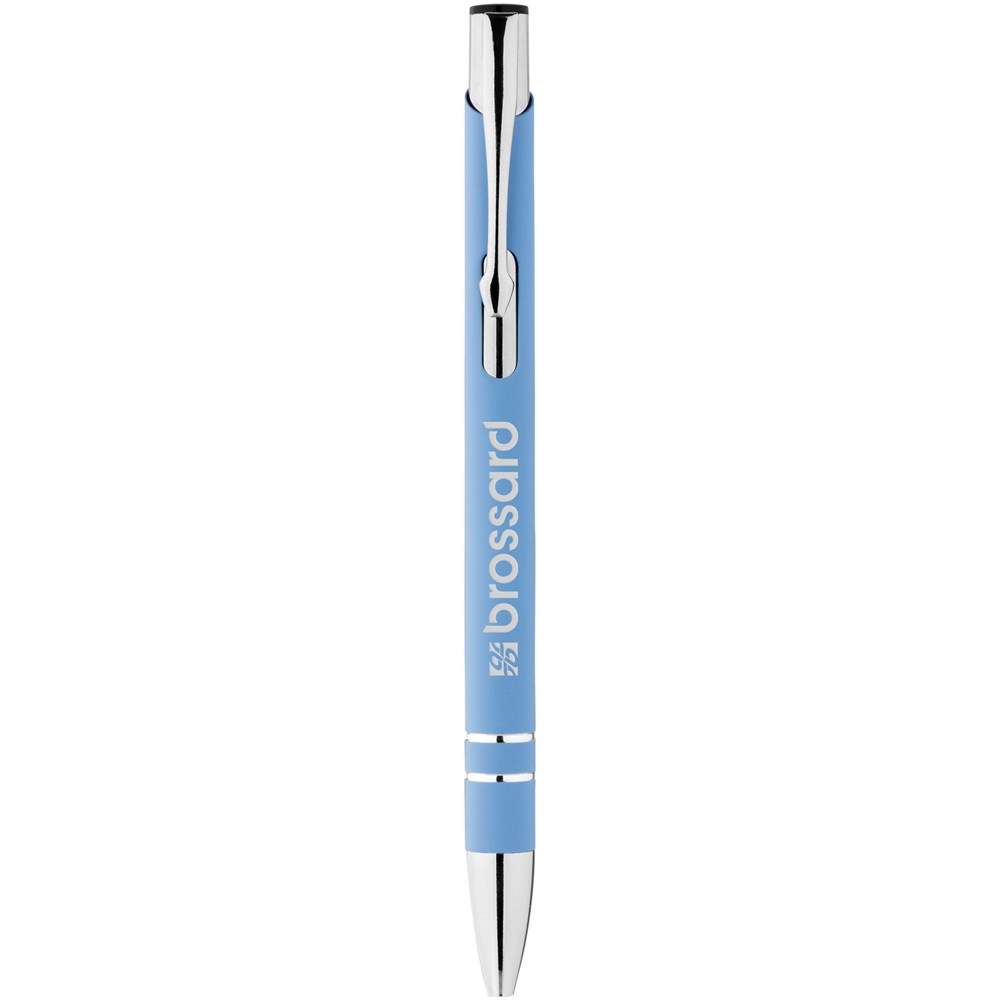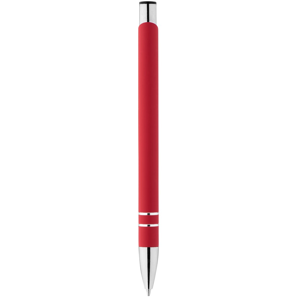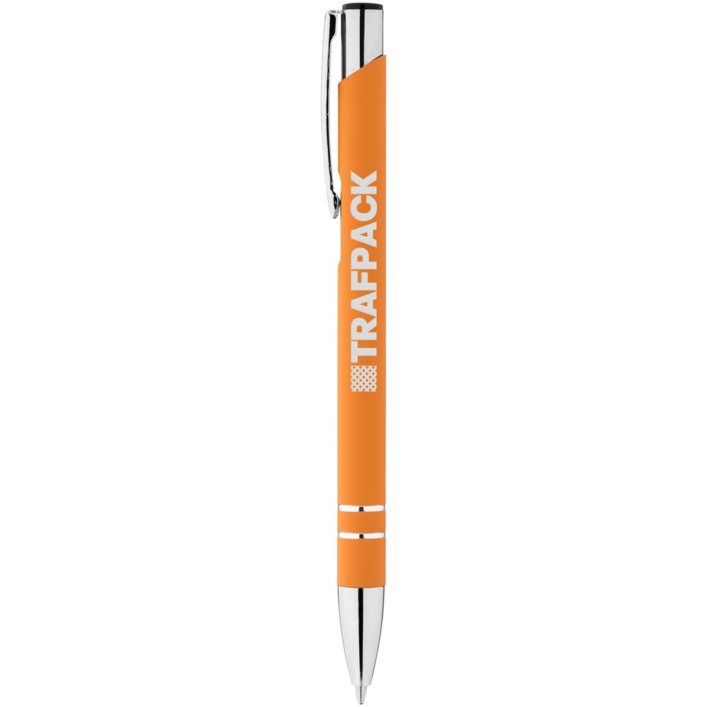 Rubber gecoate balpen met klikmechanisme. Zwartschrijvend.