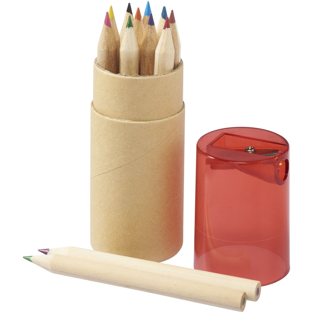 12 kleurpotloden in kartonnen doos met puntenslijper Decoratie kan niet worden geplaatst op de losse onderdelen.