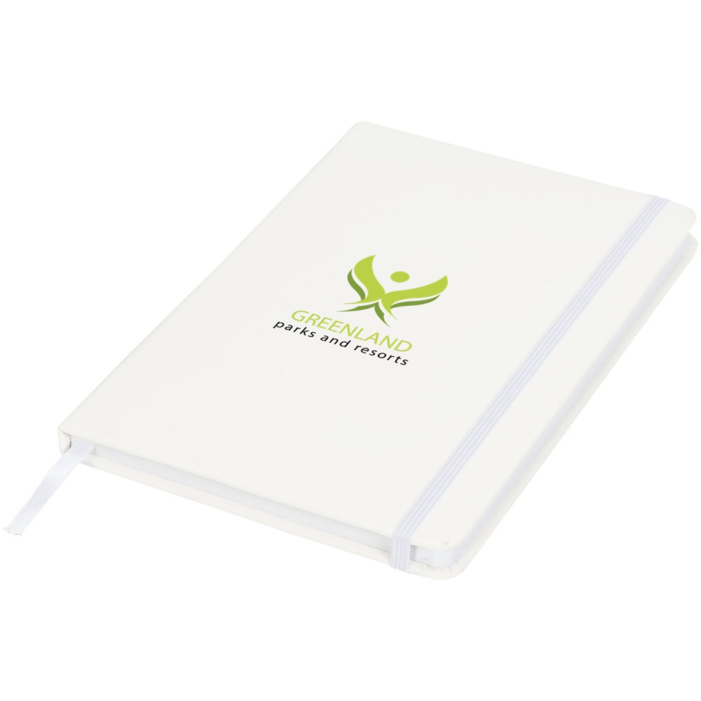 A5 notitieboek met bijpassende kleur elastieke sluiting en lint. Inclusief 96 pagina's (60g/m2) stippel lijntjes papier.