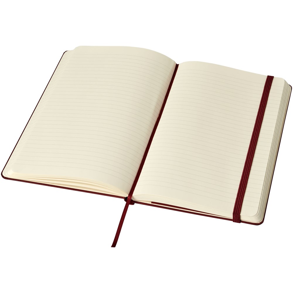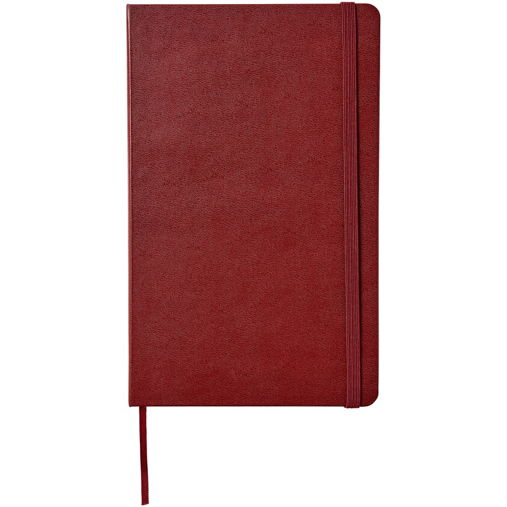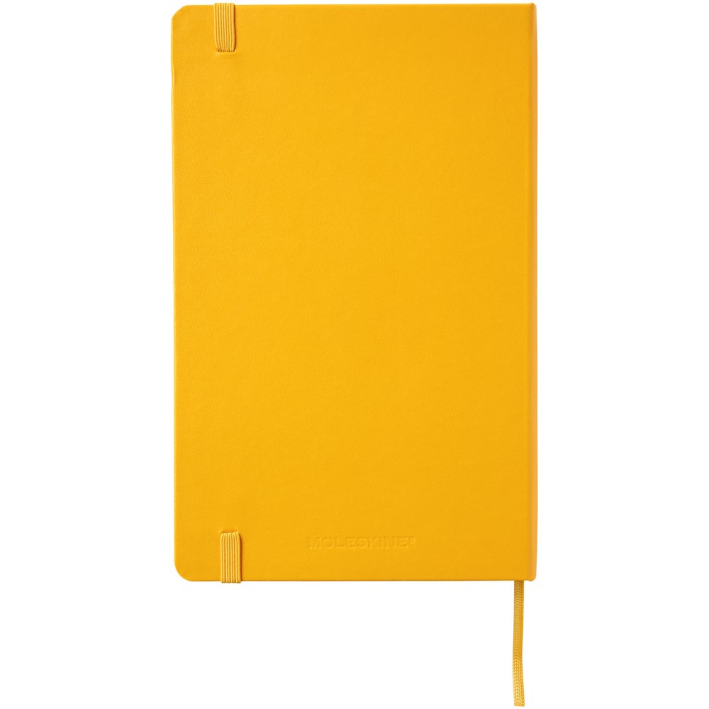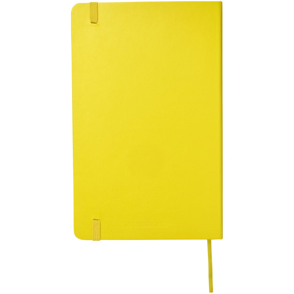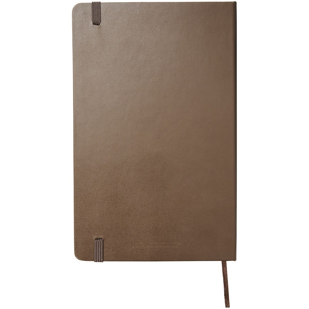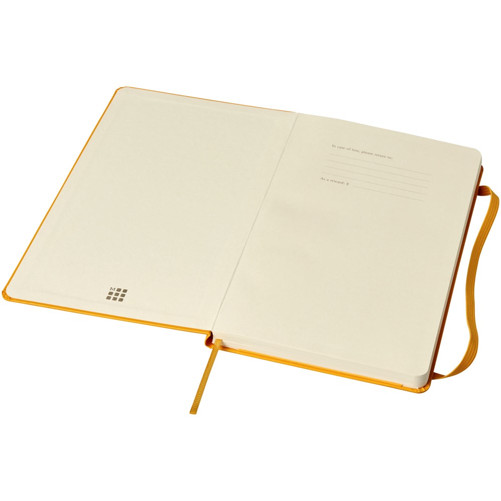 De Moleskine Classic large (13 x 21 cm) is voorzien van een harde omslag van gebonden karton met afgeronde hoeken, zuurvrij papier, een bladwijzer en een elastische sluiting. De eerste pagina biedt ruimte voor persoonsgegevens en het noteren van een beloning die de eerlijke vinder in geval van verlies ontvangt. Aan de achteromslag bevindt zich aan uitbreidbaar binnenvak met daarin de geschiedenis van Moleskine. Dit vak kan worden gebruikt voor losse papieren en notities. Bevat 240 ivoorkleurige gelinieerde pagina's. Pagina's zijn ook verkrijgbaar met stippen, ruitjes en in effen. Verkrijgbaar in diverse stijlvolle, levendige kleuren.