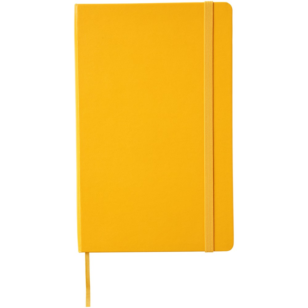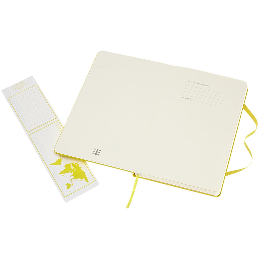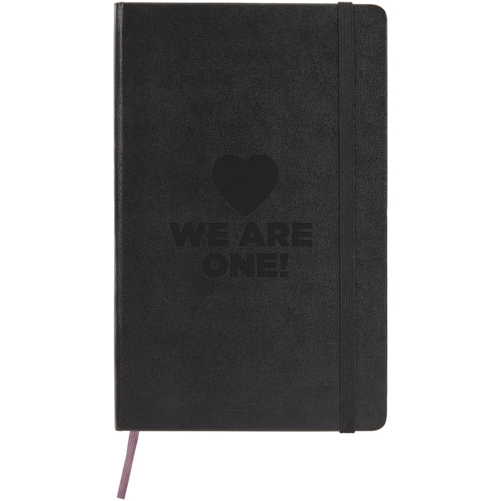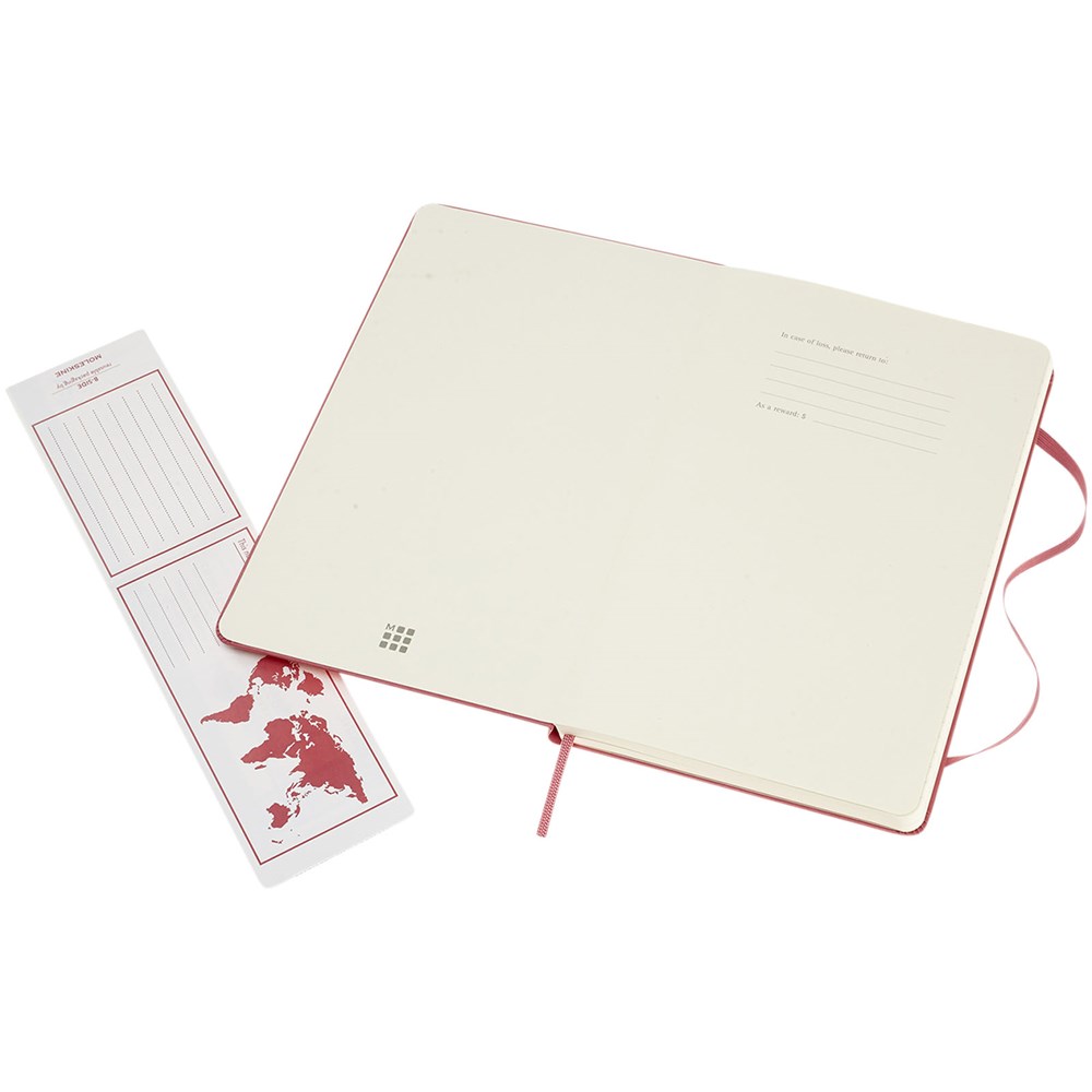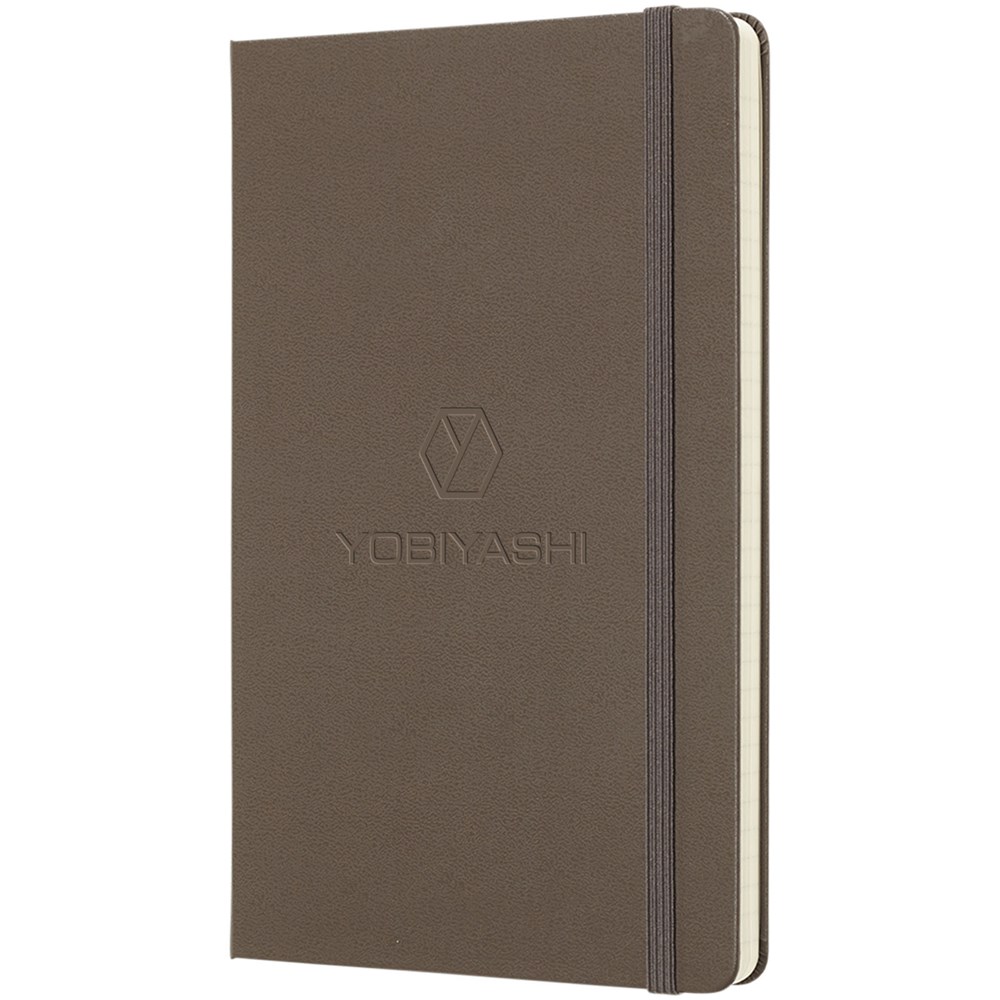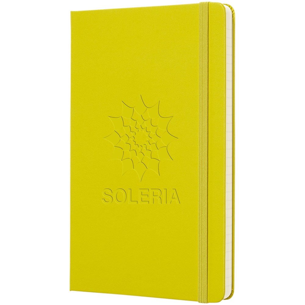 De Moleskine Classic large (13 x 21 cm) is voorzien van een harde omslag van gebonden karton met afgeronde hoeken, zuurvrij papier, een bladwijzer en een elastische sluiting. De eerste pagina biedt ruimte voor persoonsgegevens en het noteren van een beloning die de eerlijke vinder in geval van verlies ontvangt. Aan de achteromslag bevindt zich aan uitbreidbaar binnenvak met daarin de geschiedenis van Moleskine. Dit vak kan worden gebruikt voor losse papieren en notities. Bevat 240 ivoorkleurige gelinieerde pagina's. Pagina's zijn ook verkrijgbaar met stippen, ruitjes en in effen. Verkrijgbaar in diverse stijlvolle, levendige kleuren.