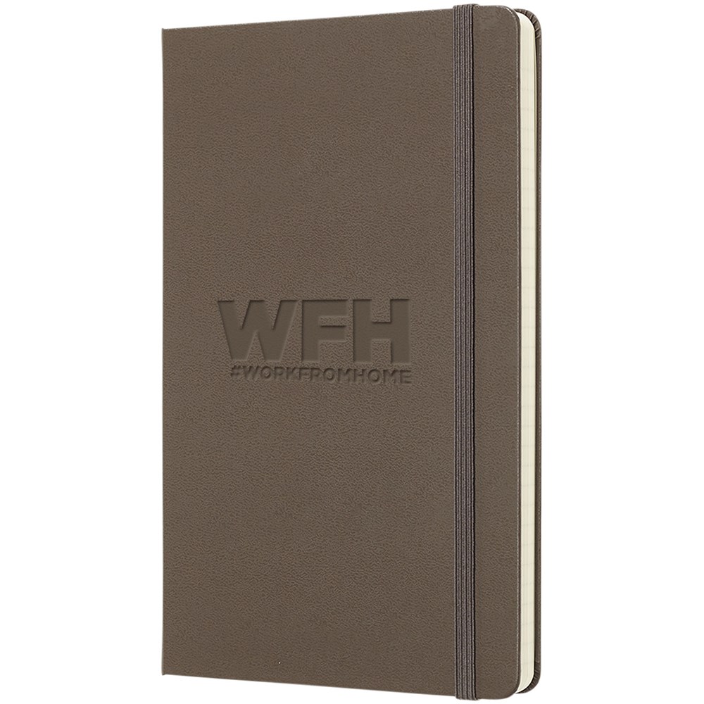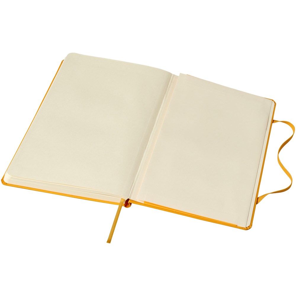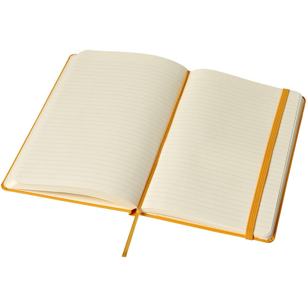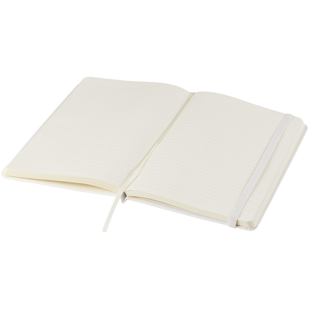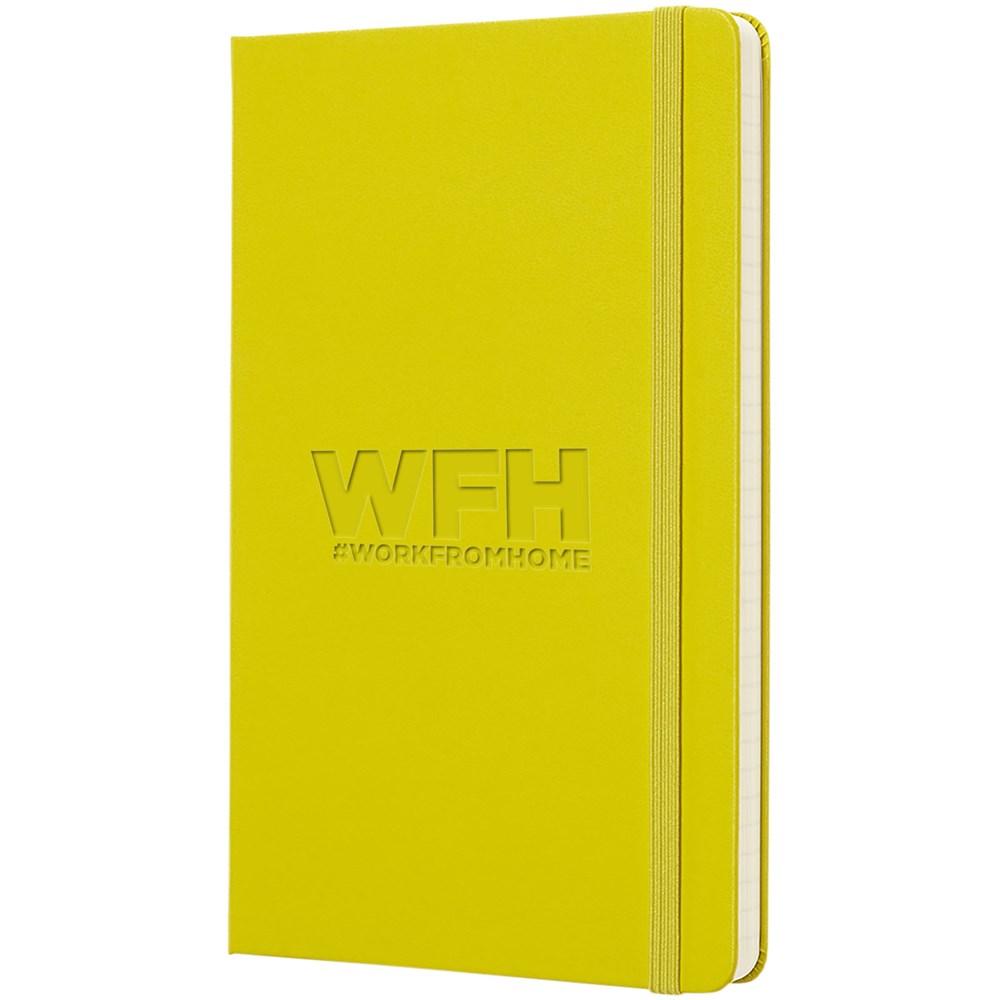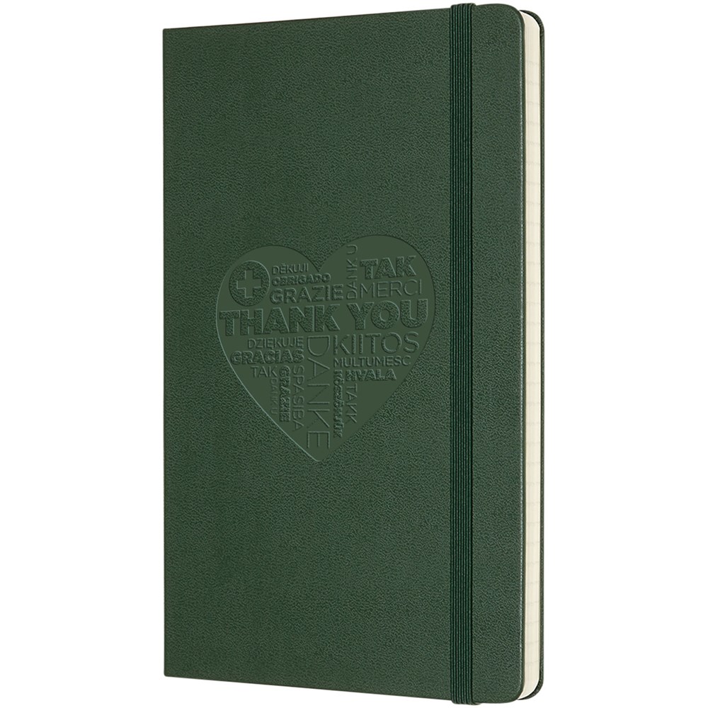De Moleskine Classic large (13 x 21 cm) is voorzien van een harde omslag van gebonden karton met afgeronde hoeken, zuurvrij papier, een bladwijzer en een elastische sluiting. De eerste pagina biedt ruimte voor persoonsgegevens en het noteren van een beloning die de eerlijke vinder in geval van verlies ontvangt. Aan de achteromslag bevindt zich aan uitbreidbaar binnenvak met daarin de geschiedenis van Moleskine. Dit vak kan worden gebruikt voor losse papieren en notities. Bevat 240 ivoorkleurige gelinieerde pagina's. Pagina's zijn ook verkrijgbaar met stippen, ruitjes en in effen. Verkrijgbaar in diverse stijlvolle, levendige kleuren.