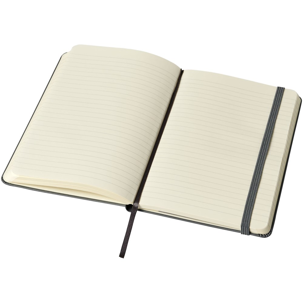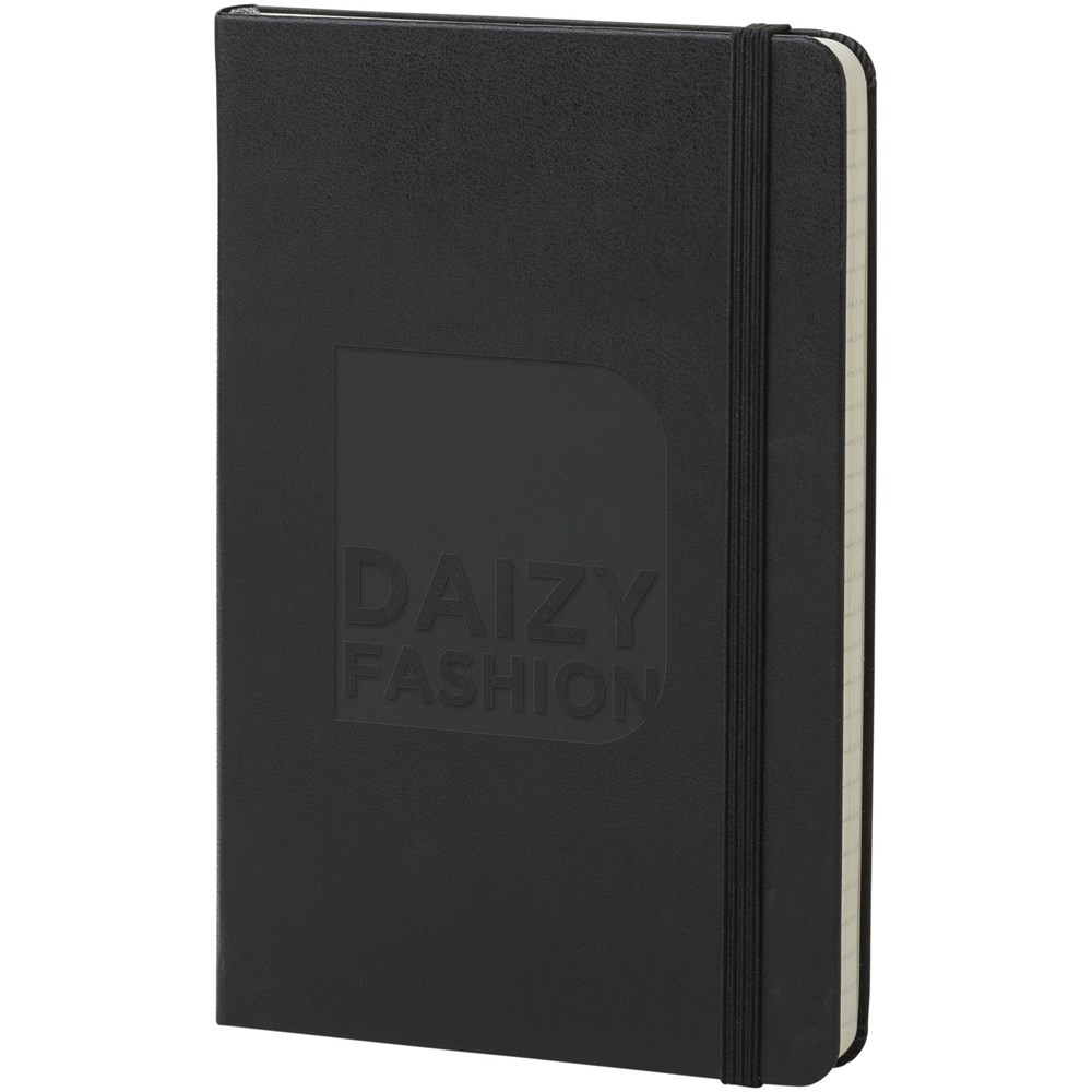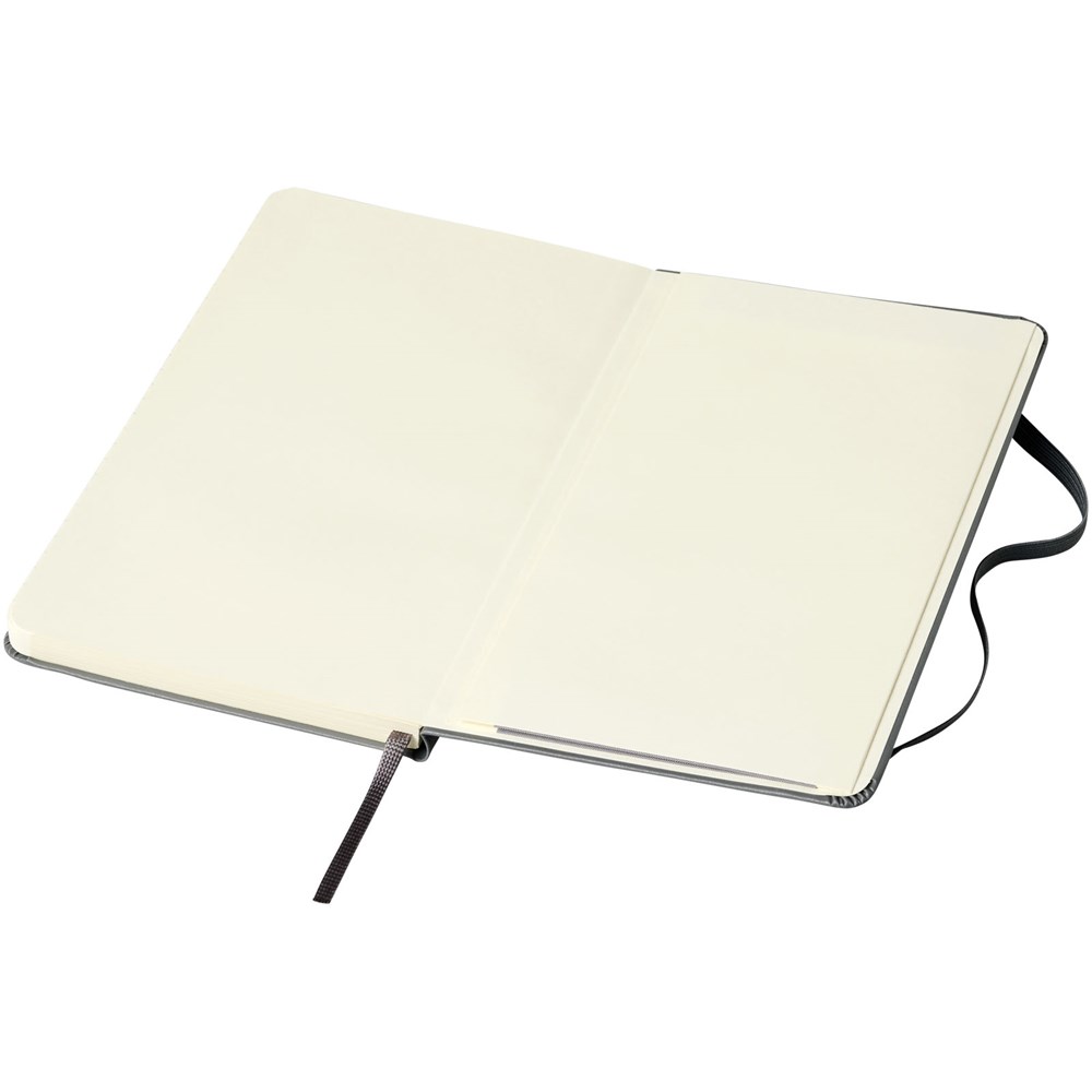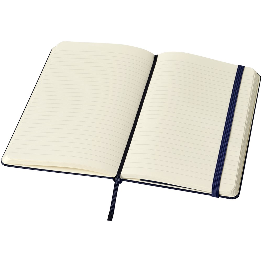 Classic M hard cover notitieboek - gelinieerd. Het Moleskine Classic hard cover notitieboek is nu verkrijgbaar in een medium formaat. Voorzien van de iconische afgeronde hoeken, een elastische sluiting en een bladwijzer. Uitbreidbaar vakje aan de binnenkant van de achterste omslag. Bevat 208 ivoorkleurige gelinieerde pagina's. Papier van kunstleder.