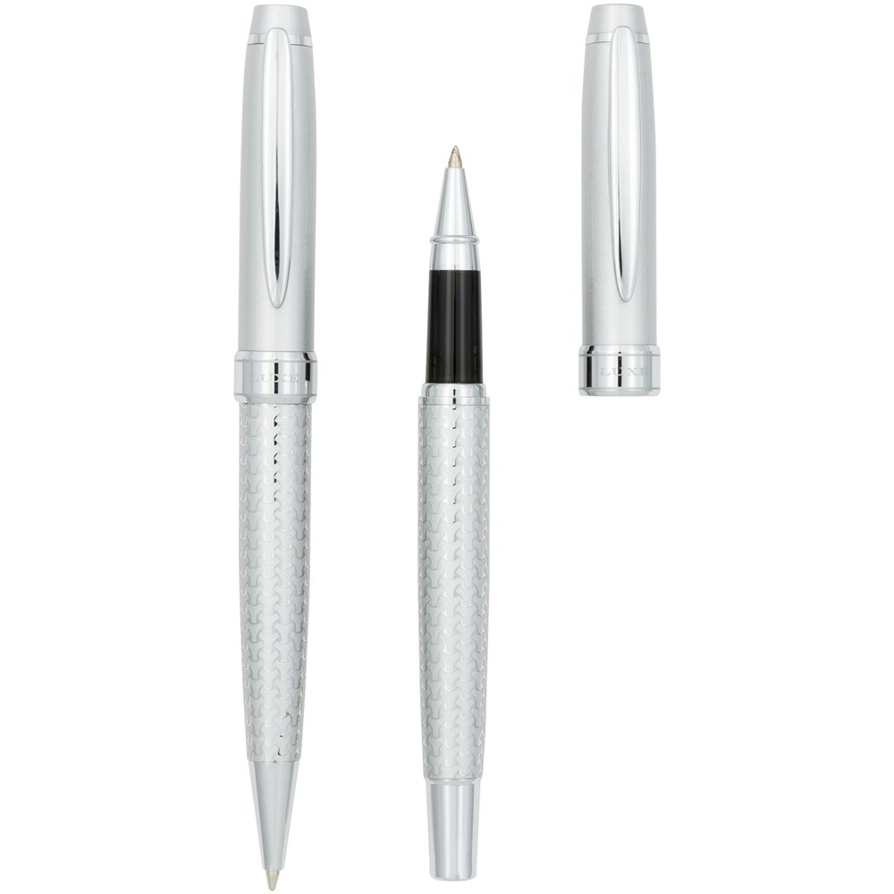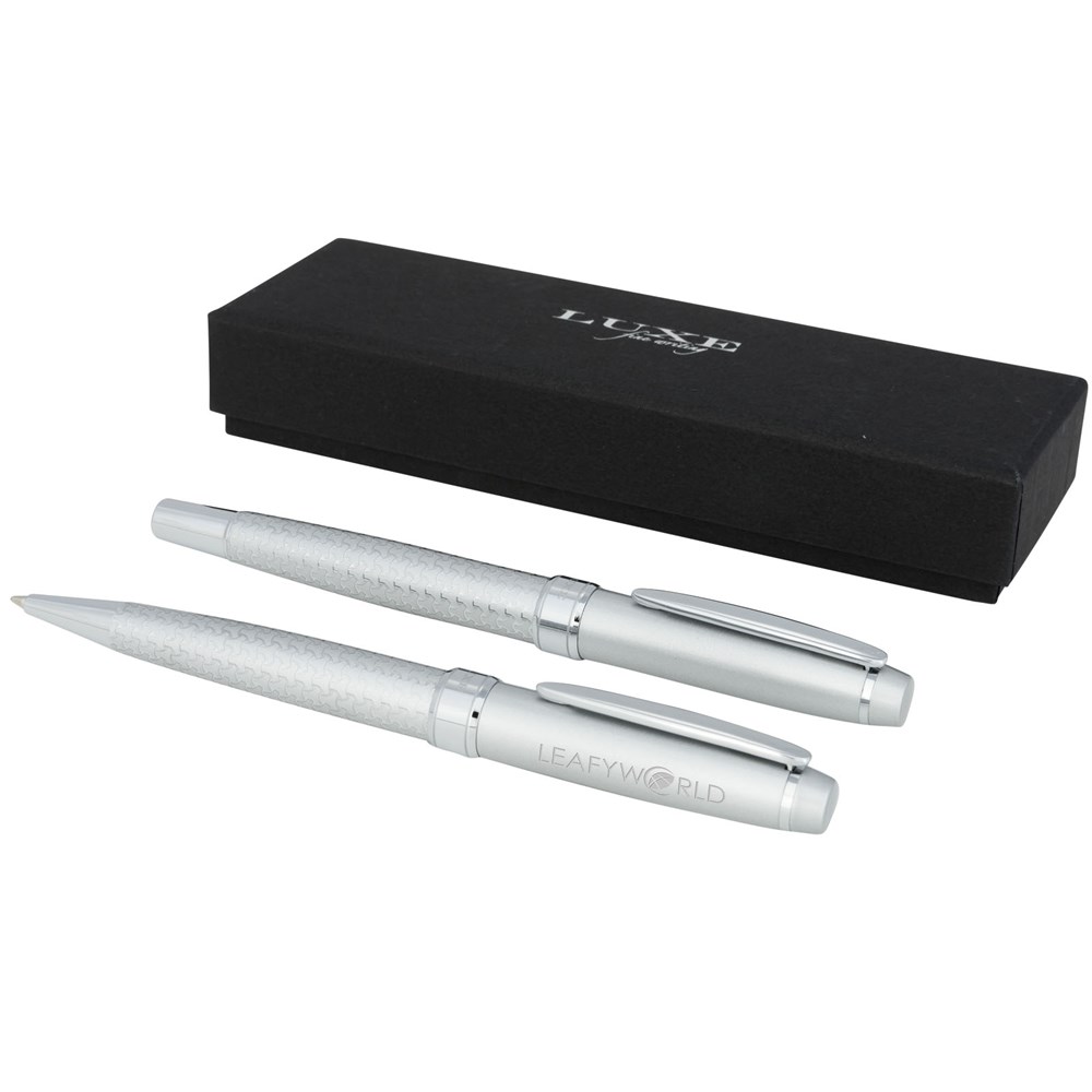 De perfecte manier om mensen uw naam te laten herinneren, deze exclusief ontworpen balpen en rollerbalpen hebben een prachtig geëtst patroon en een speciale plaats op de dop voor het afdrukken van uw decoratie. Incl. hoogwaardige zwarte navulling en verpakt in een ''LUXE'' geschenkverpakking (16 x 5 x 2,5 cm).