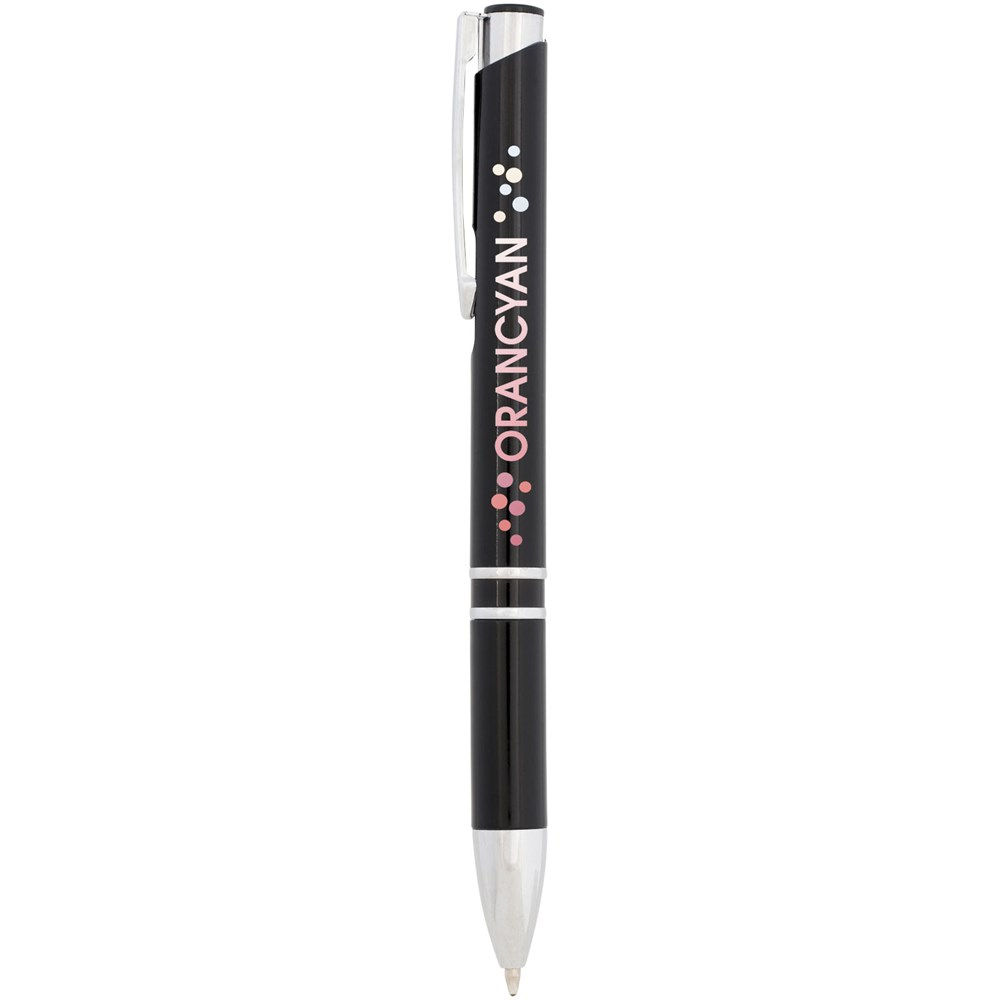 Moneta ABS plastic balpen. Balpen met klikmechanisme met ABS plastic huls en stalen clip. Het meest budgetvriendelijke Moneta alternatief. Het uitgebreide en populaire Moneta-assortiment is verkrijgbaar in vele verschillende stijlen en afwerkingen. ABS plastic huls met stalen clip.