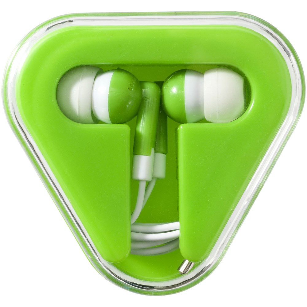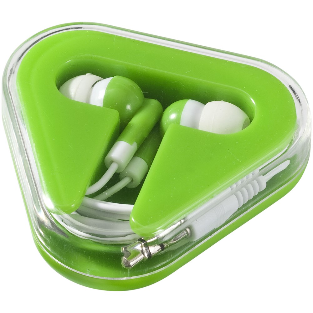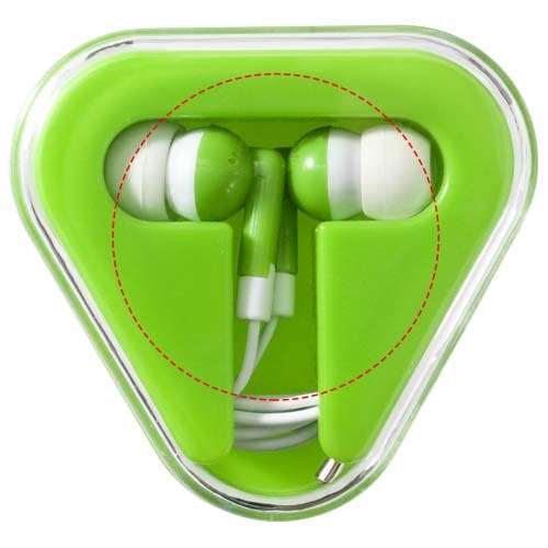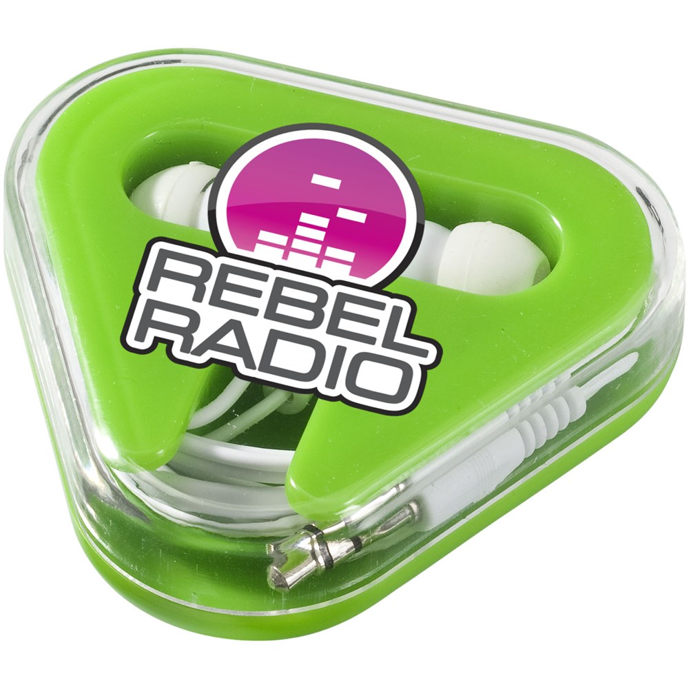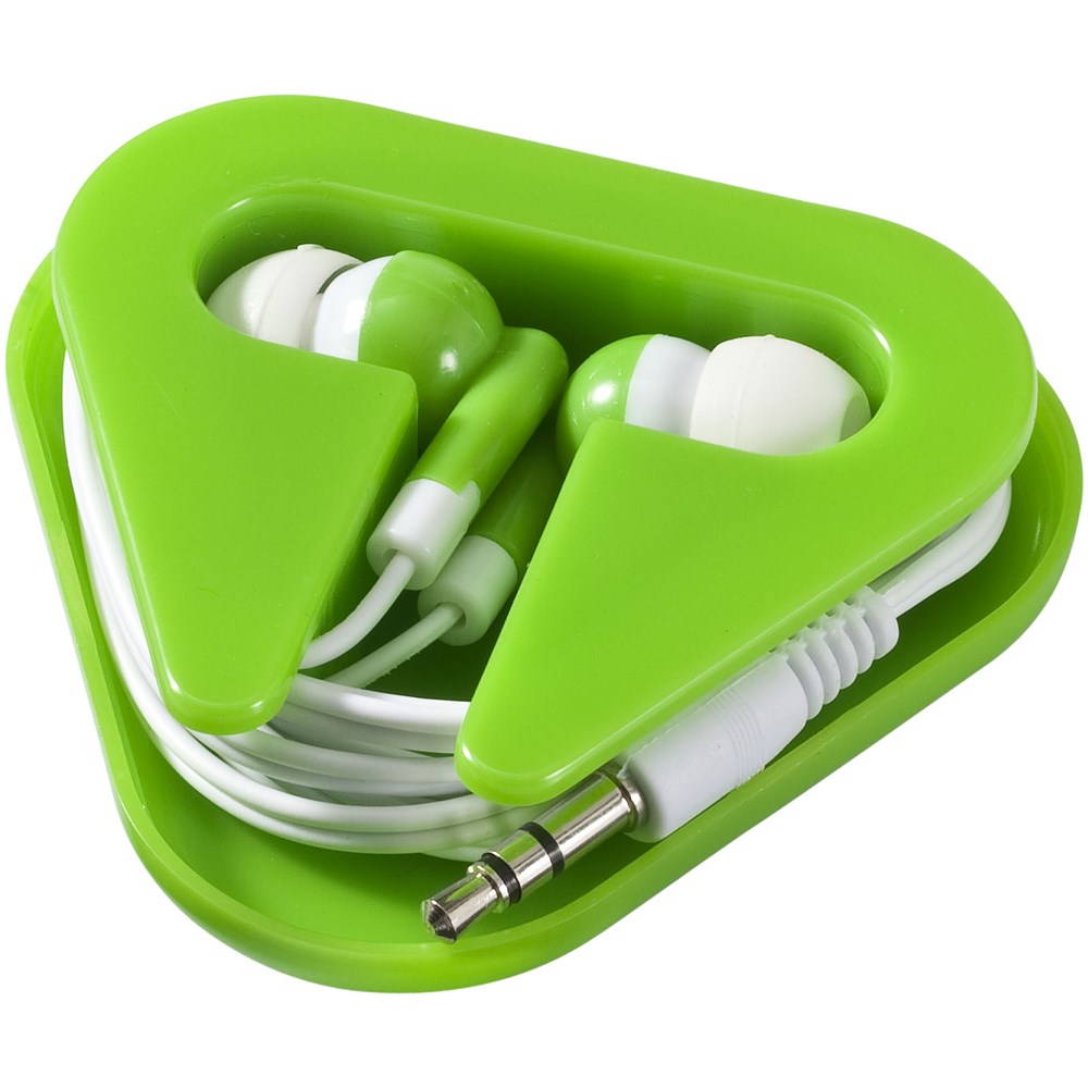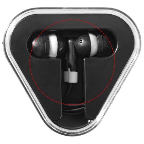 Driehoekig kunststof doosje om snoer in op te bergen. Geschikt voor alle standaard audioapparaten met een 3,5 mm audio-ingang.