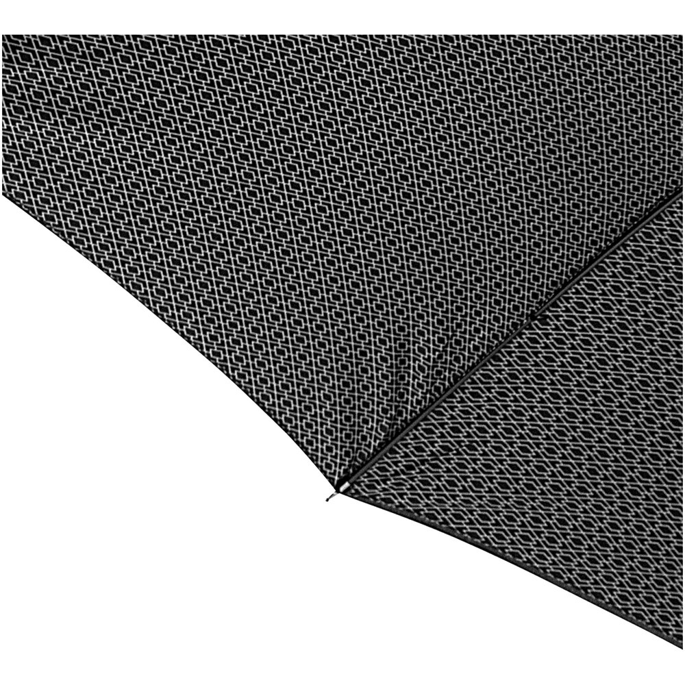 Paraplu met dubbellaags scherm, aan de binnenzijde voorzien van art deco-print. Automatisch openend. Scherm van pongézijde, stalen schacht en zacht handvat met rubberlaag. Geleverd met bijpassende hoes.
