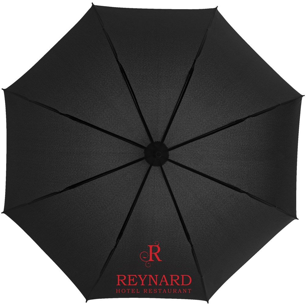 Automatische 23" stormparaplu met gekleurde glasvezel schacht en glasvezel baleinen. Kleur matching stiksels op de paraplu sluit band. Winddicht systeem. Geleverd met een hoes. Exclusief ontwerp.