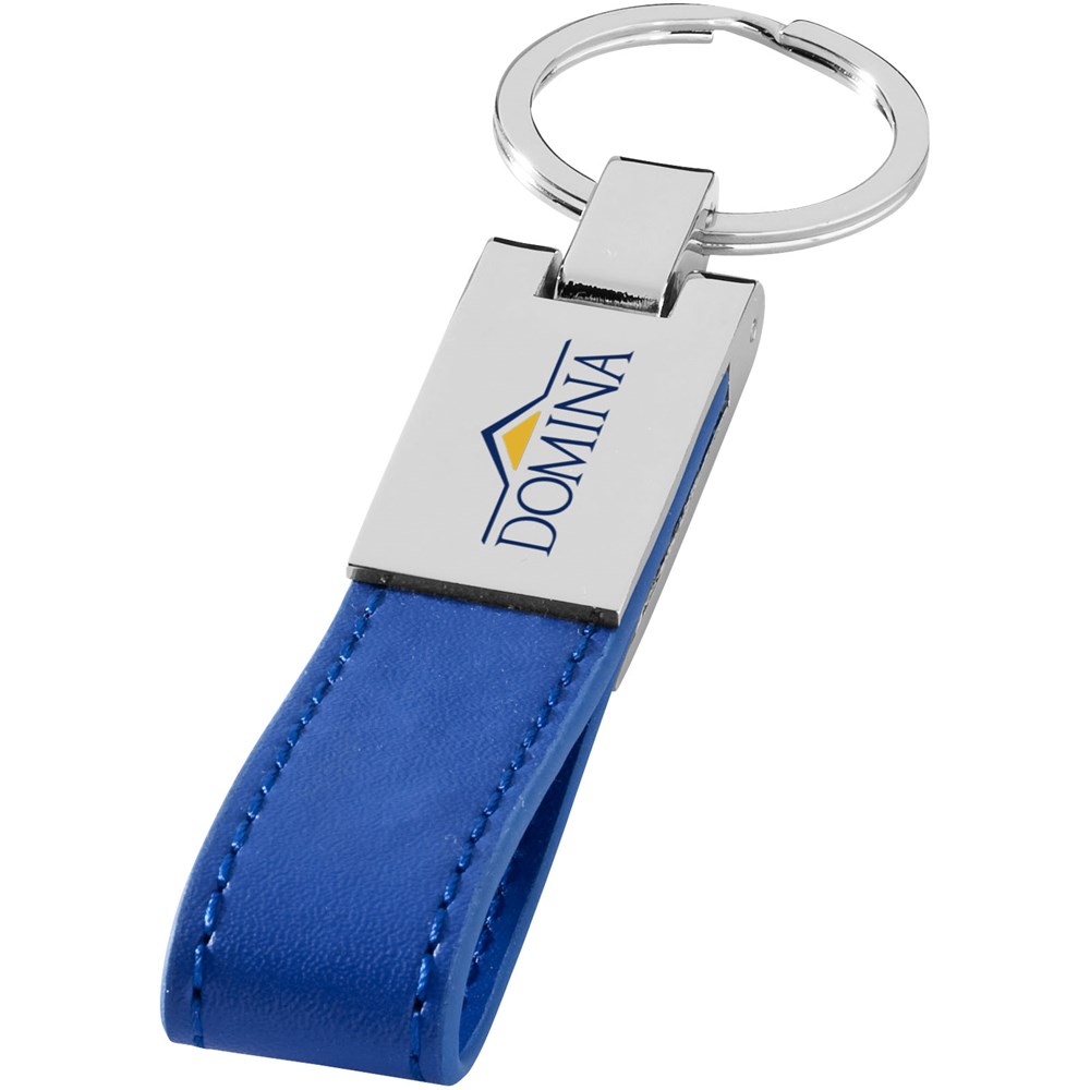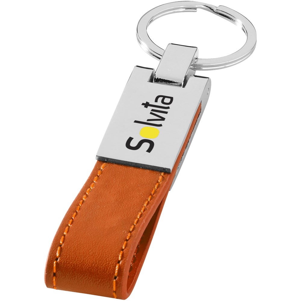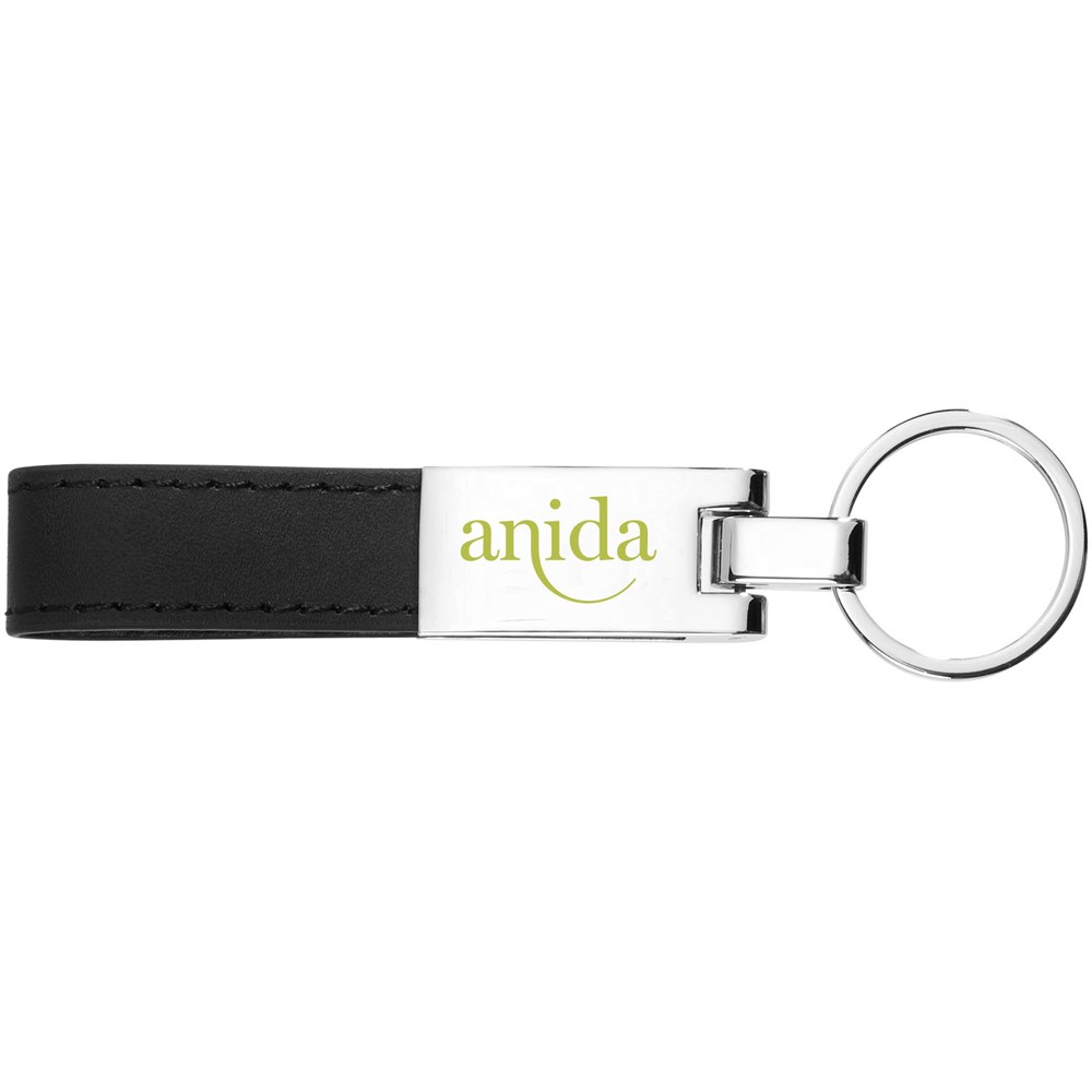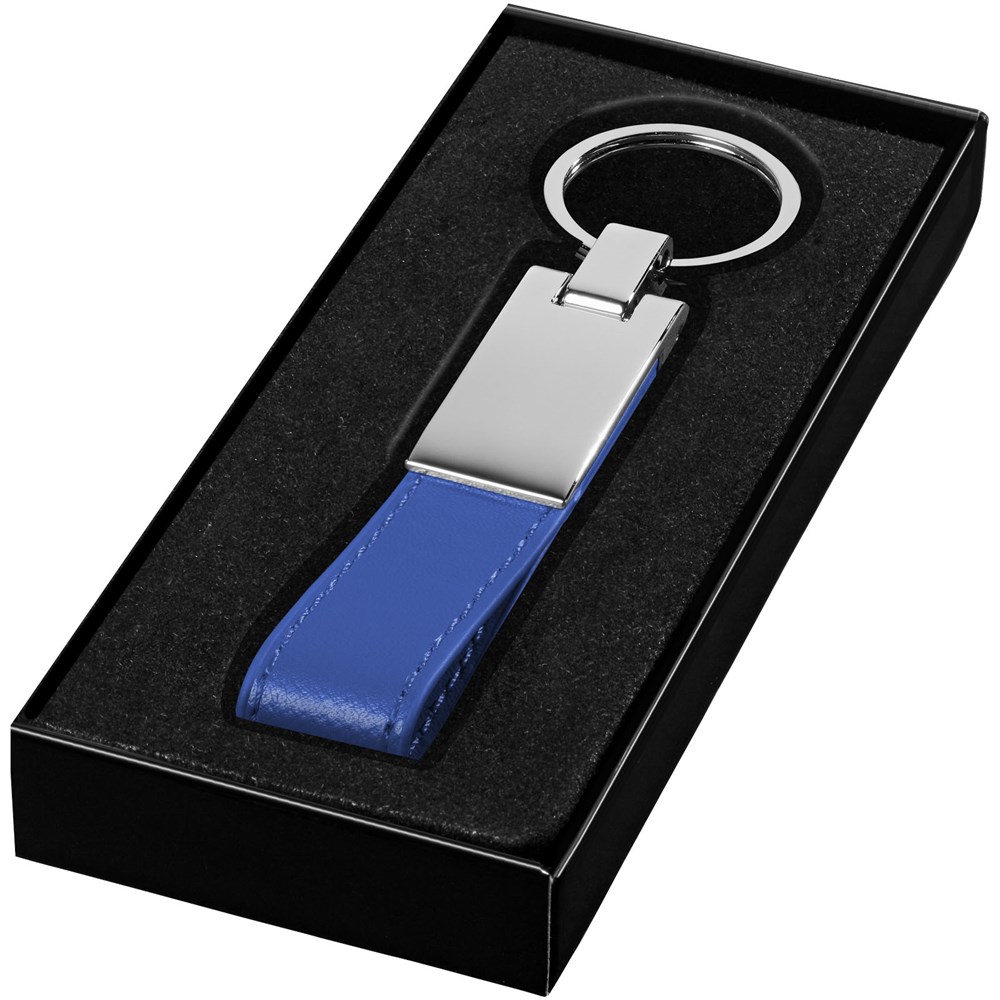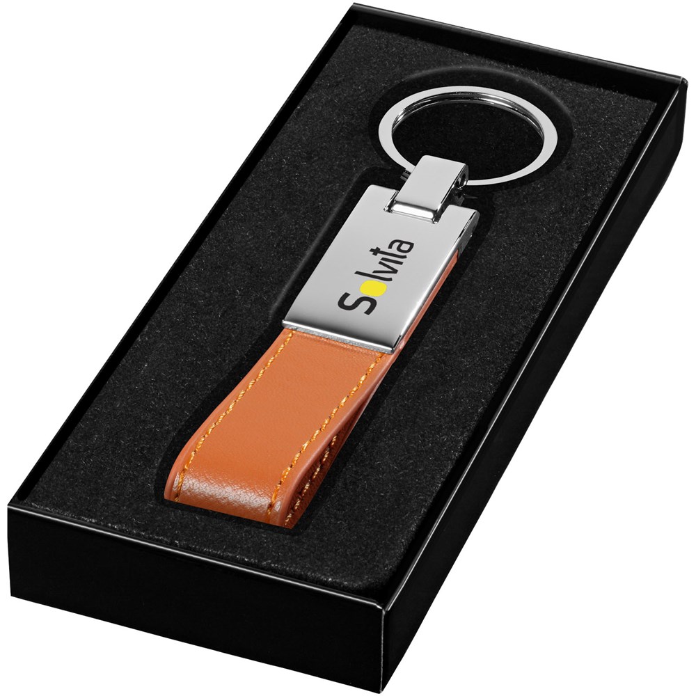 Verzilverde sleutelhanger geleverd in een zwarte geschenkverpakking.