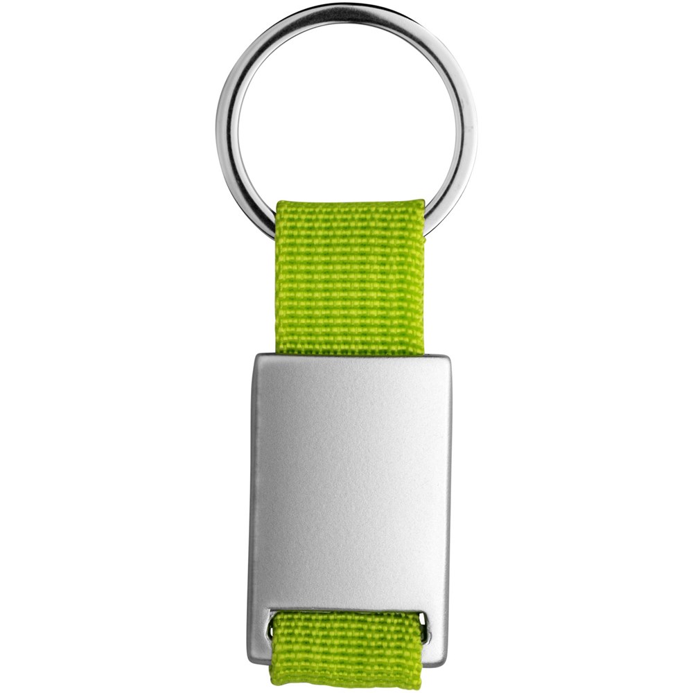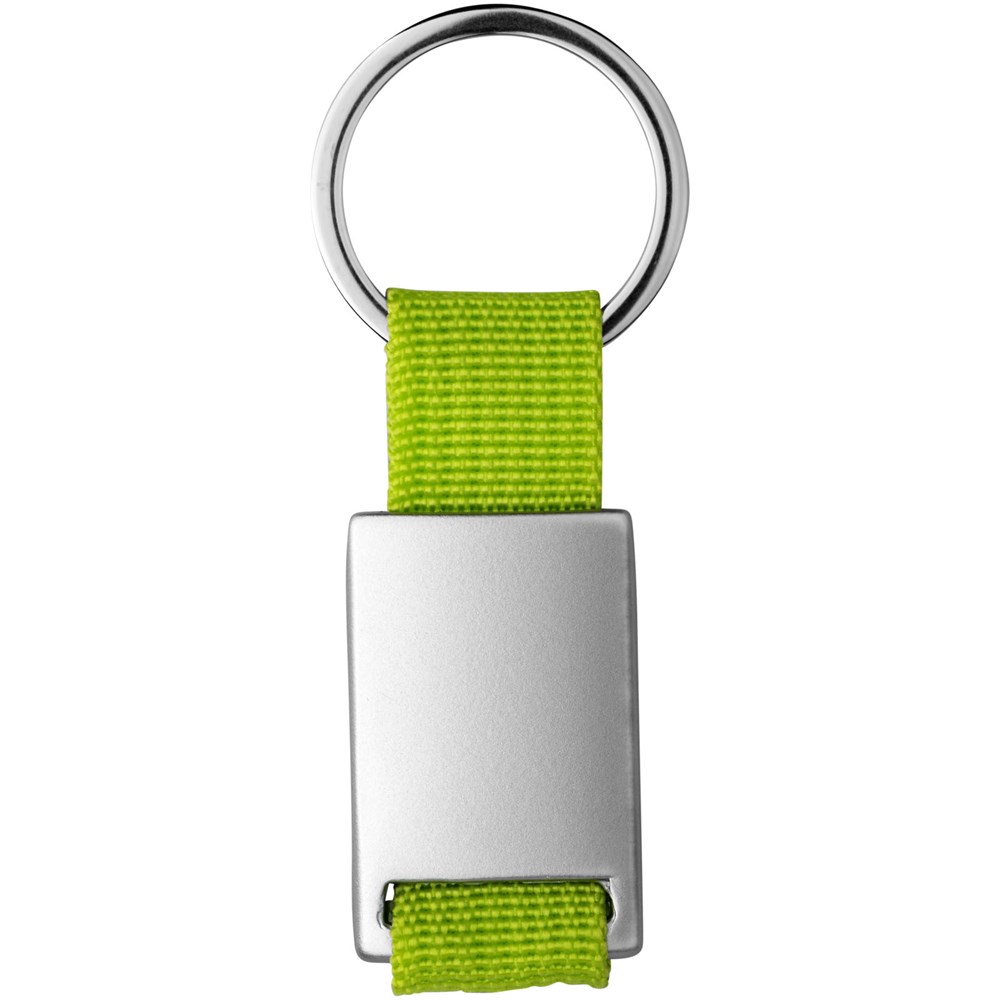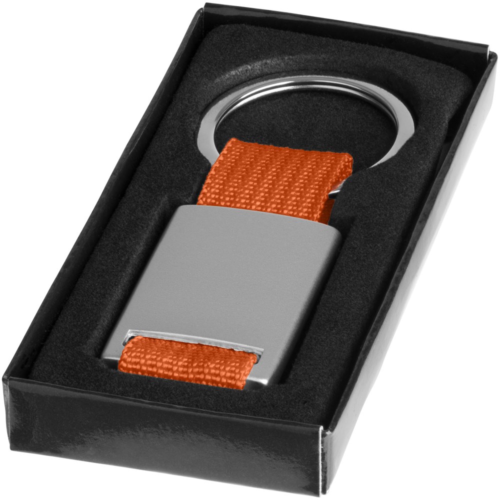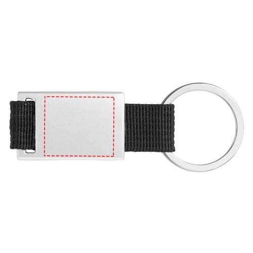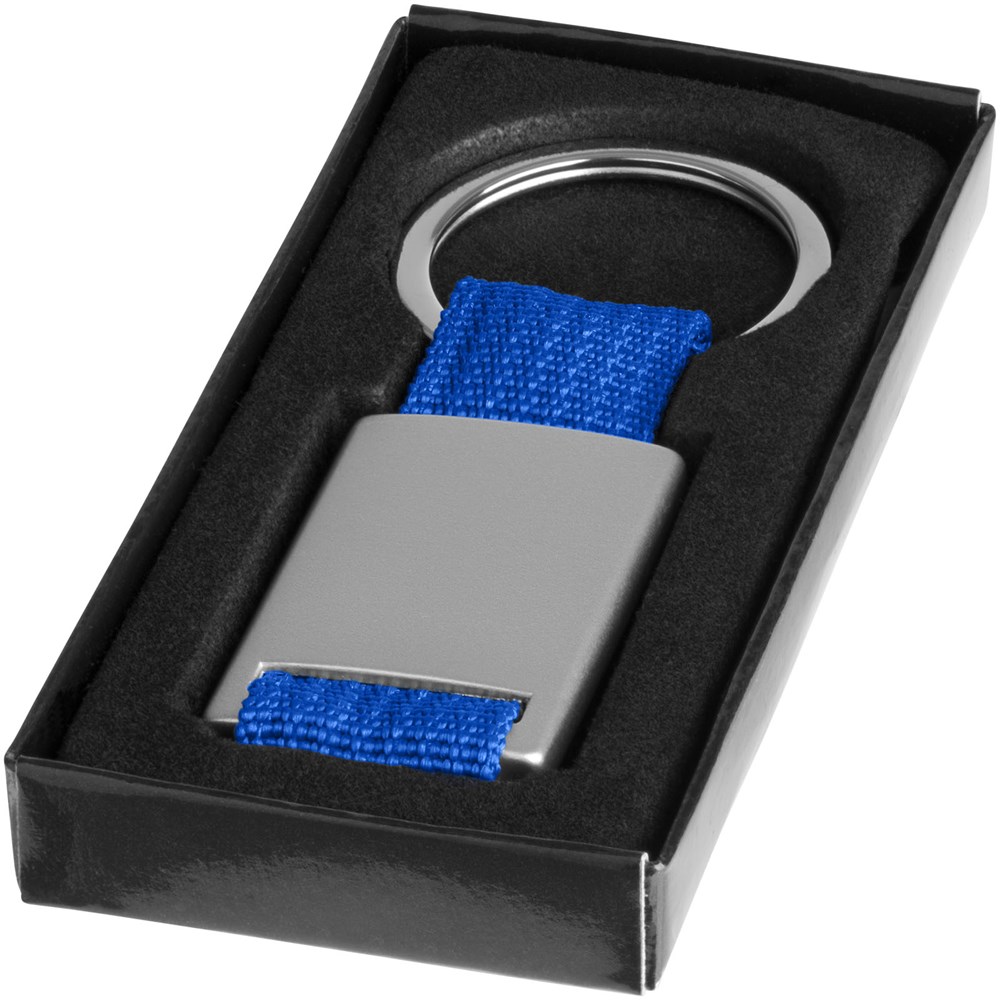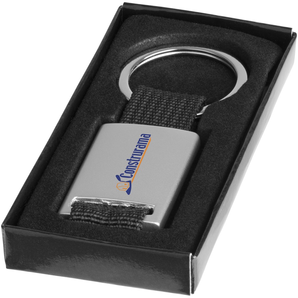 Alvaro webbing sleutelhanger. Rechthoekige sleutelhanger. Houd je sleutels veilig samen met deze moderne sleutelhanger. Aluminium met gekleurde polyester band. Geleverd in een zwarte geschenkverpakking. Aluminium.