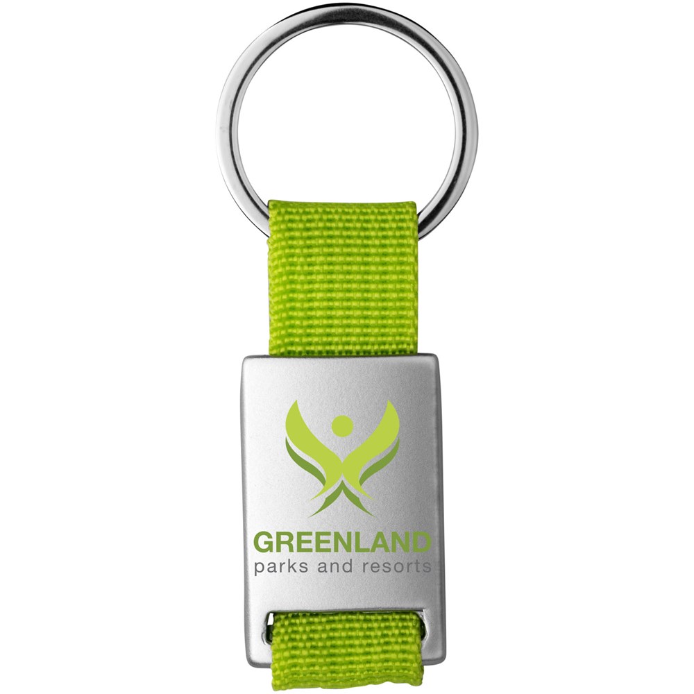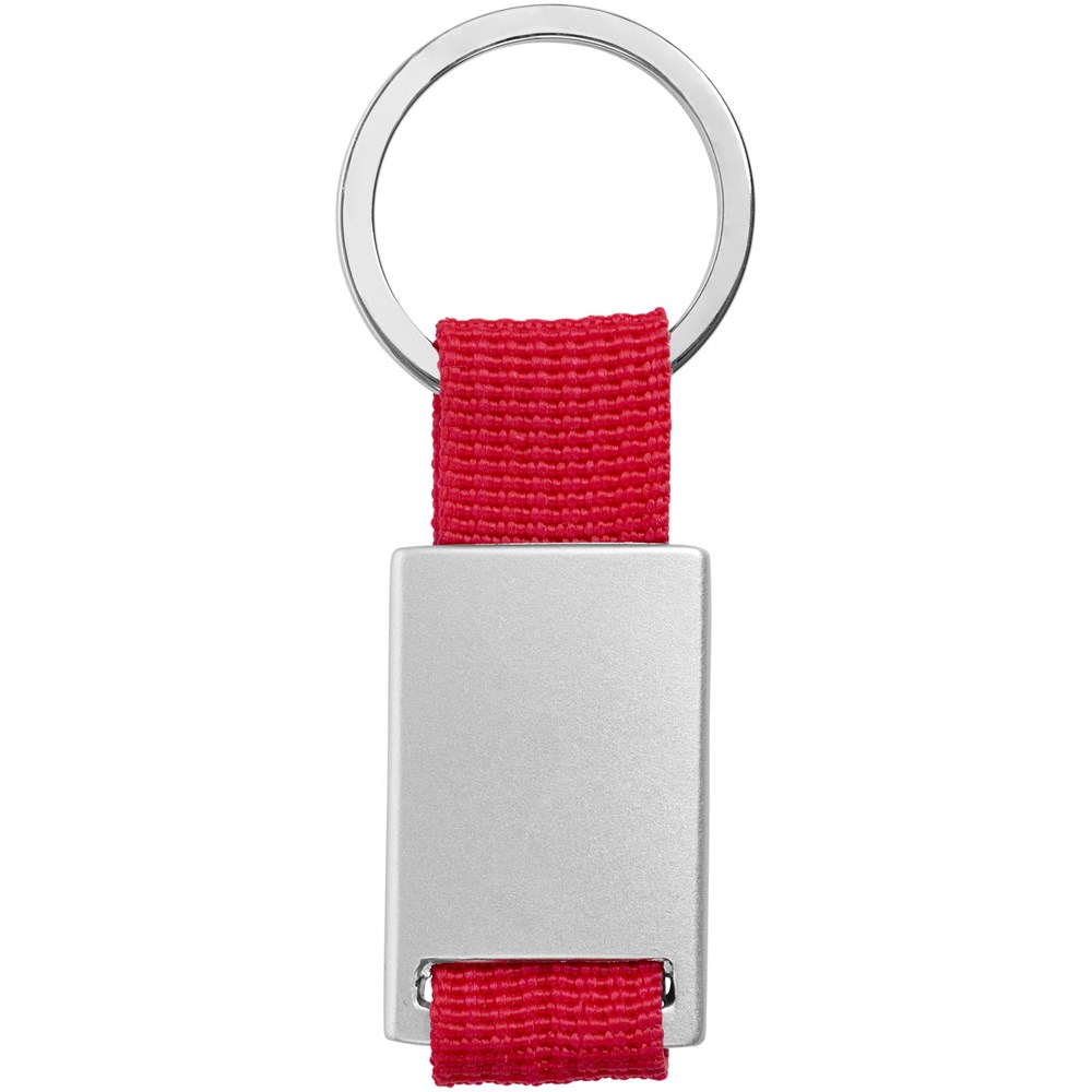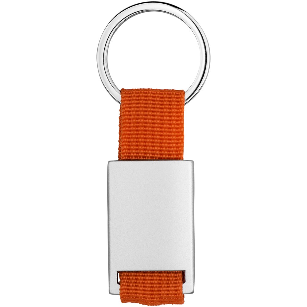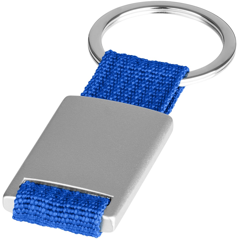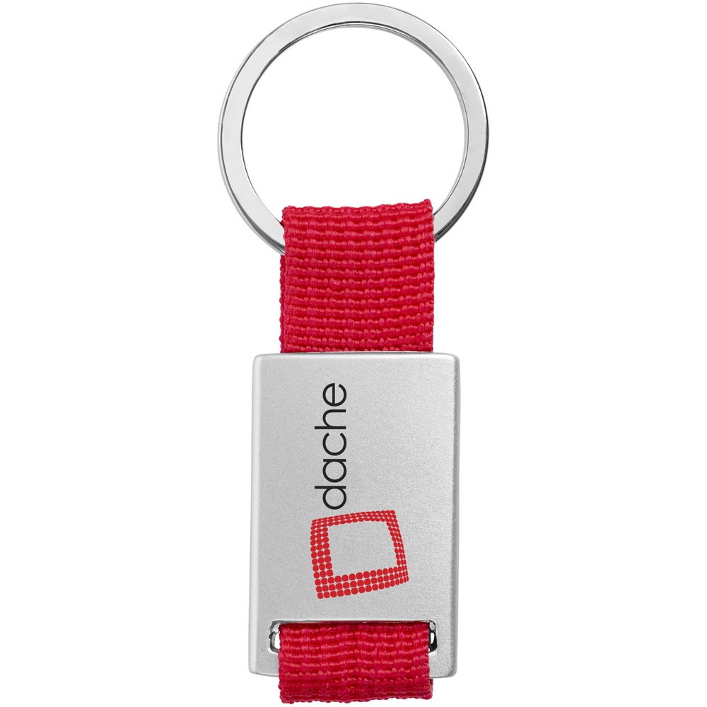 Alvaro webbing sleutelhanger. Rechthoekige sleutelhanger. Houd je sleutels veilig samen met deze moderne sleutelhanger. Aluminium met gekleurde polyester band. Geleverd in een zwarte geschenkverpakking. Aluminium.