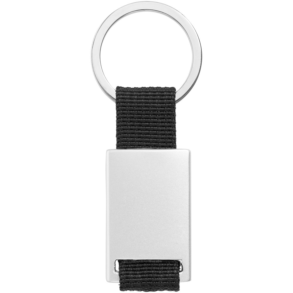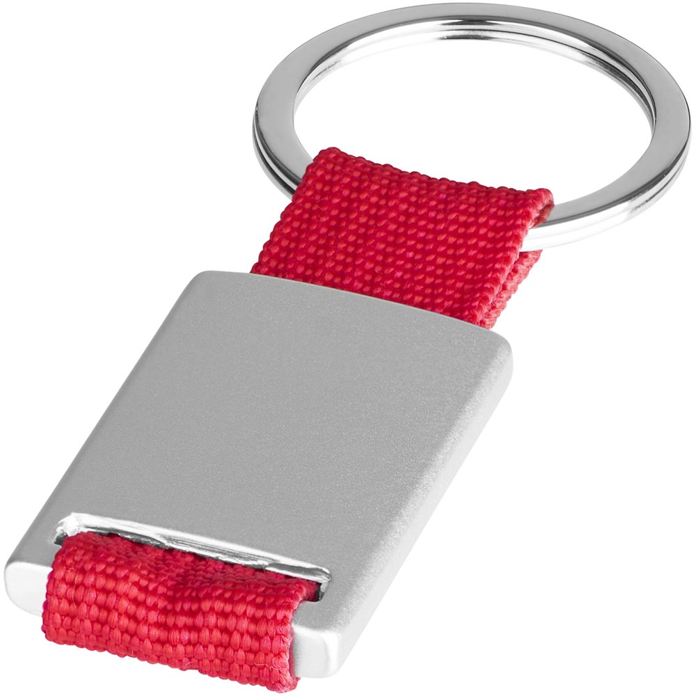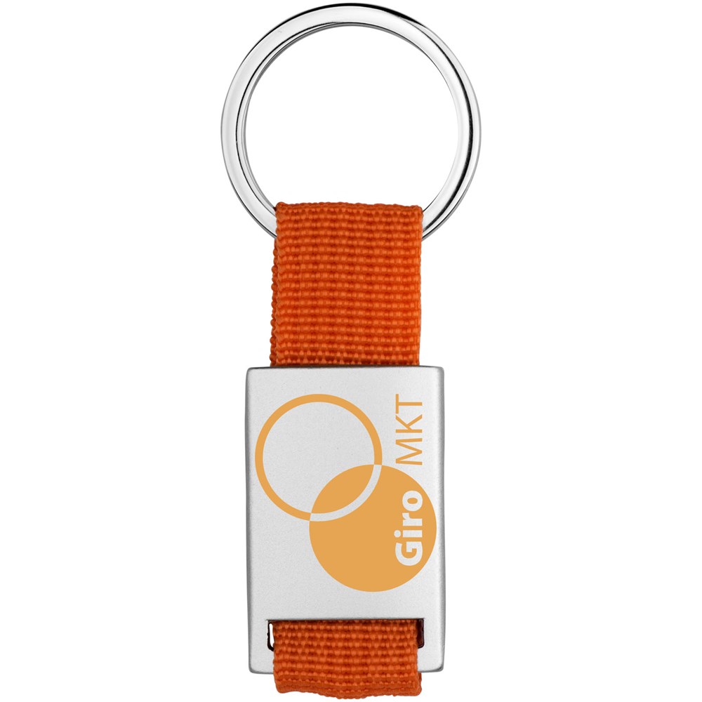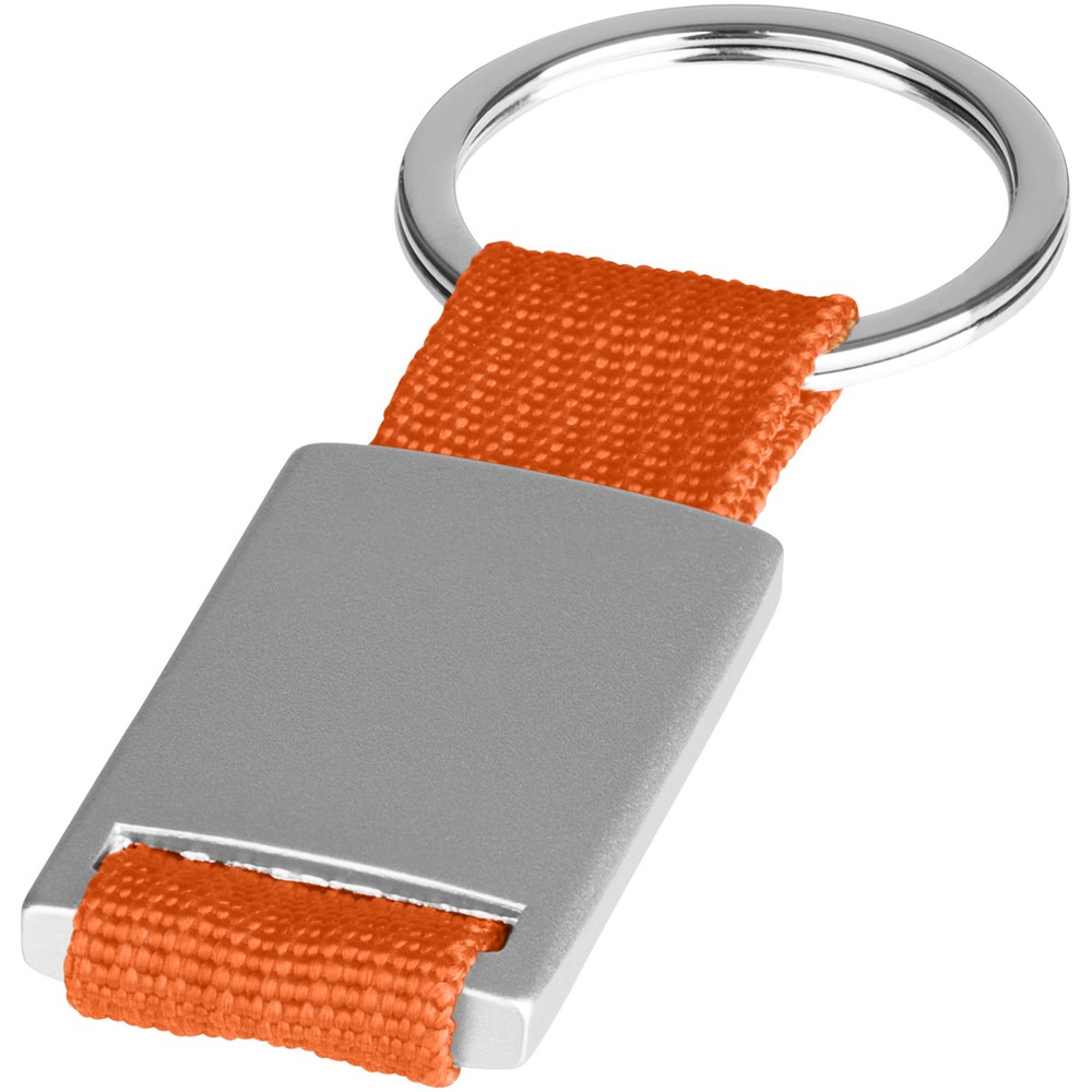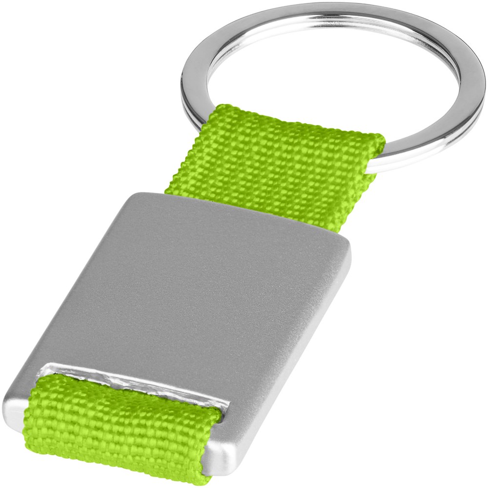 Alvaro webbing sleutelhanger. Rechthoekige sleutelhanger. Houd je sleutels veilig samen met deze moderne sleutelhanger. Aluminium met gekleurde polyester band. Geleverd in een zwarte geschenkverpakking. Aluminium.