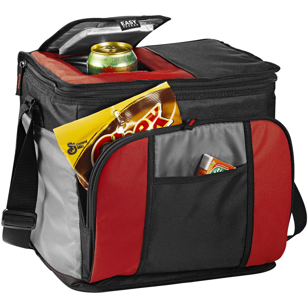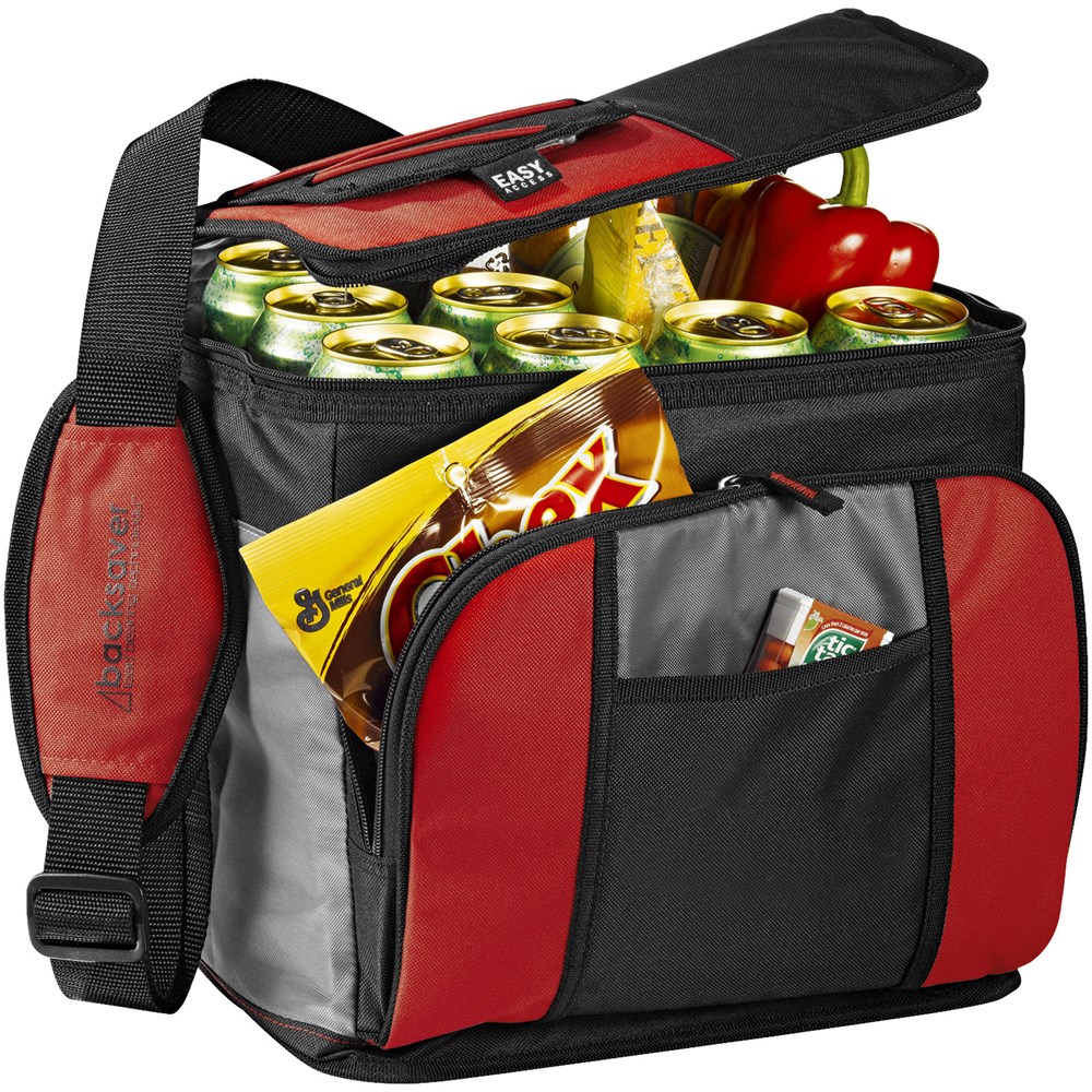 Easy-access koeltas voor 24 blikjes. Ritsvak voor 24 blikjes. Voorvak met ritssluiting. Easy-access vak voor directe bereikbaarheid van de gekoelde inhoud. Backsaver™ technologie die ervoor zorgt dat u geen last van uw rug krijgt bij het dragen van een volle tas. Ultra Safe™ lekvrije PEVA voering. Opvouwbaar en dus makkelijk op te bergen. 600D polyester.