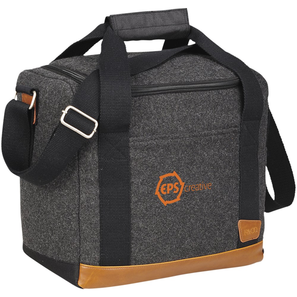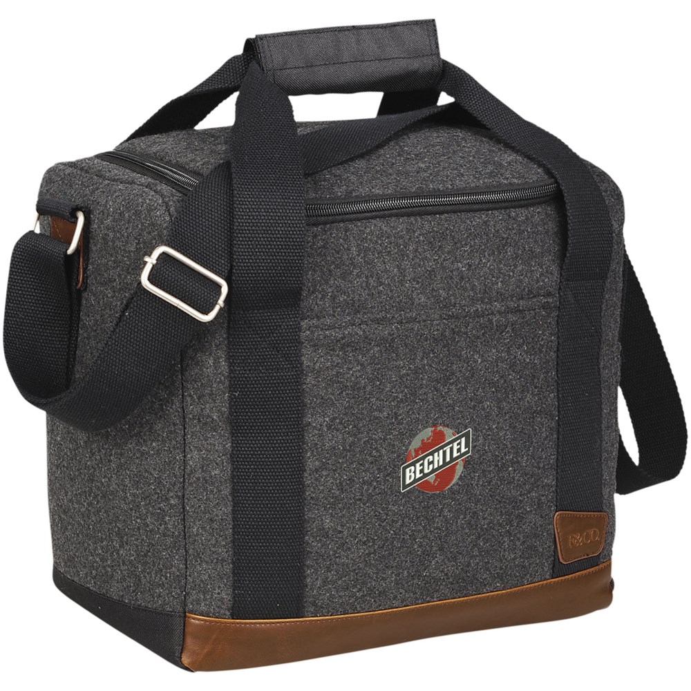 Campster koeltas voor 12 flessen. Onderdeel van de Field & Co.® Campster serie. De inspiratie hiervoor komt van de retro kampeer en padvinderslook, gecombineerd met moderne behoeften. Deze stijlvolle koeltas combineert wol/polyester en vinyl accenten met de functie van een geïsoleerde koeler met flesverdeler. Inzetstukken komen samen en creëren afzonderlijke compartimenten voor twaalf flessen van 350 ml. Wanneer ze niet in gebruik zijn kunnen ze worden opgevouwen en opgeslagen op de bodem van de tas. Bevat een Field & CO. flesopener met merklogo. Polyester wolmix.