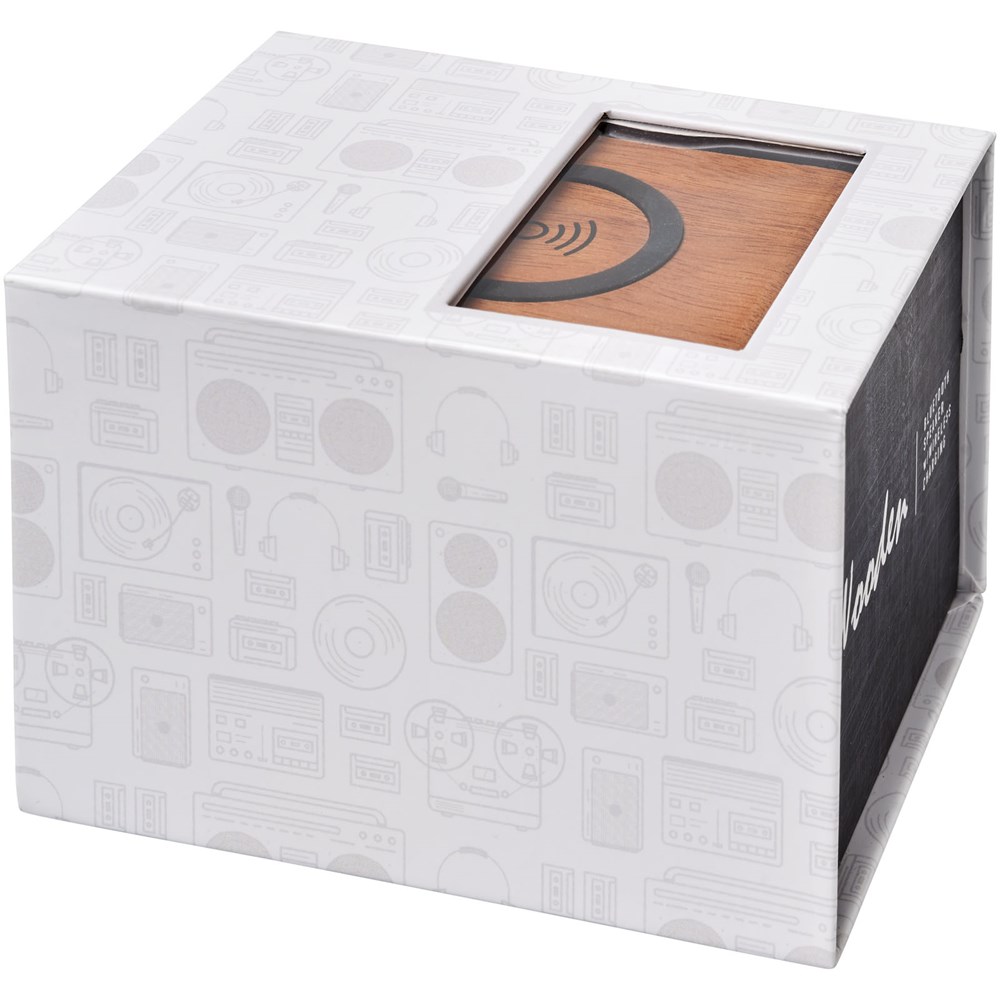 De houten Bluetooth® speaker is perfect voor op kantoor of thuis. De output van 3 Watt van de speaker produceert een helder geluid. Bovendien is het bovenste deel van de speaker een draadloos oplaadstation. Hij is geschikt voor het opladen van elk draadloos oplaadbaar apparaat. De ingebouwde 1200 mAh batterij zorgt ervoor dat muziek gedurende meer dan 6 uur kan worden afgespeeld. Ingebouwde muziekbediening en microfoon voor handsfree bellen. Bereik van Bluetooth® is 10 meter (33ft). Bluetooth®-versie 4.2. Gemaakt van hout. Daarom kan de uitstraling van elk artikel iets verschillen. Wordt geleverd in een Avenue geschenkverpakking.