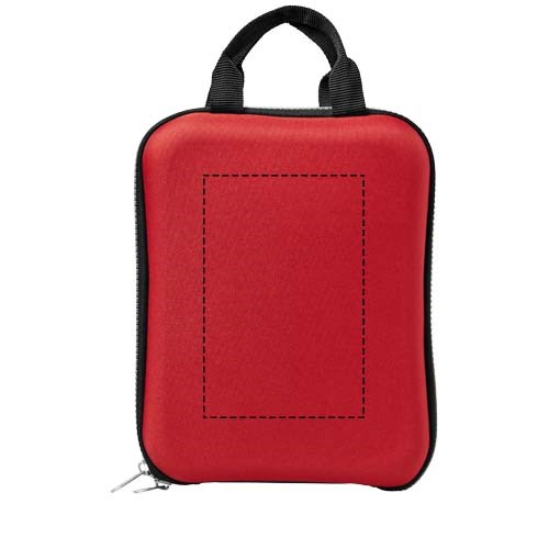 Handige EHBO-kit voor in de auto. Mitella, scharen, 2 spelden, 2 verbanden, 1 tape, 15 pleisters, 8 alcoholdoekjes, 2 natte doekjes, 2 schoonmaak doekjes, 10 stuks gaas, 1 veiligheidsvest, 1 veiligheids deken en een dynamo zaklamp. Voldoet aan EN 13485 en ISO EN 20471 norm.