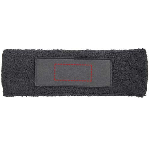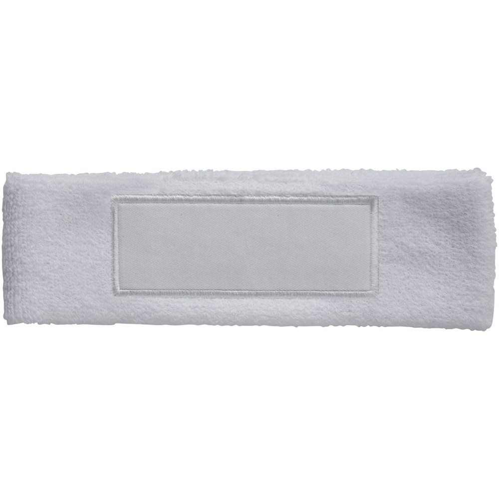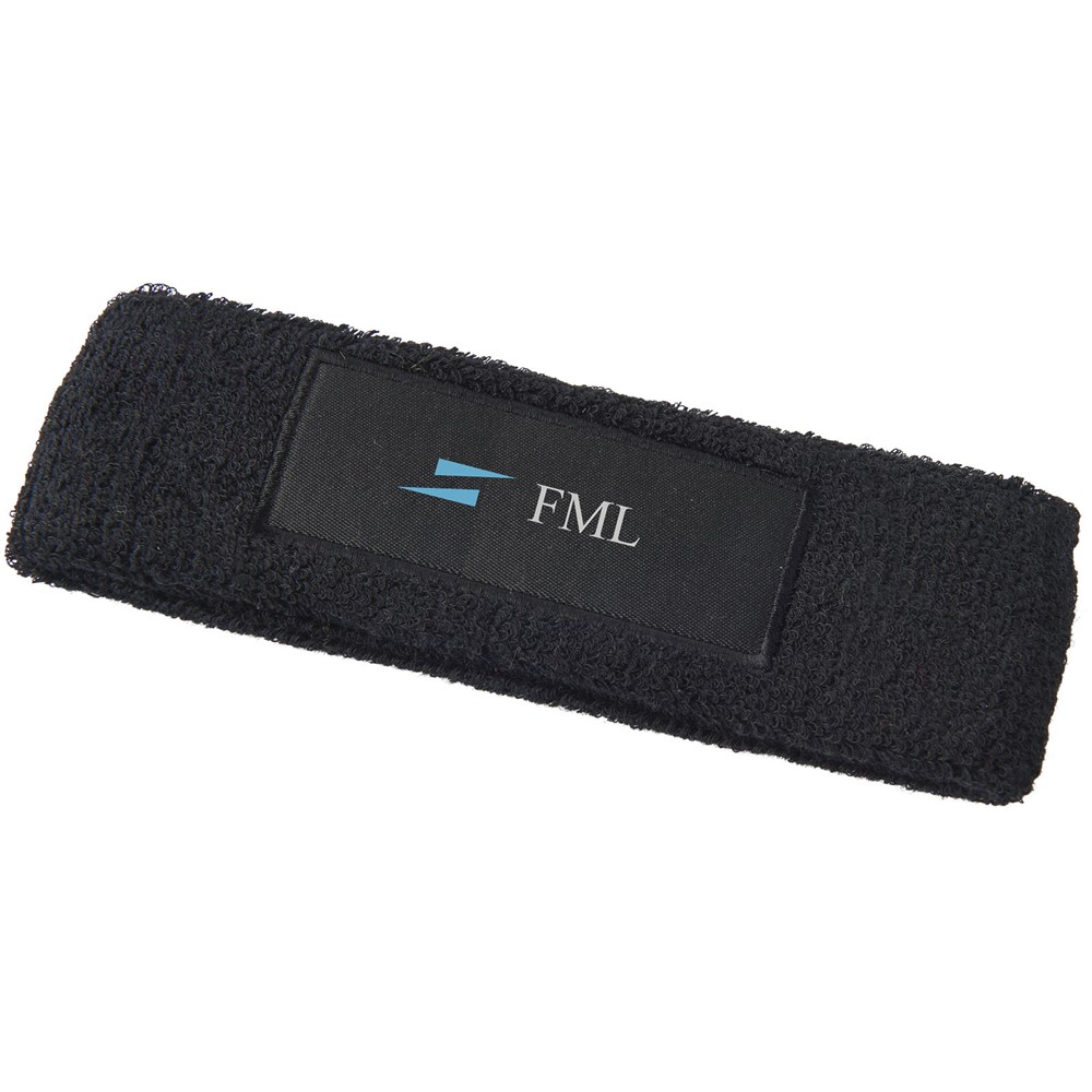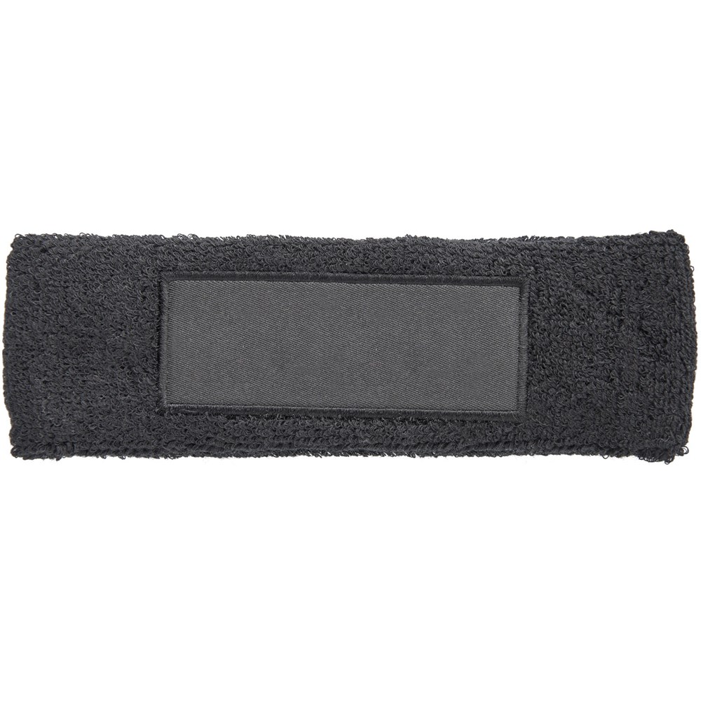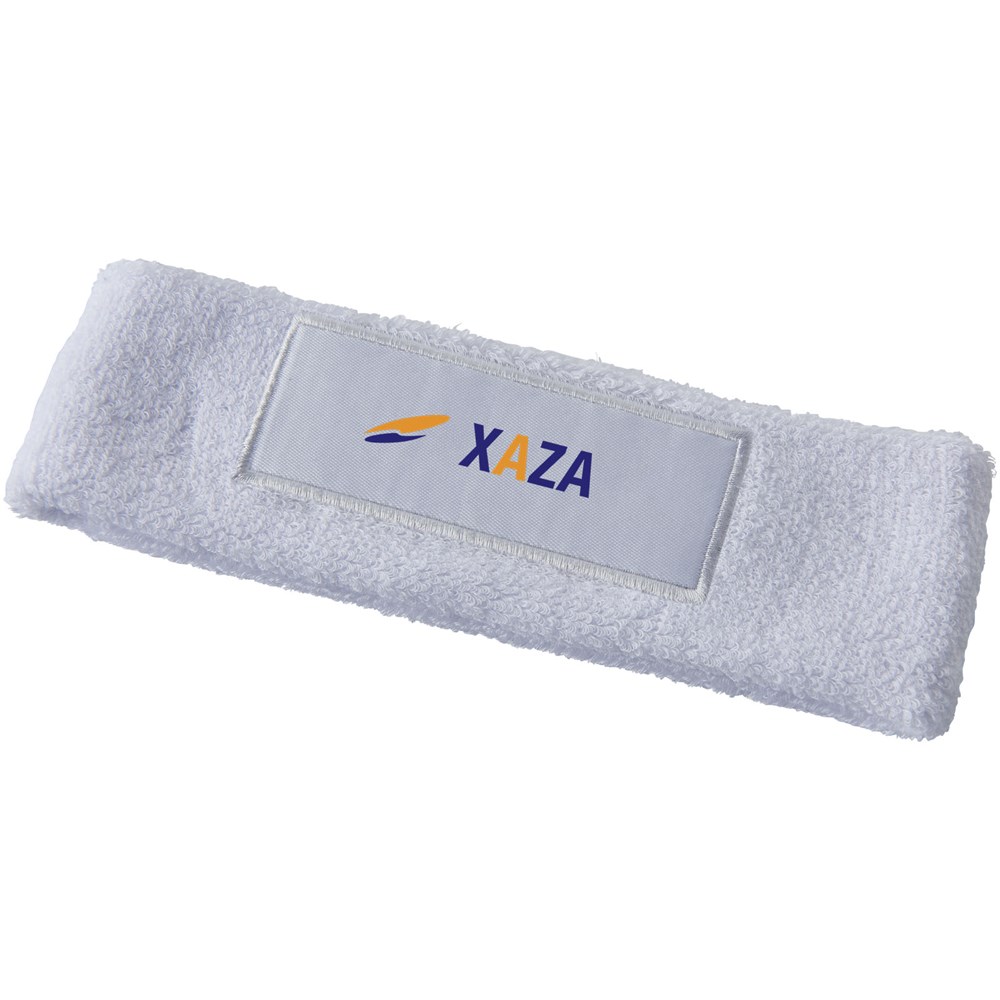 Zachte en absorberende elastische katoenen hoofdband met rechthoekige 90x30mm patch voor het plaatsen van een logo.