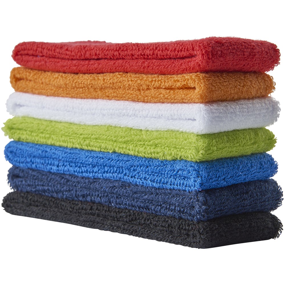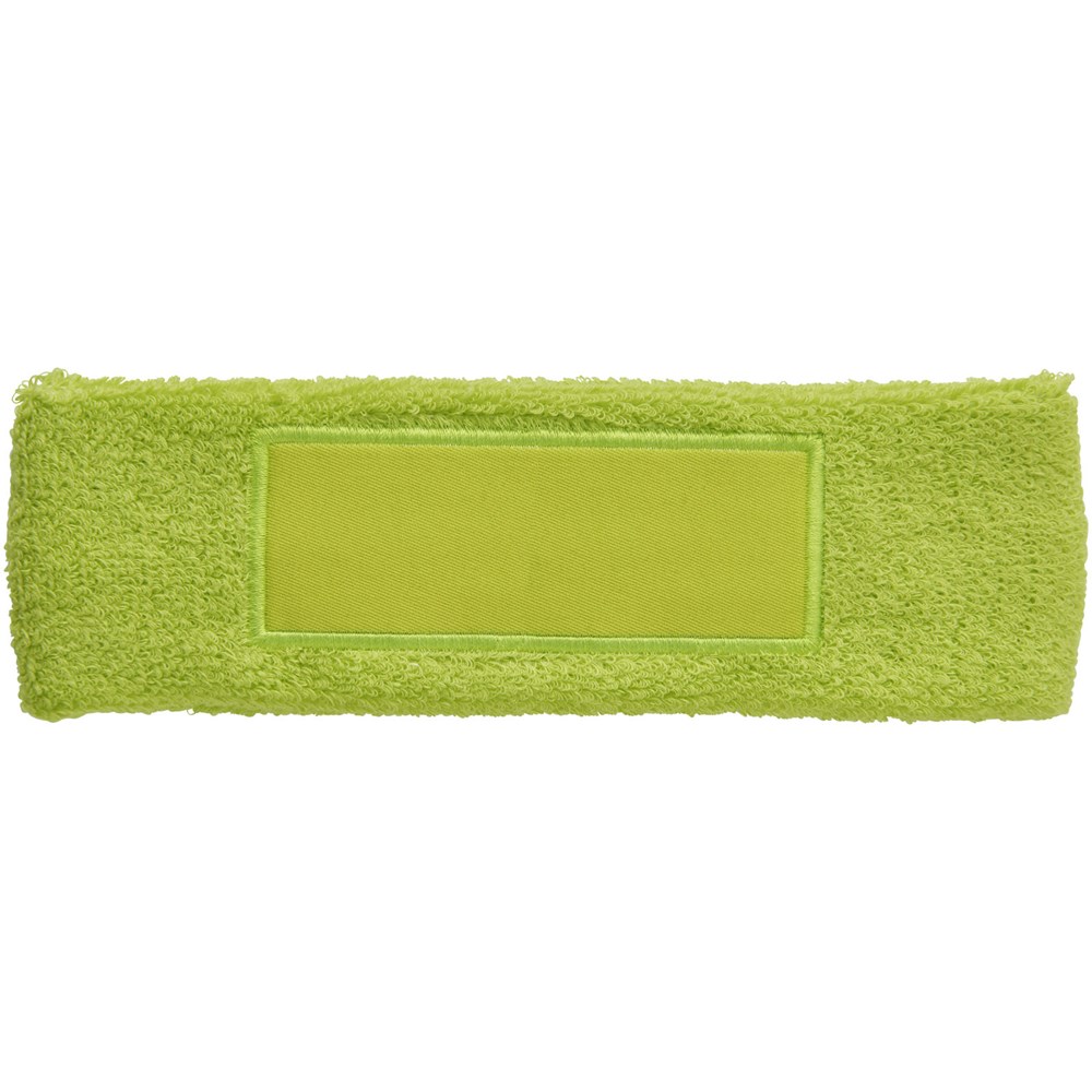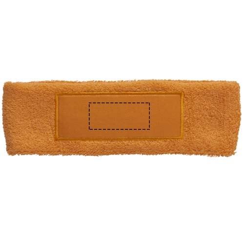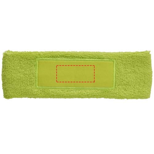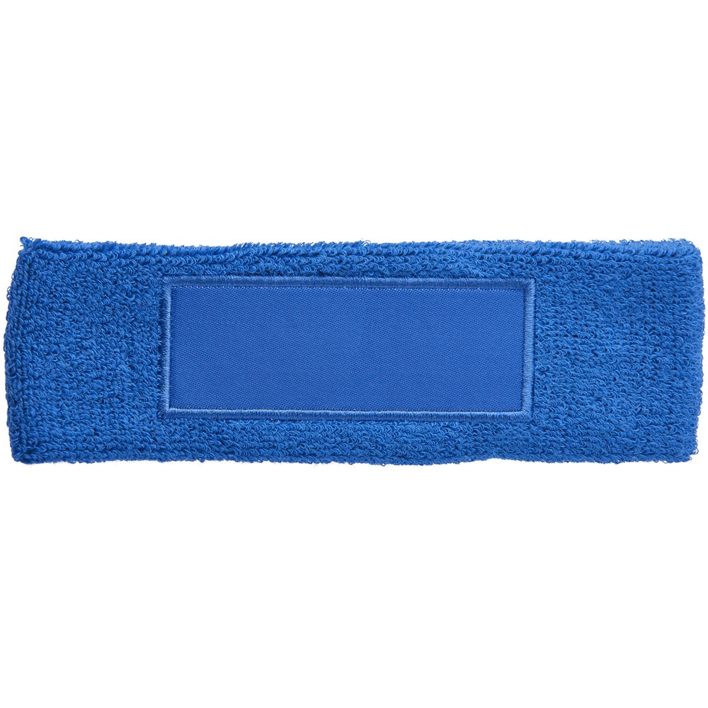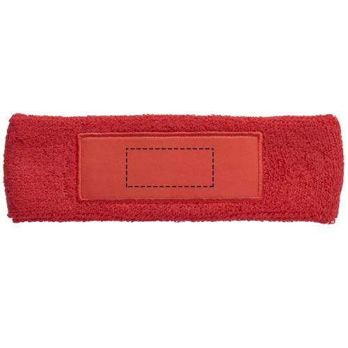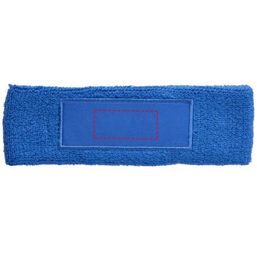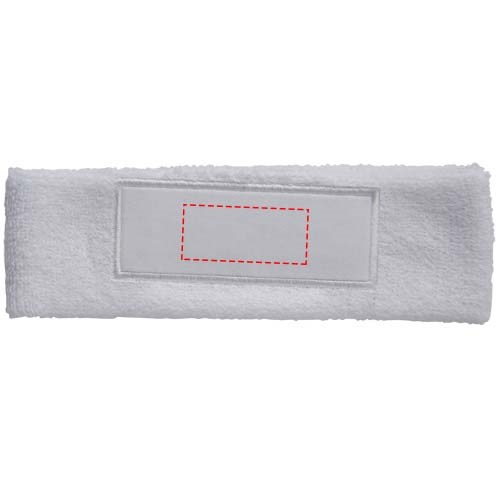 Zachte en absorberende elastische katoenen hoofdband met rechthoekige 90x30mm patch voor het plaatsen van een logo.