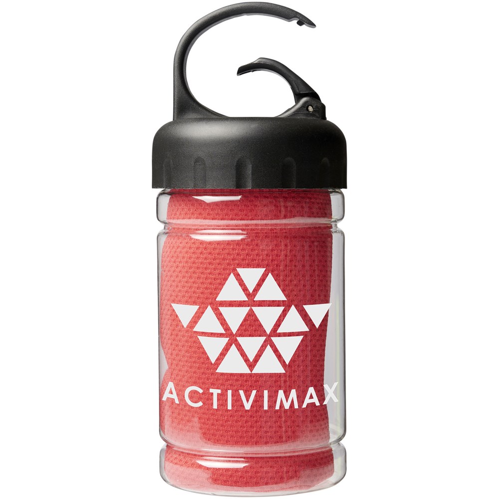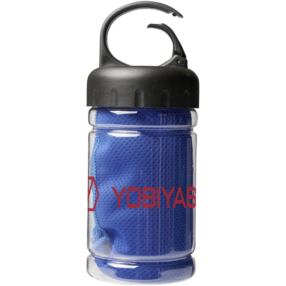 Snel absorberende, sneldrogende en wasbare koelhanddoek voor het koel houden tijdens de training of een buitenactiviteit. Wordt geleverd in een PET-verpakking met draagbeugel en ingebouwde karabijnhaak voor gemakkelijk vervoer. Verkrijgbaar in 5 frisse kleuren. Groot decoratievlak voor het logo op de verpakking, decoratie ook mogelijk op de koelhanddoek zelf. Maat: 30 x 80 cm.