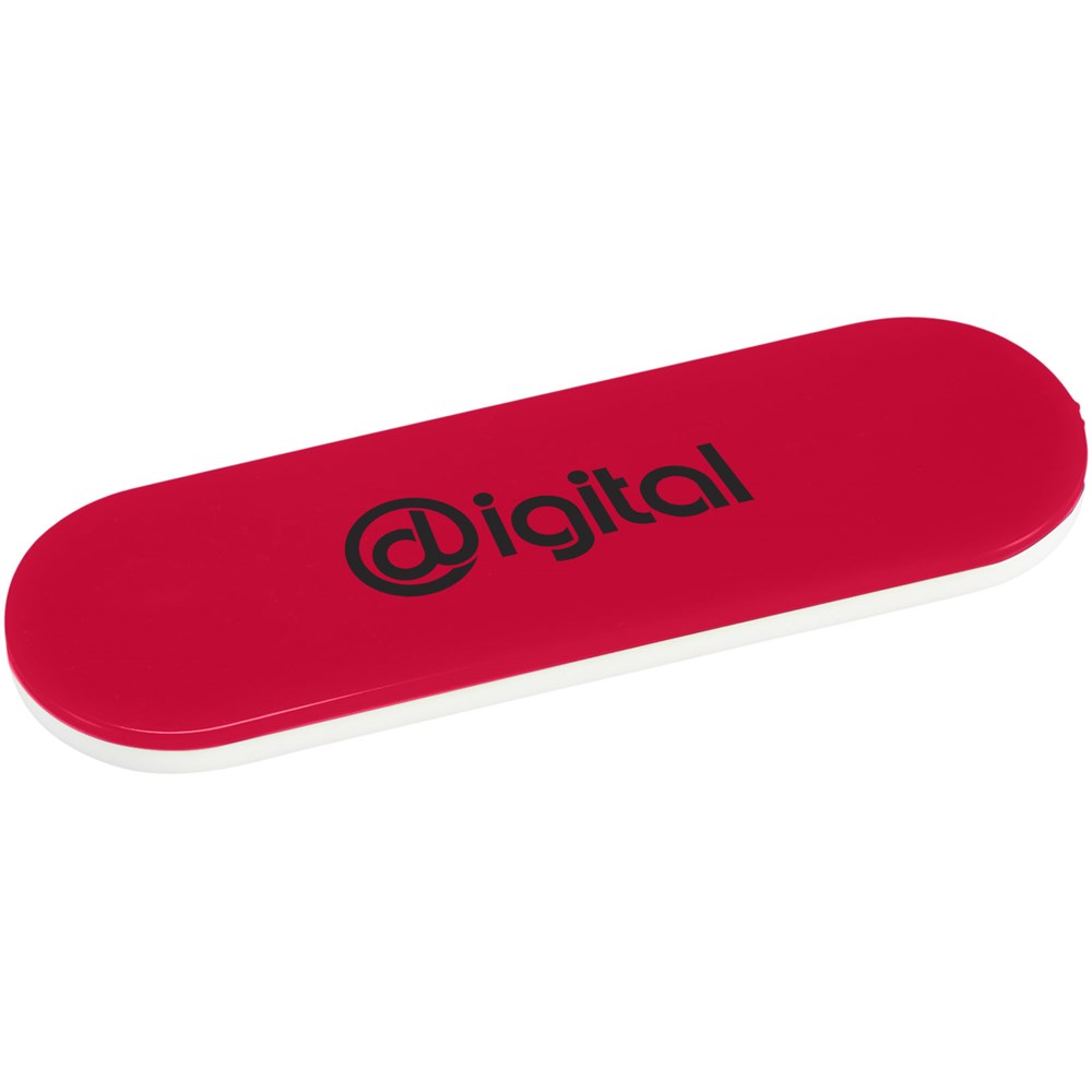 Lusje voor extra houvast als je onderweg tekst moet typen of met een stylus werkt. Ook te gebruiken als standaard voor bij het lezen van artikelen of het bekijken van films. Kan bevestigd worden aan je telefoon middels een sticker aan de achterzijde.