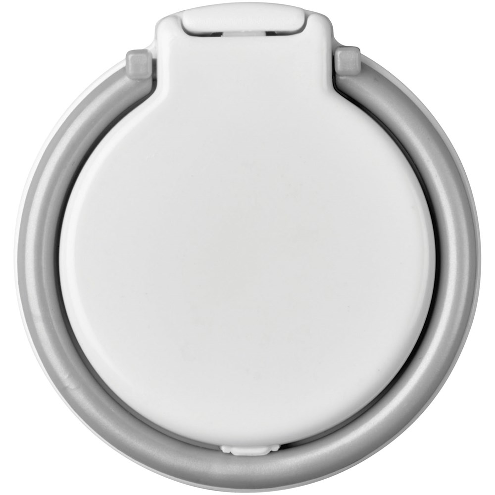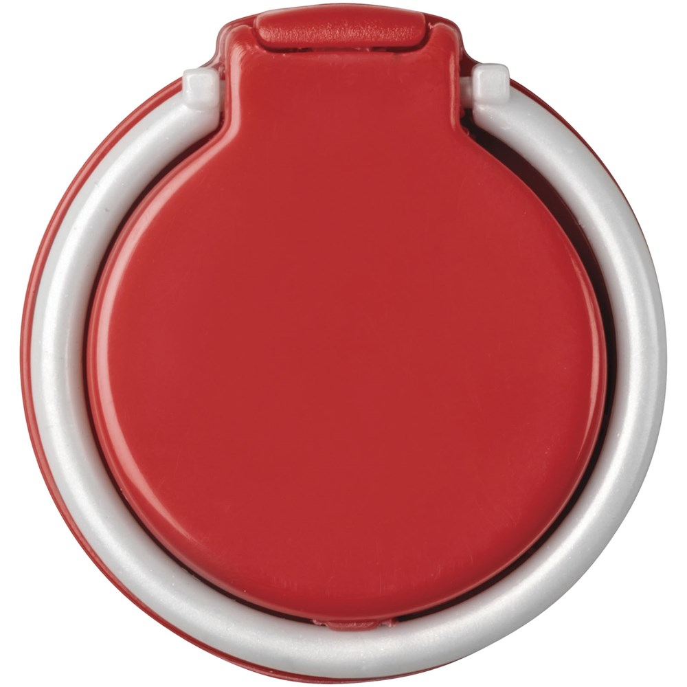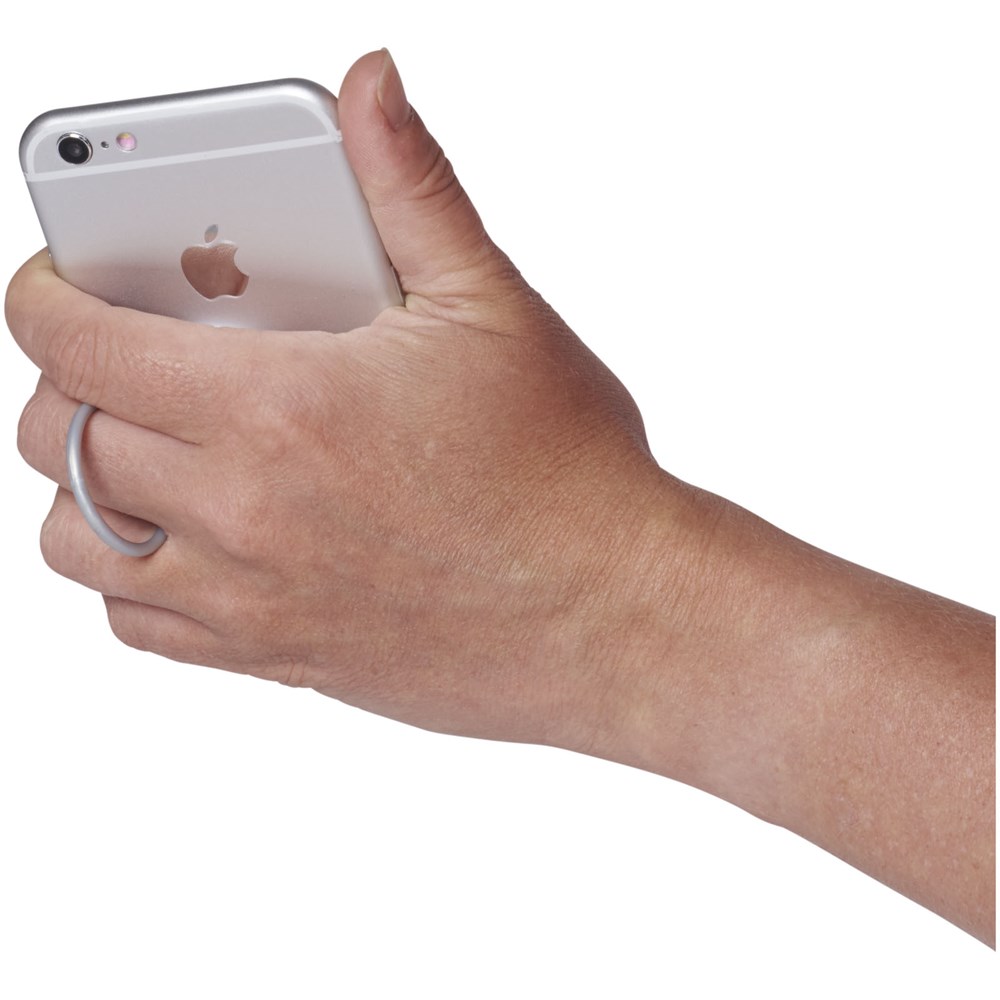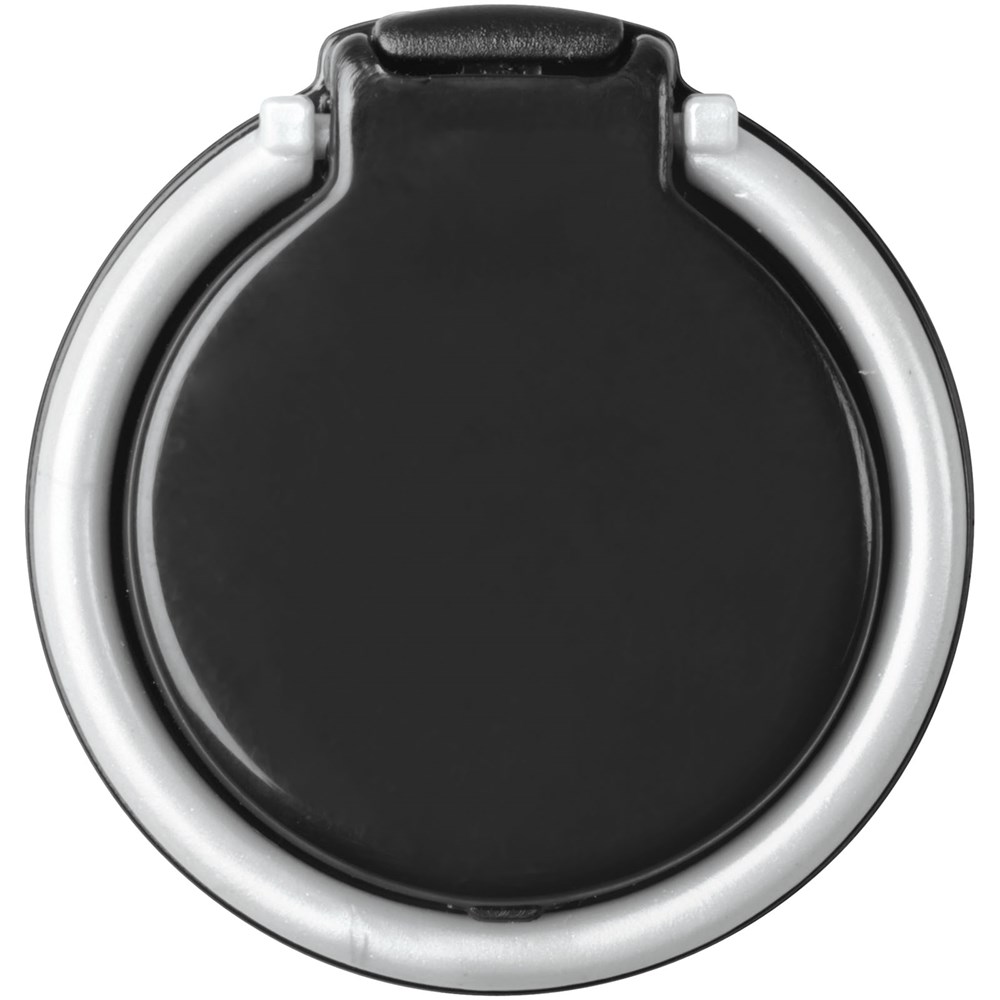 Lusring en telefoonhouder. De ring kan worden opgetild om te worden gebruikt als standaard of om de smartphone te beveiligen terwijl je hem vasthoudt. Zelfklevende achterkant hecht stevig aan de achterkant van een smartphone. De basis van de ring kan worden gedraaid voor een optimale positionering. Kunststof.