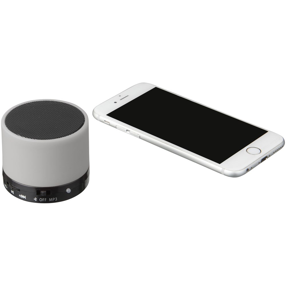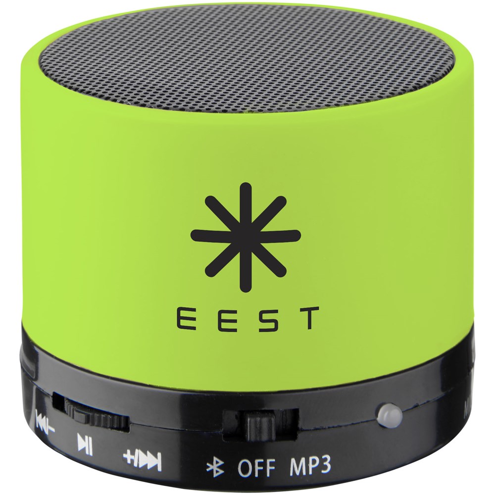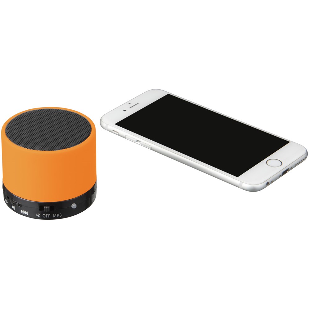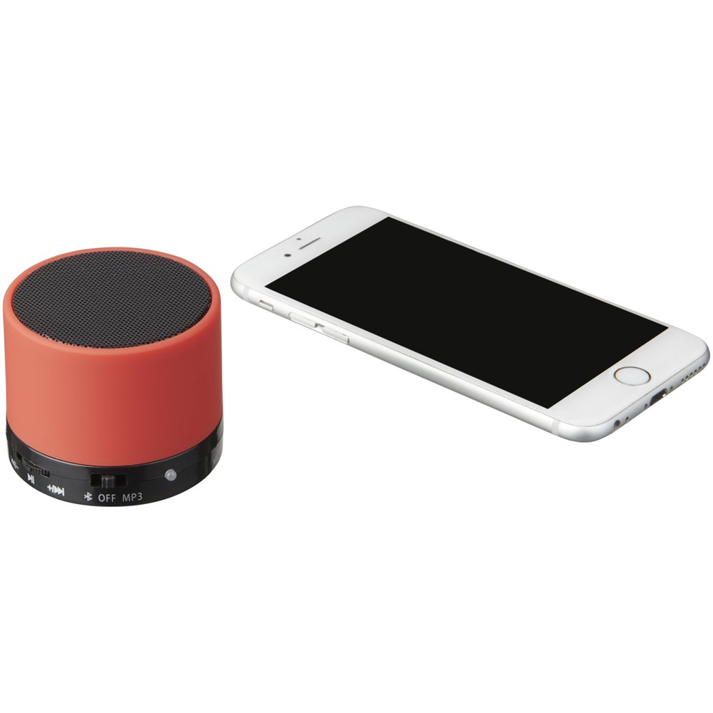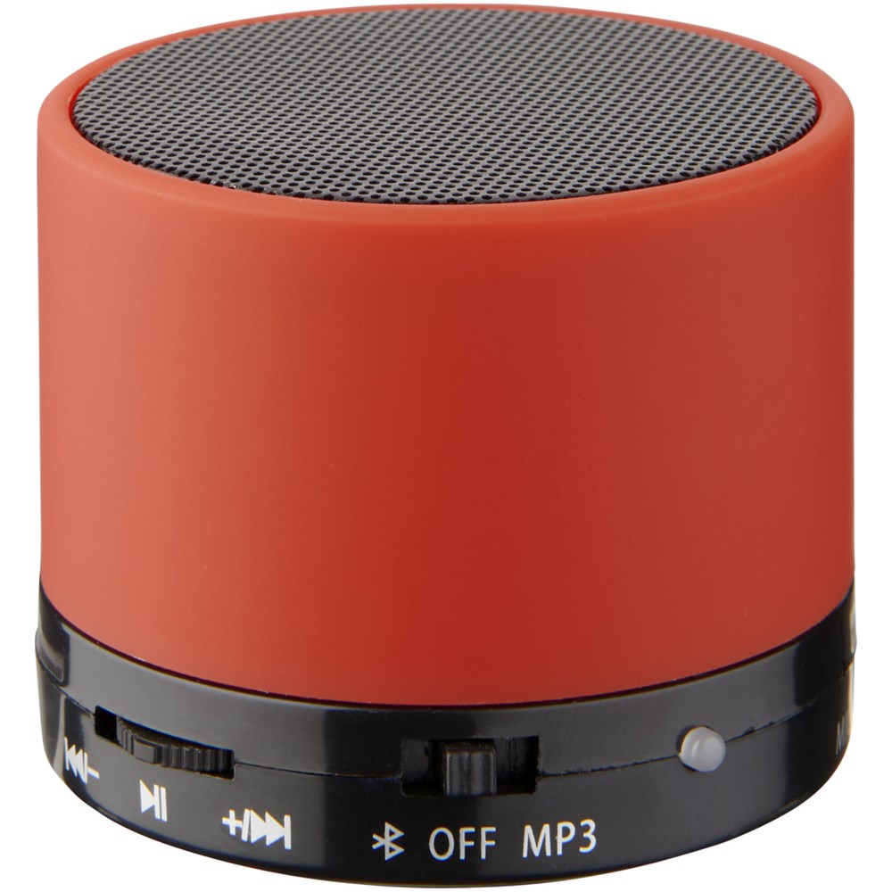 Rubberen cilinderspeaker. Geniet overal van muziek en films door uw Bluetooth® compatibele apparaat zoals iPhone, iPad of Android OS apparaten te koppelen aan deze draagbare Bluetooth® speaker (met bereik van 10 m). Dankzij de ingebouwde microfoon kunt u met de speaker onderweg conferentiegesprekken voeren via uw smartphone of video chatprogramma's zoals Skype. Wordt geleverd met een mooie rubberen afwerking. Inclusief USB voeding.