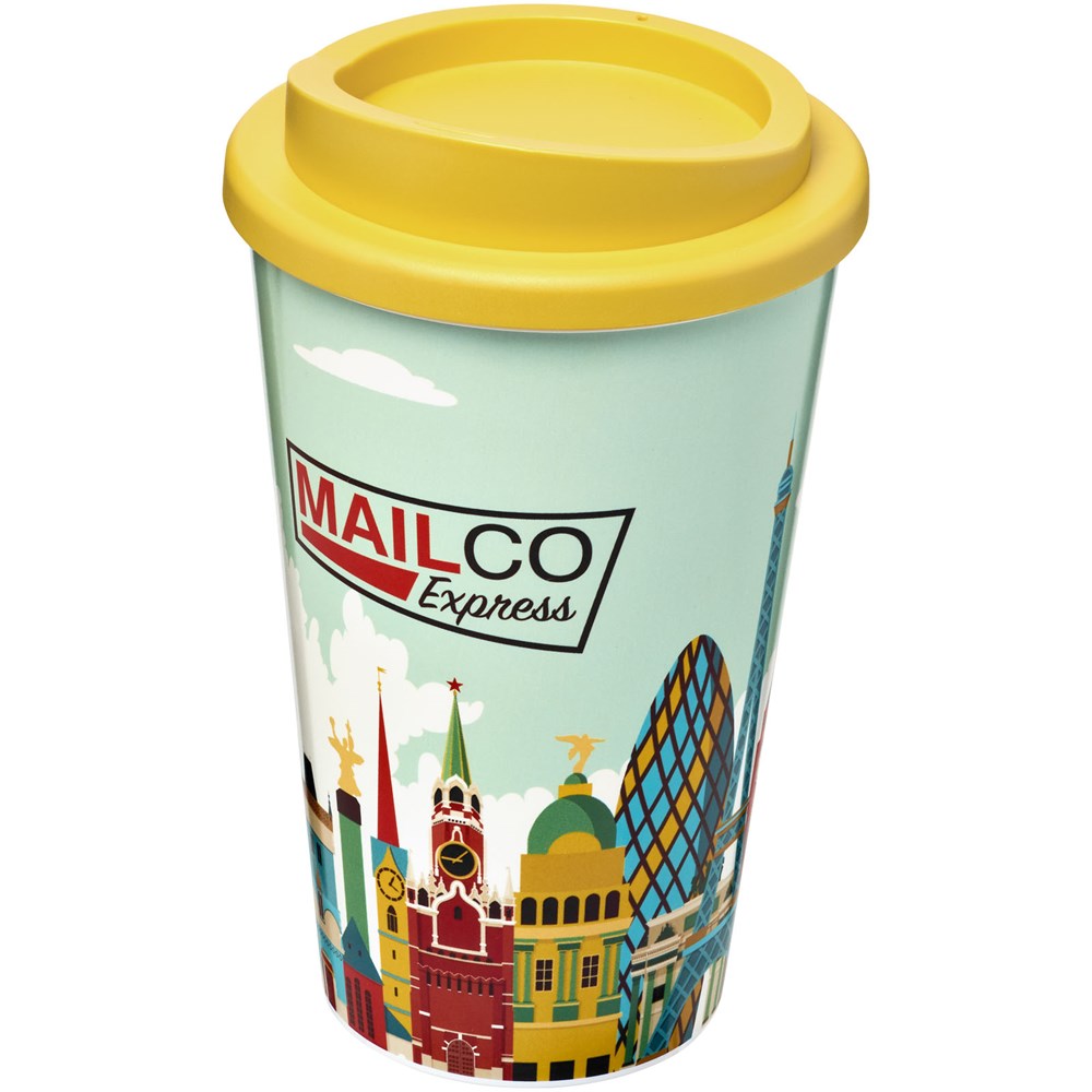 Dubbelwandig geïsoleerde beker met draaideksel. De beker heeft een full colour all-over bedrukking welke tijdens het spuitgiet proces één wordt met de mok, waardoor deze slijtvast en duurzaam is. Compatibel met EN12875-1, vaatwasmachinebestendig en magnetronbestendig. Volume 350 ml. Mix en match kleuren om je perfecte mok te creëren. Neem contact op met de klantenservice voor meer kleuropties. Gemaakt in het Verenigd Koninkrijk. Verpakt in een thuis-composteerbare polybag.