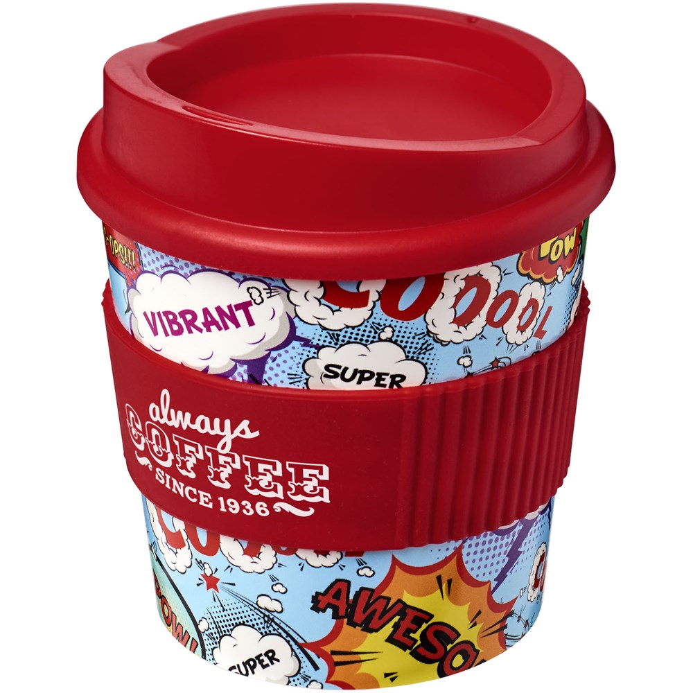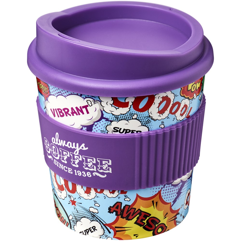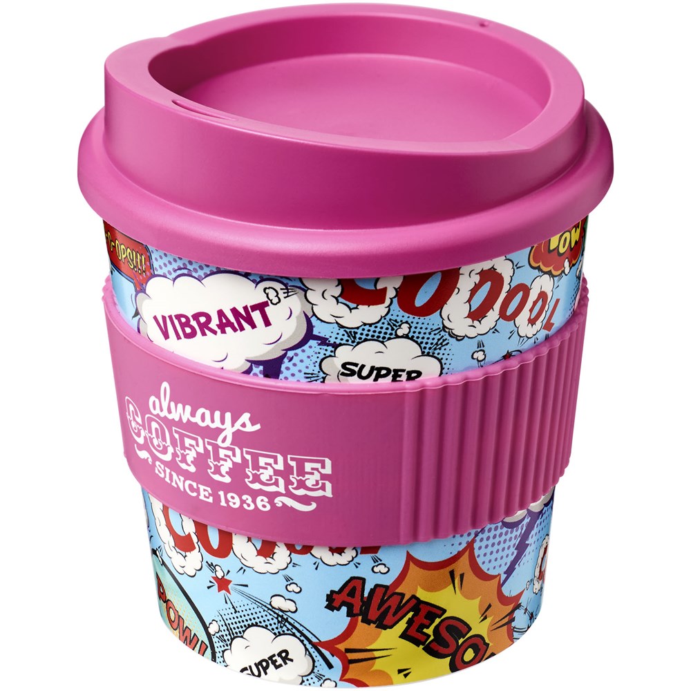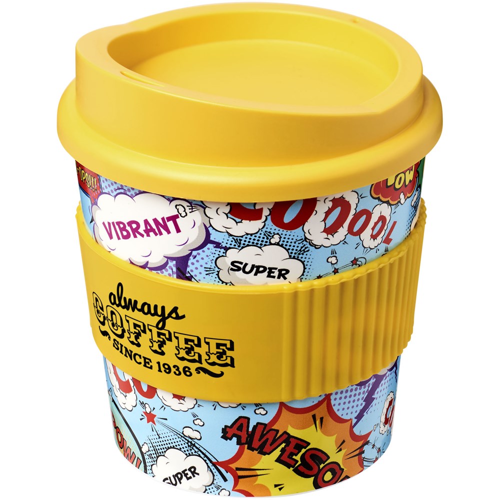 Enkelwandige beker met draaideksel welke onder de meeste koffiezetapparaten past. De beker heeft een full colour all-over bedrukking welke tijdens het spuitgiet proces één wordt met de mok, waardoor deze slijtvast en duurzaam is. Compatibel met EN12875-1, vaatwasmachinebestendig en magnetronbestendig. Volume 250 ml. Mix en match kleuren om je perfecte mok te creëren. Neem contact op met de klantenservice voor meer kleuropties. Gemaakt in het Verenigd Koninkrijk. Verpakt in een thuis-composteerbare polybag.