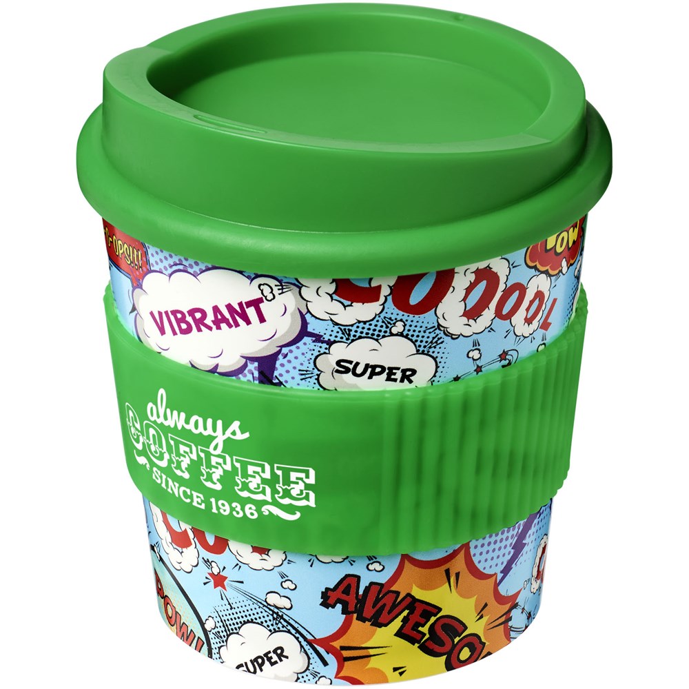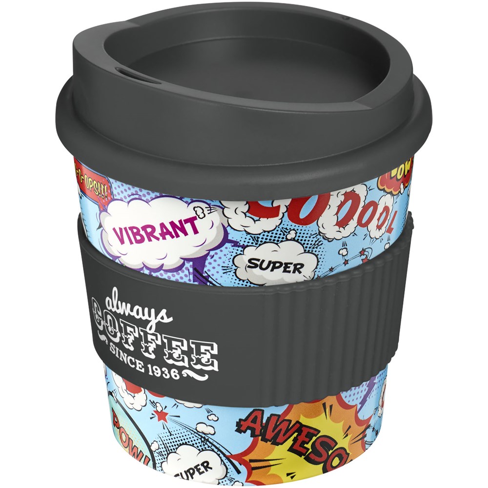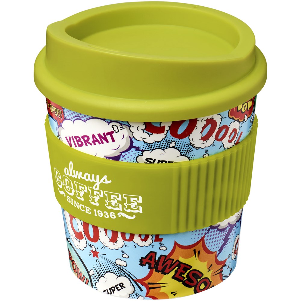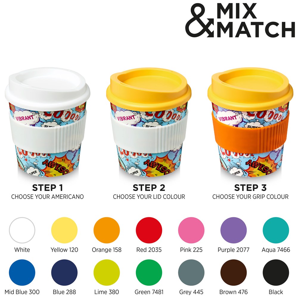 Enkelwandige beker met draaideksel welke onder de meeste koffiezetapparaten past. De beker heeft een full colour all-over bedrukking welke tijdens het spuitgiet proces één wordt met de mok, waardoor deze slijtvast en duurzaam is. Compatibel met EN12875-1, vaatwasmachinebestendig en magnetronbestendig. Volume 250 ml. Mix en match kleuren om je perfecte mok te creëren. Neem contact op met de klantenservice voor meer kleuropties. Gemaakt in het Verenigd Koninkrijk. Verpakt in een thuis-composteerbare polybag.