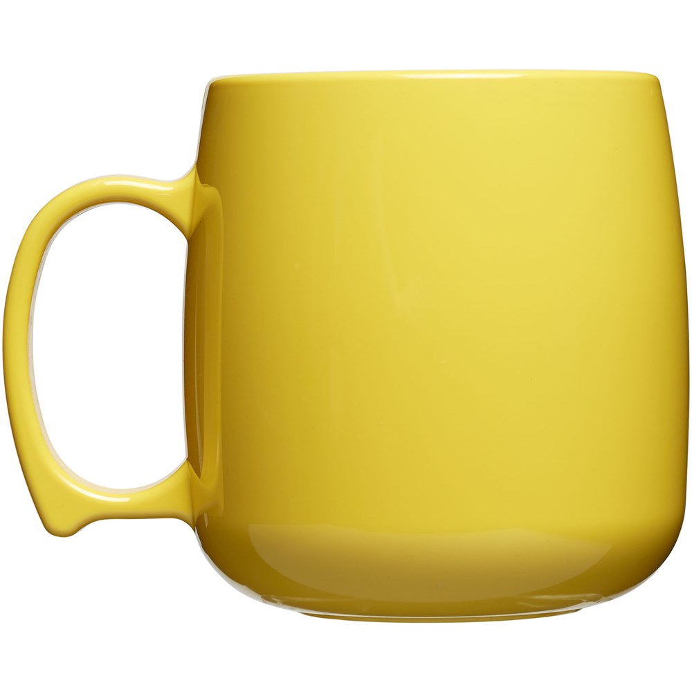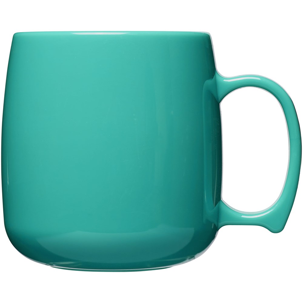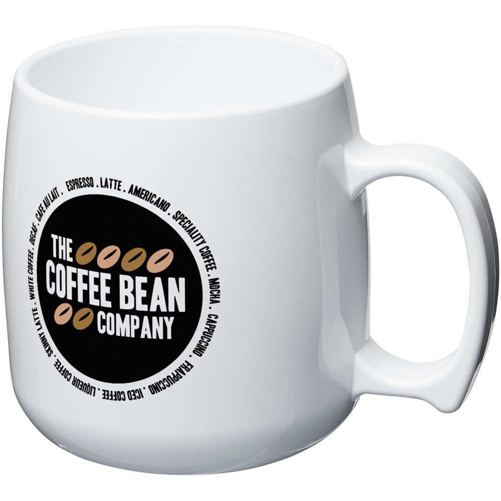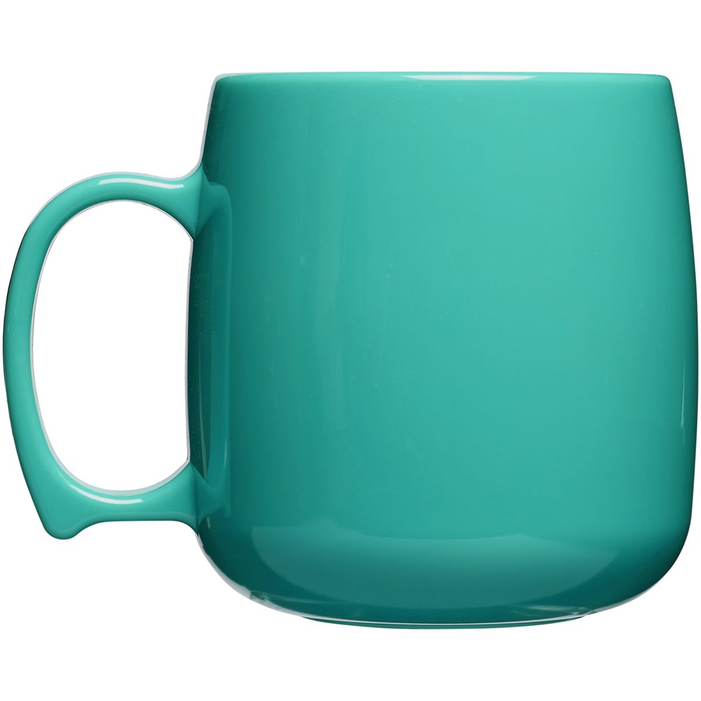 Duurzame, enkelwandige kunststof mok. Volume 300 ml. Gemaakt in het Verenigd Koninkrijk.
