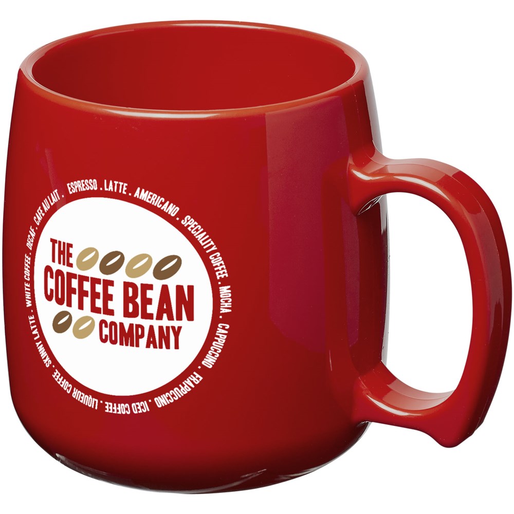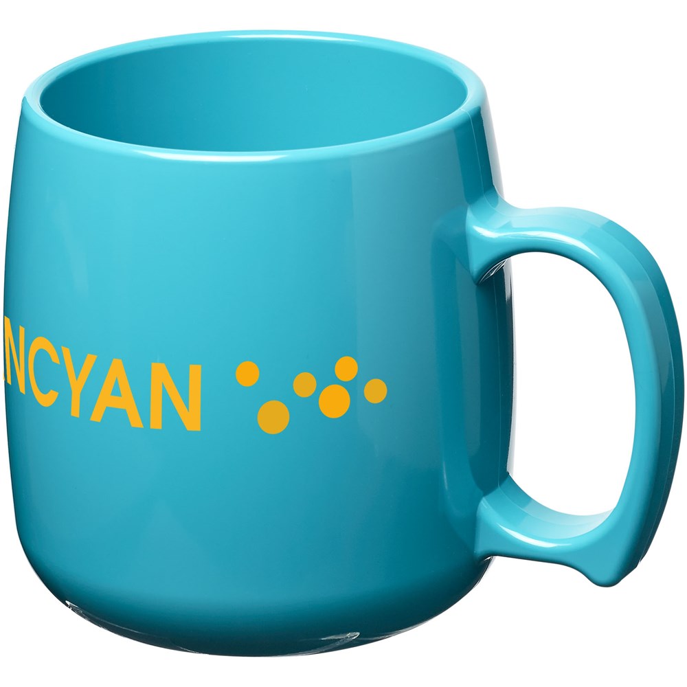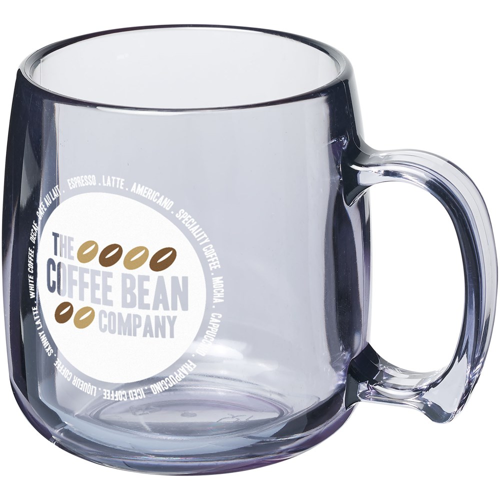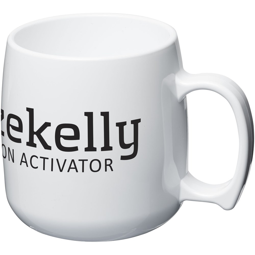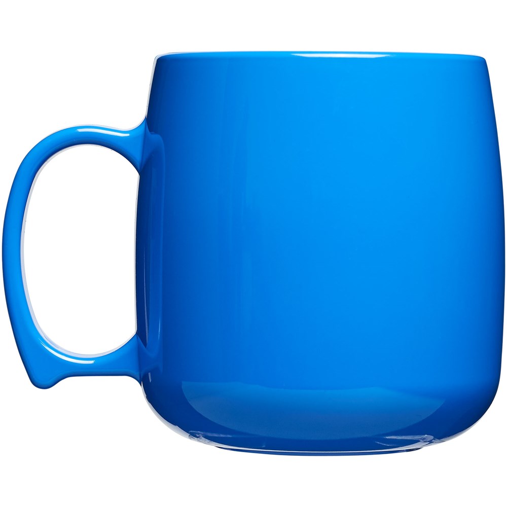 Duurzame, enkelwandige kunststof mok. Volume 300 ml. Gemaakt in het Verenigd Koninkrijk.