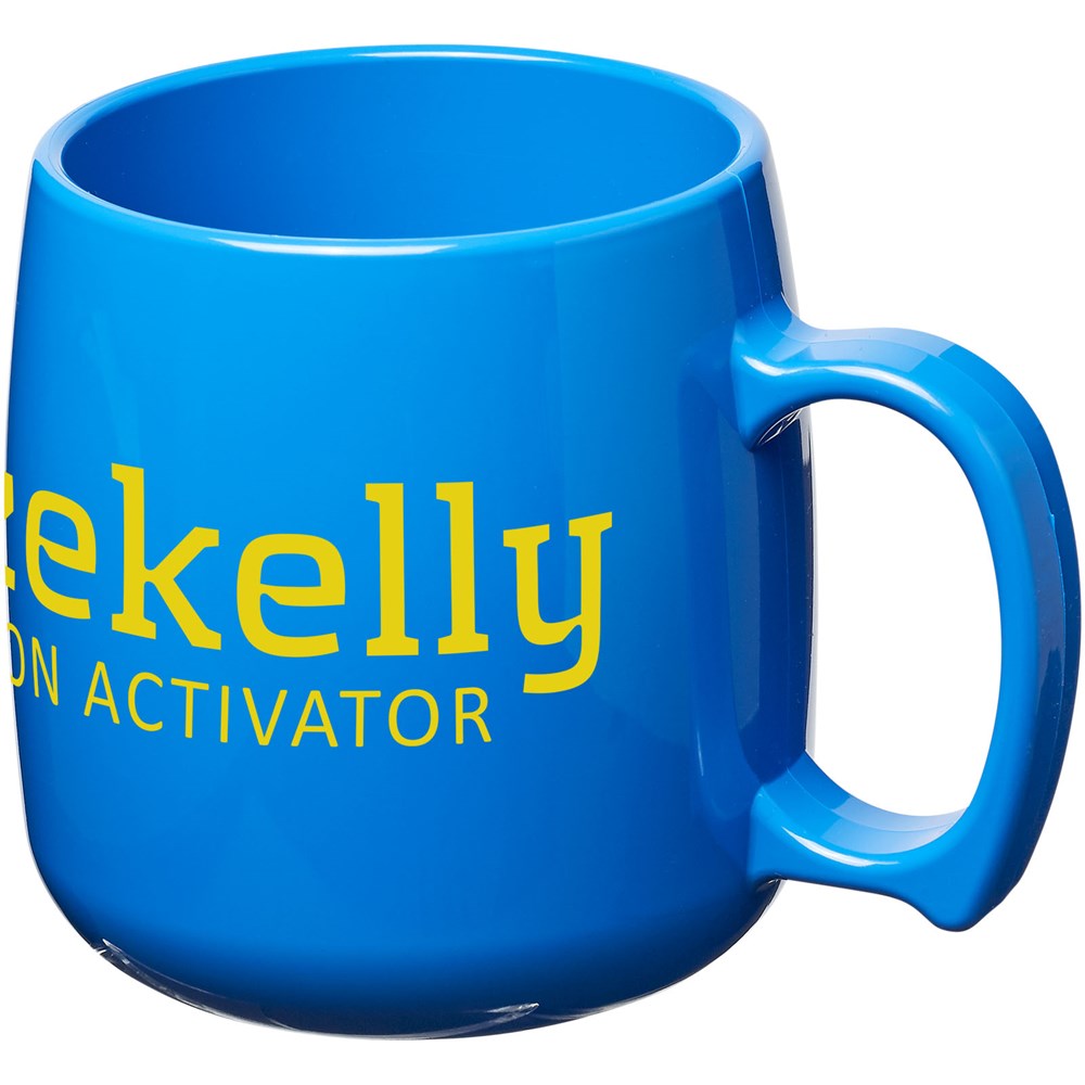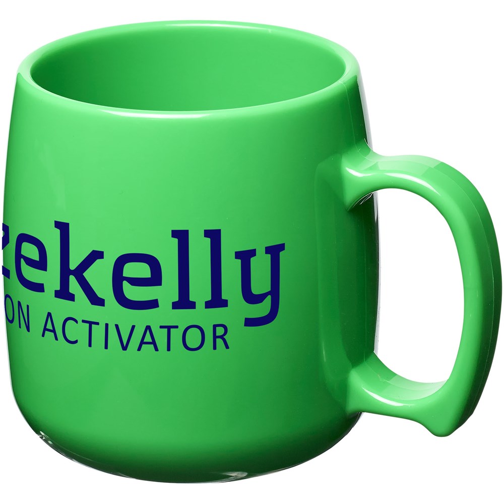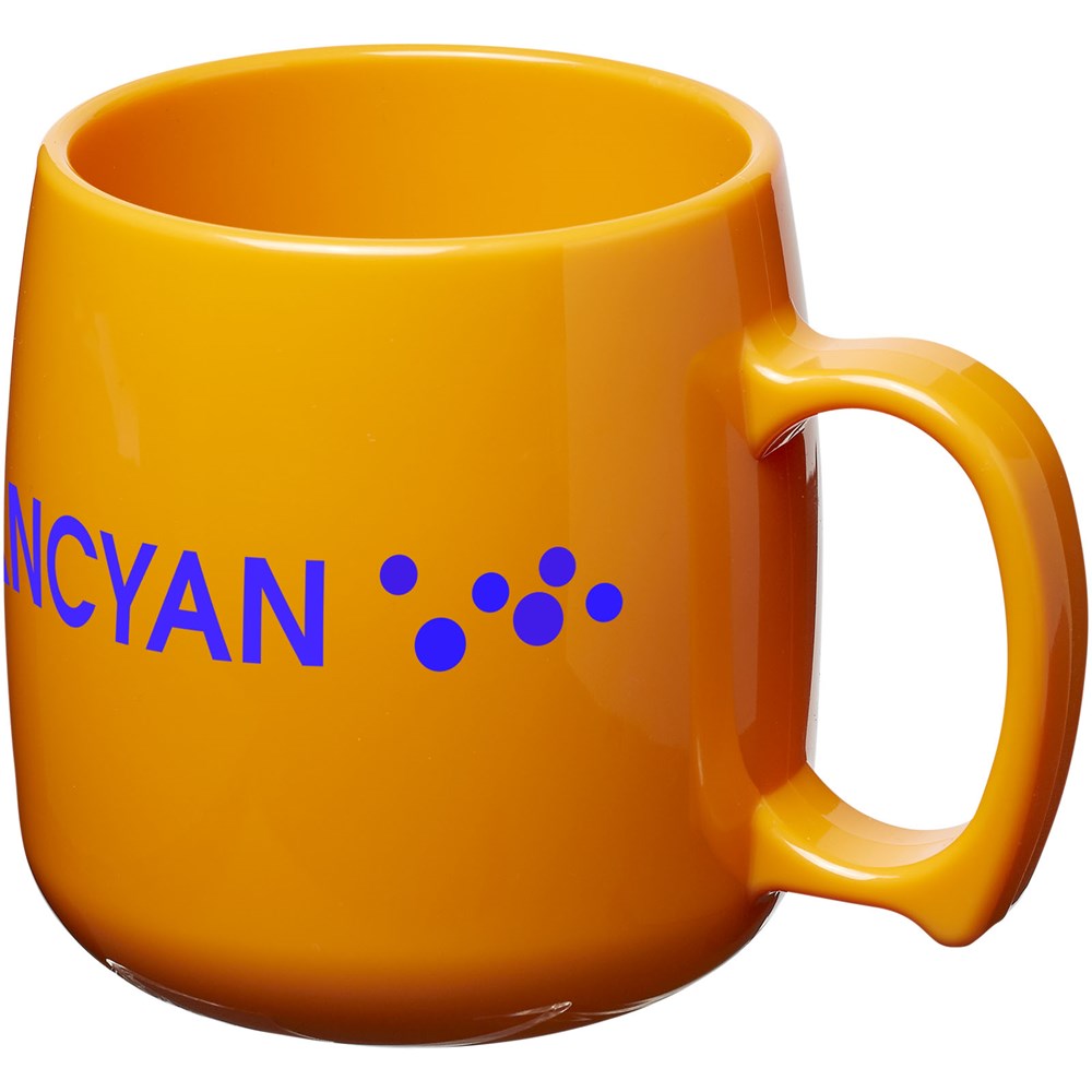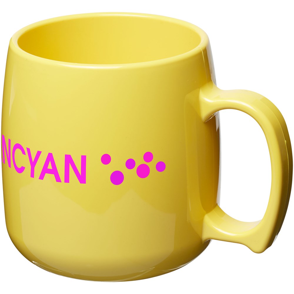 Duurzame, enkelwandige kunststof mok. Volume 300 ml. Gemaakt in het Verenigd Koninkrijk.