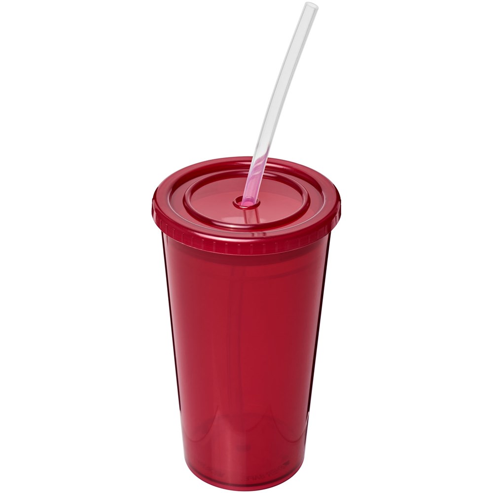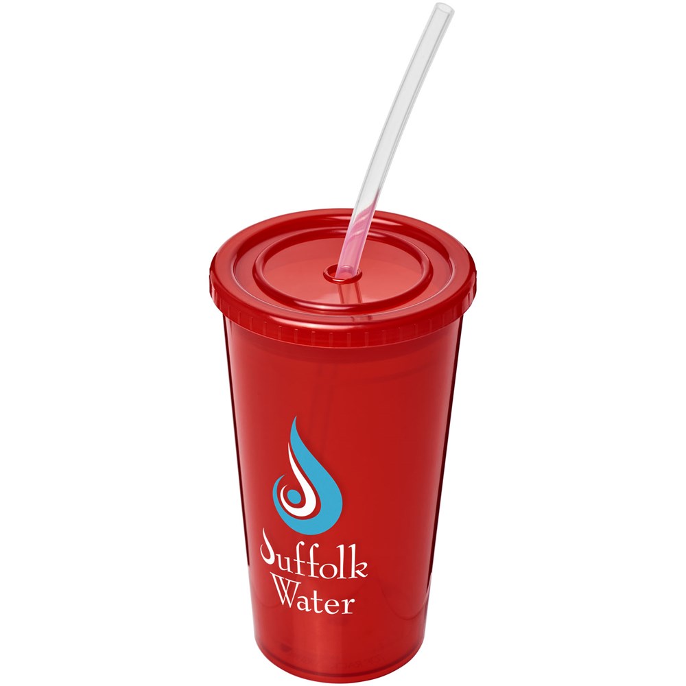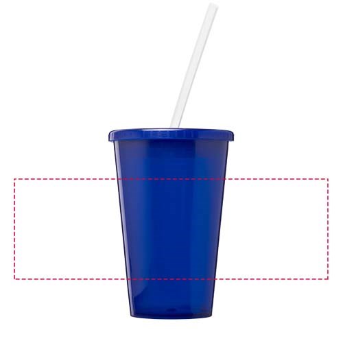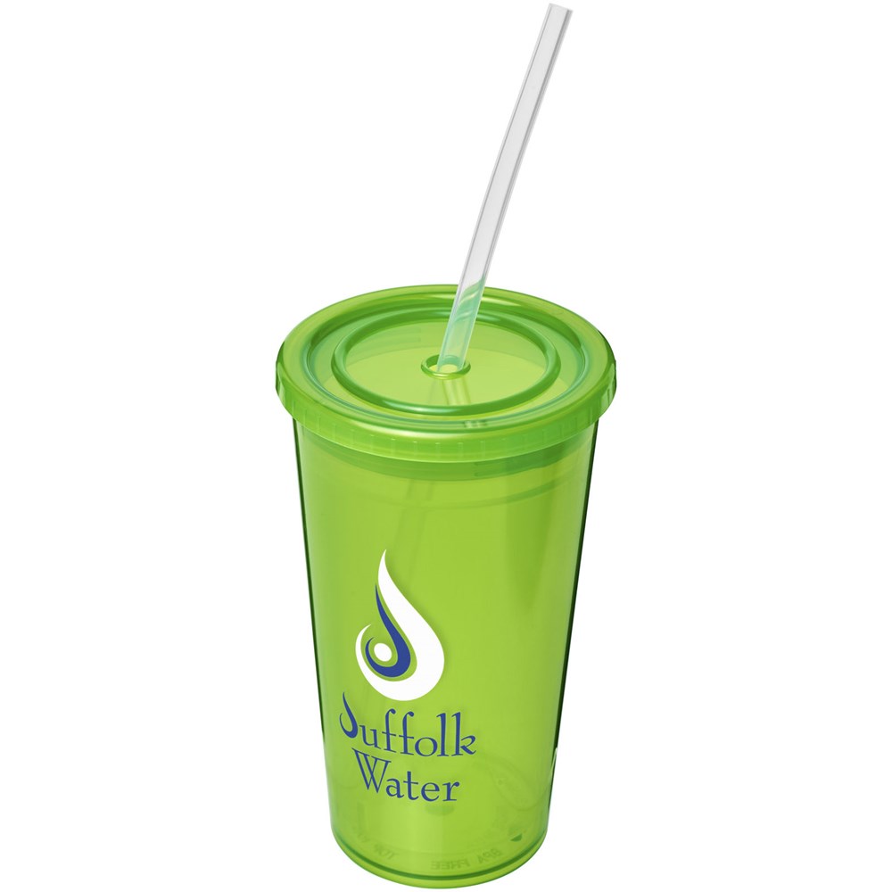 Dubbelwandige doorzichtige geïsoleerde beker. Geleverd met een flexibel siliconen rietje. Volume 350 ml. Gemaakt in het Verenigd Koninkrijk.